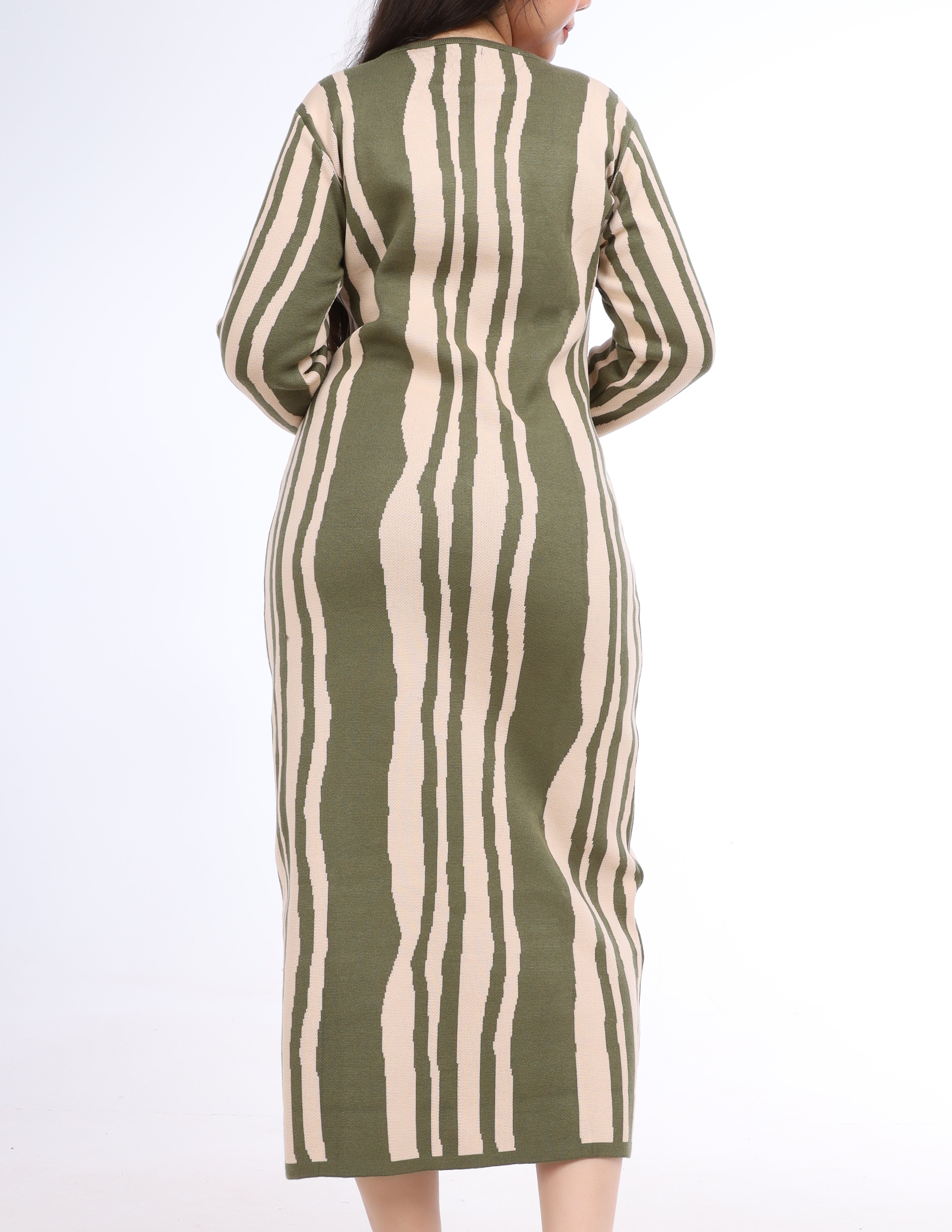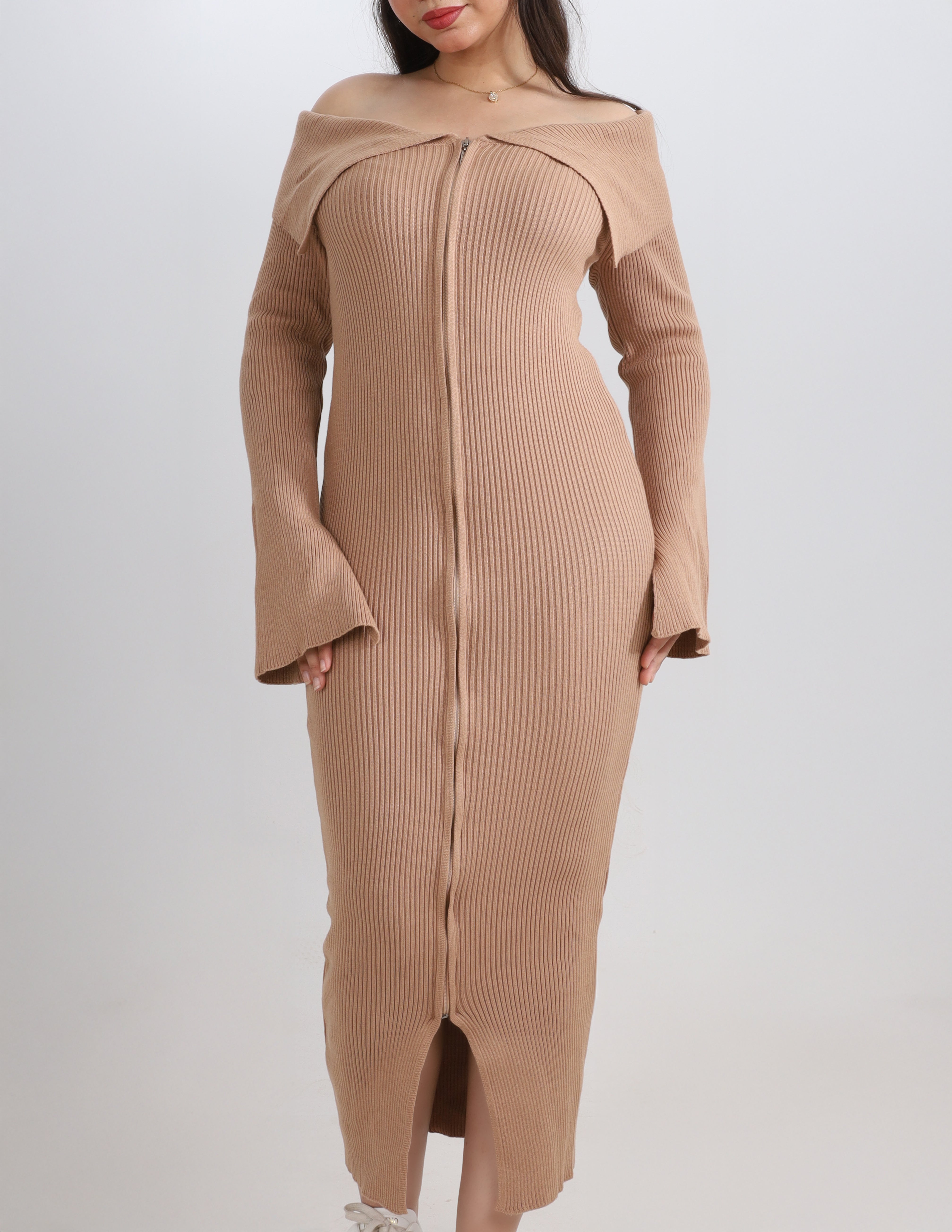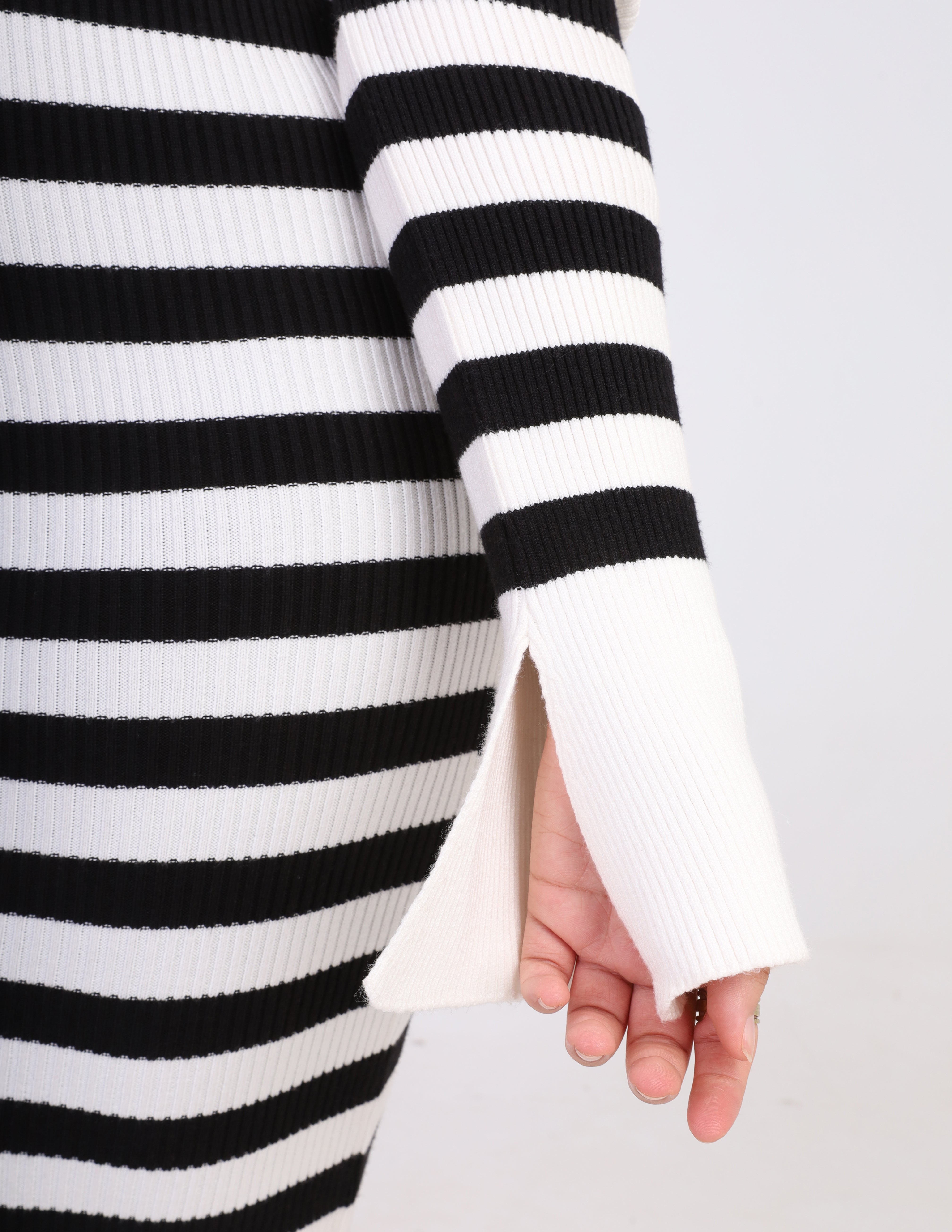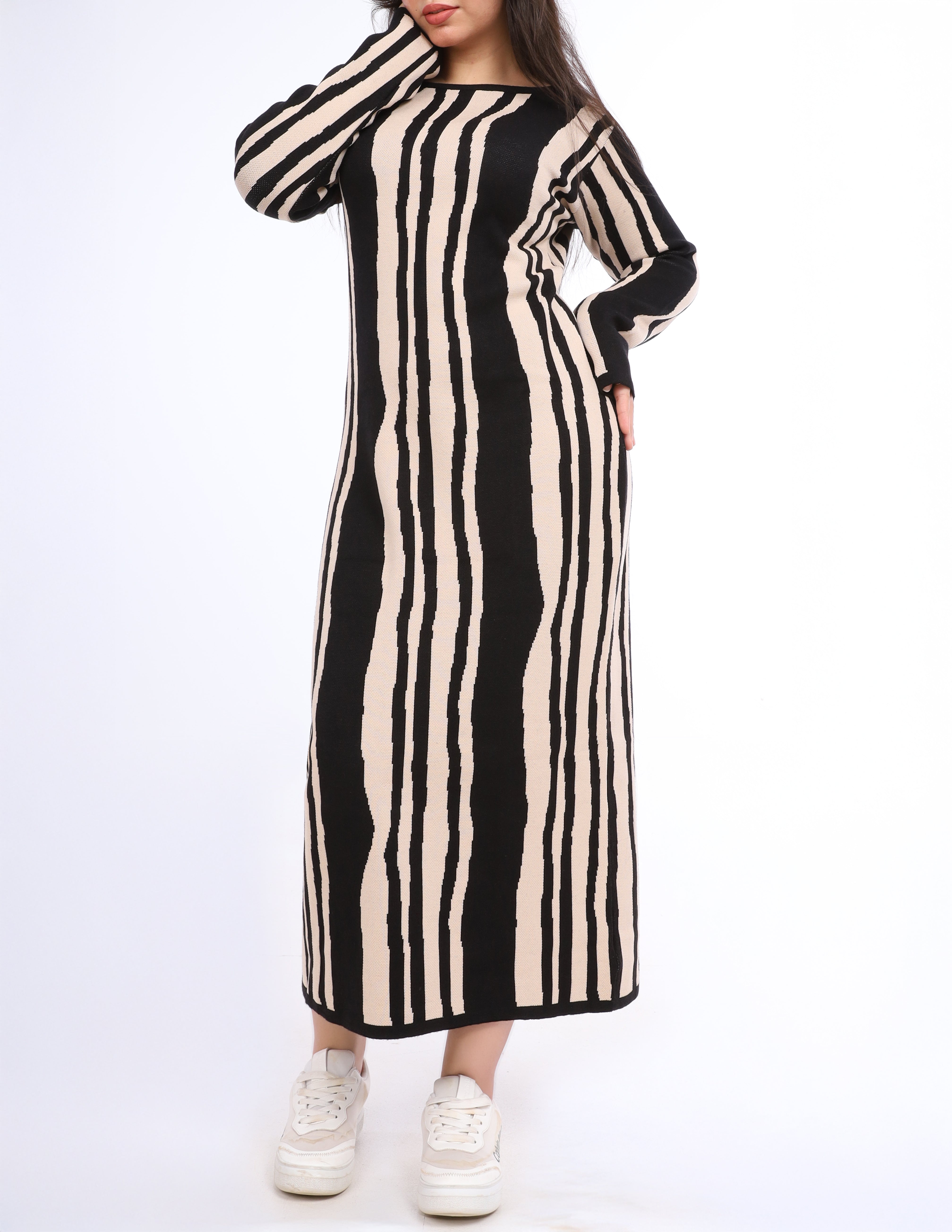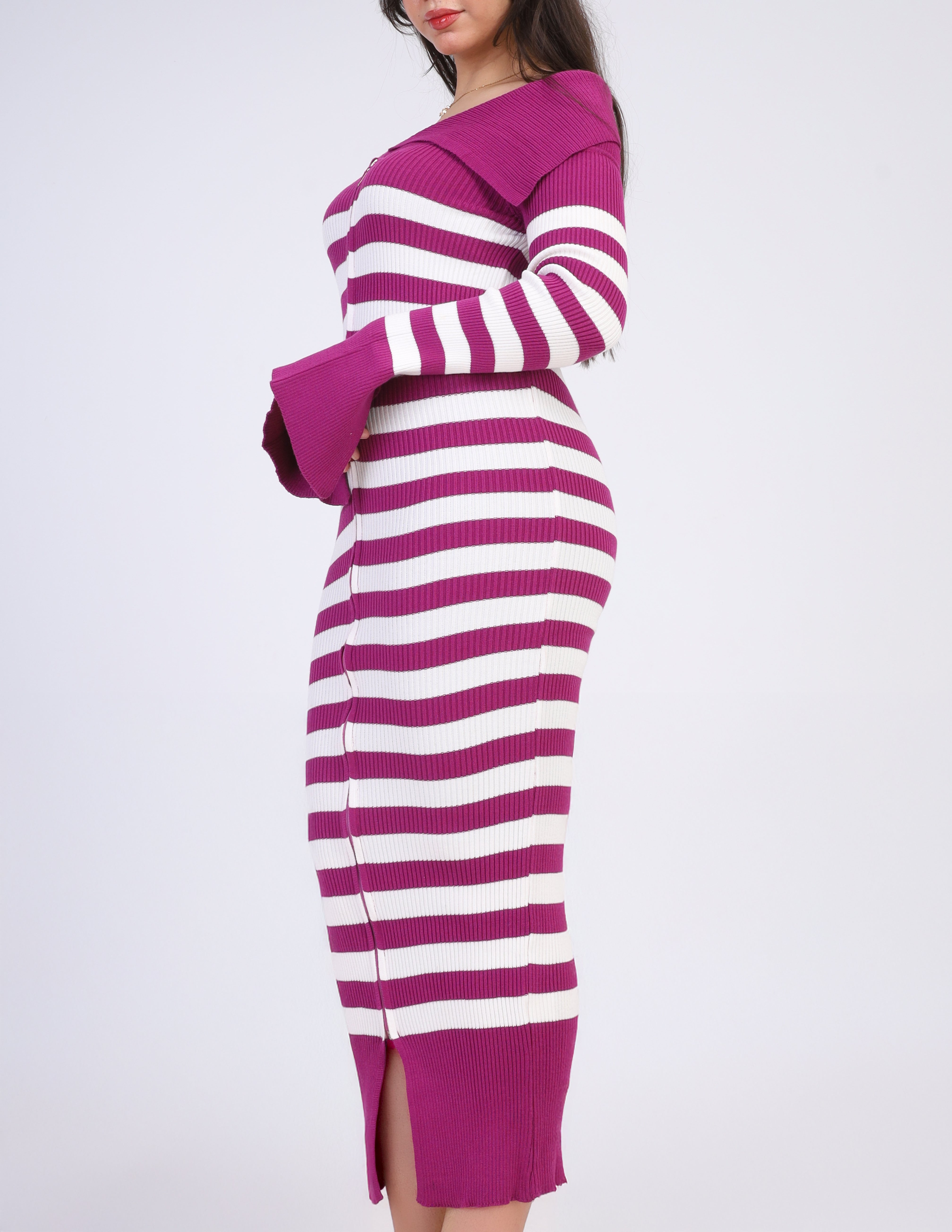 Striped Off-Shoulder Maxi Dress with Front Zipper  w16252634