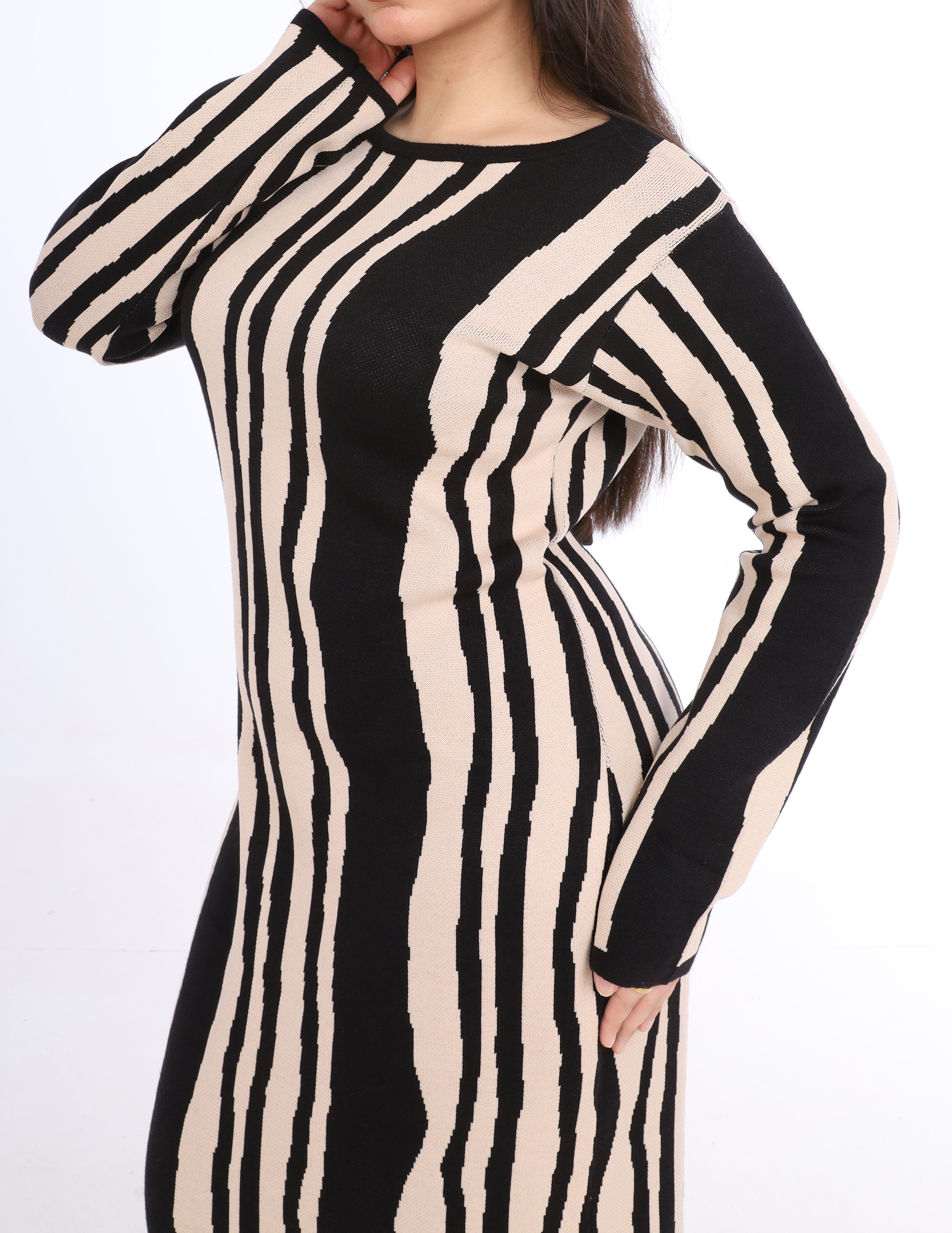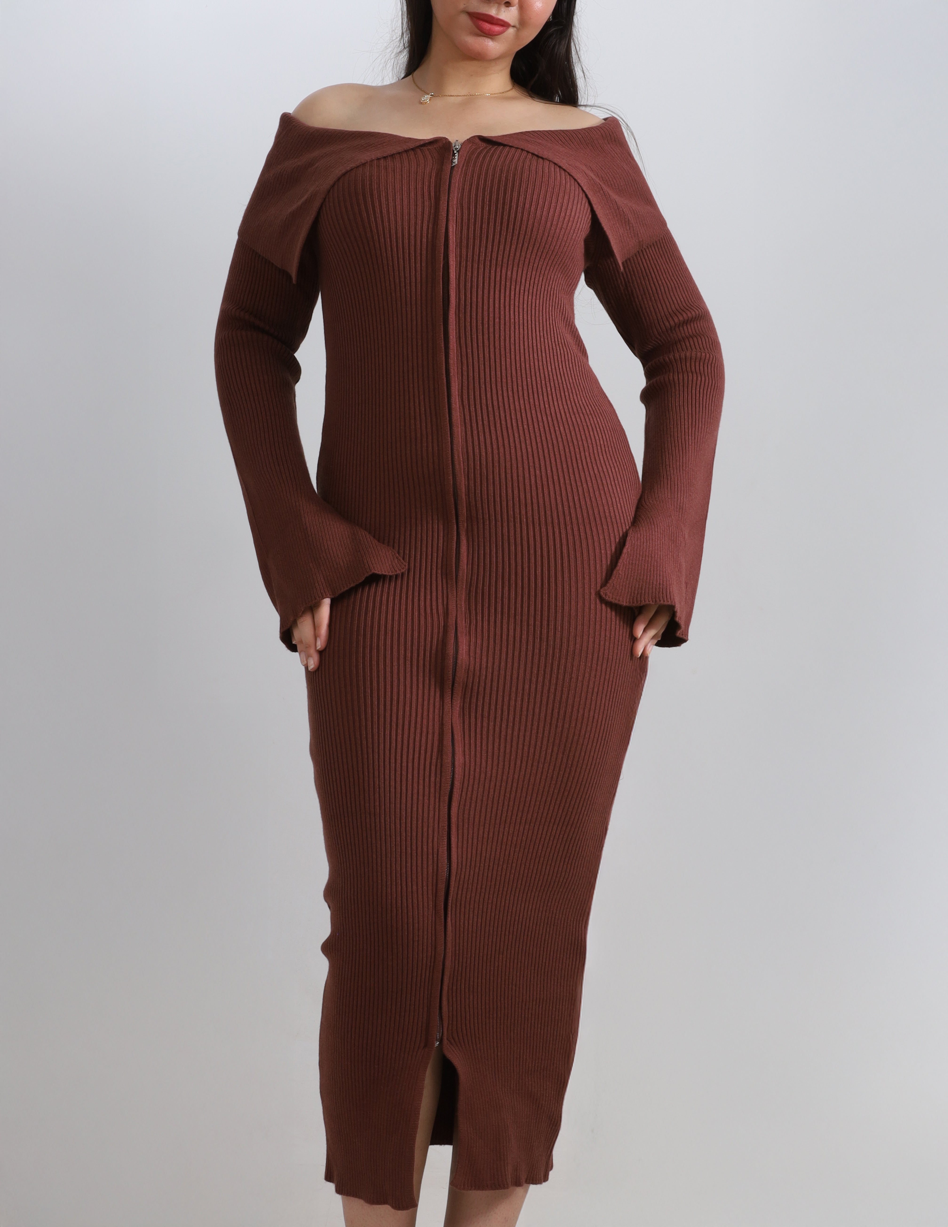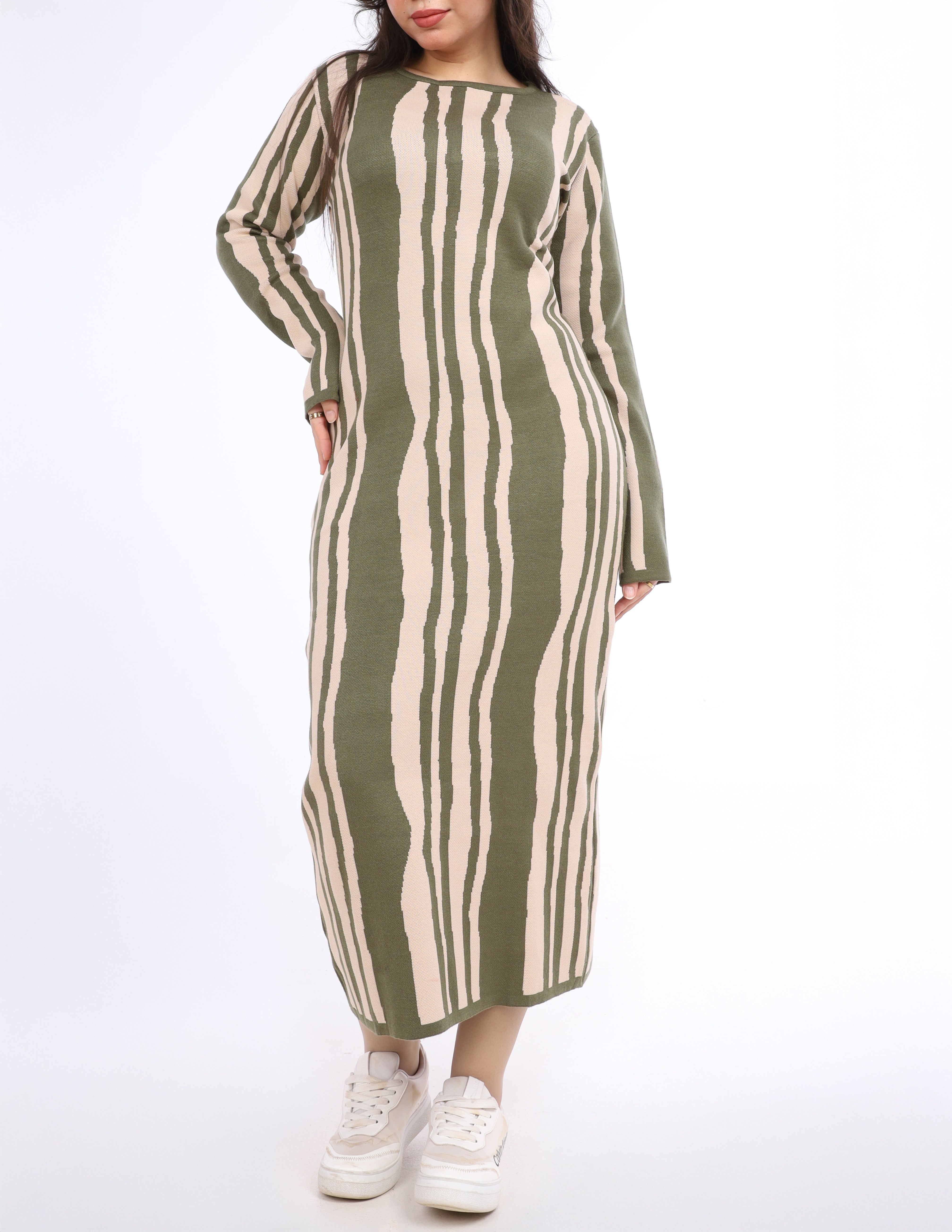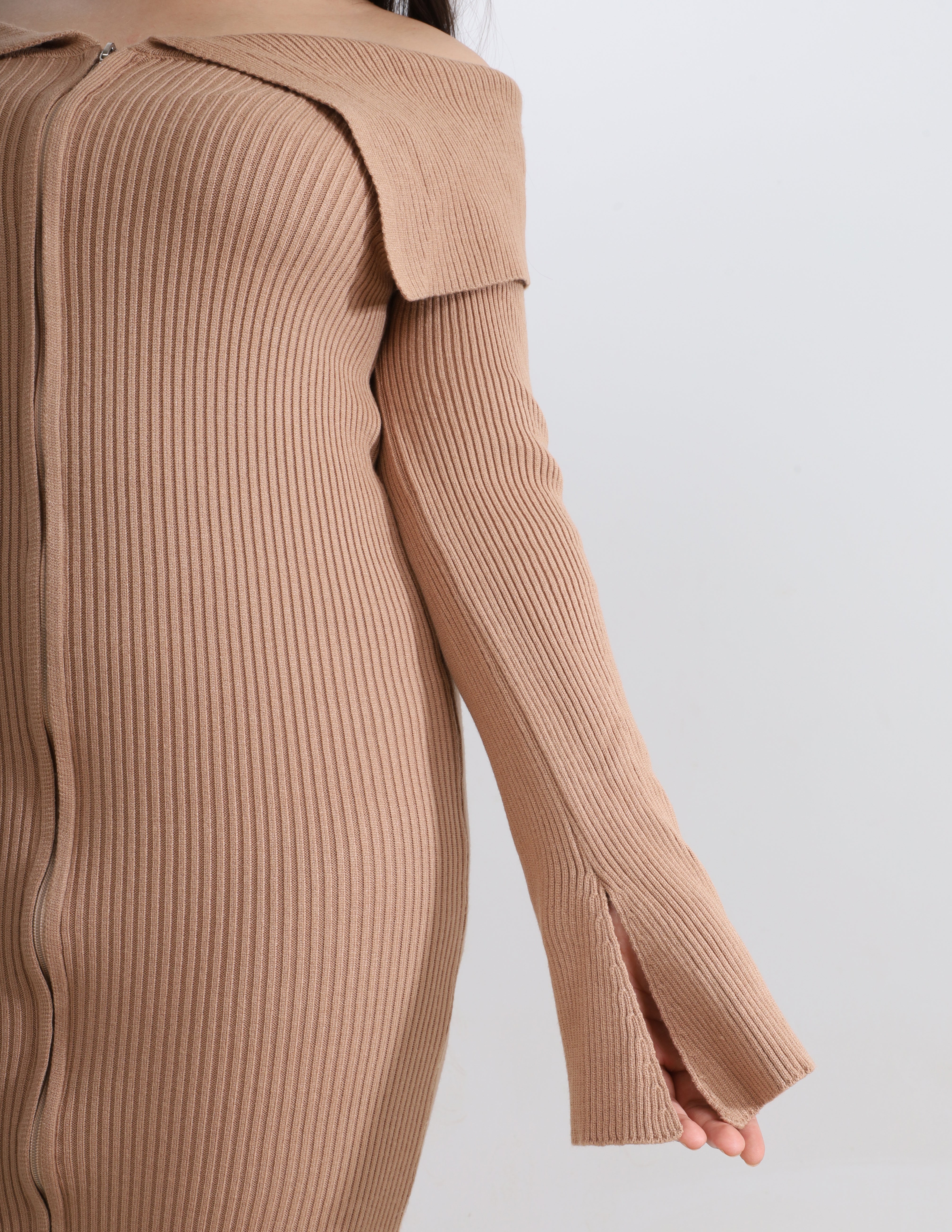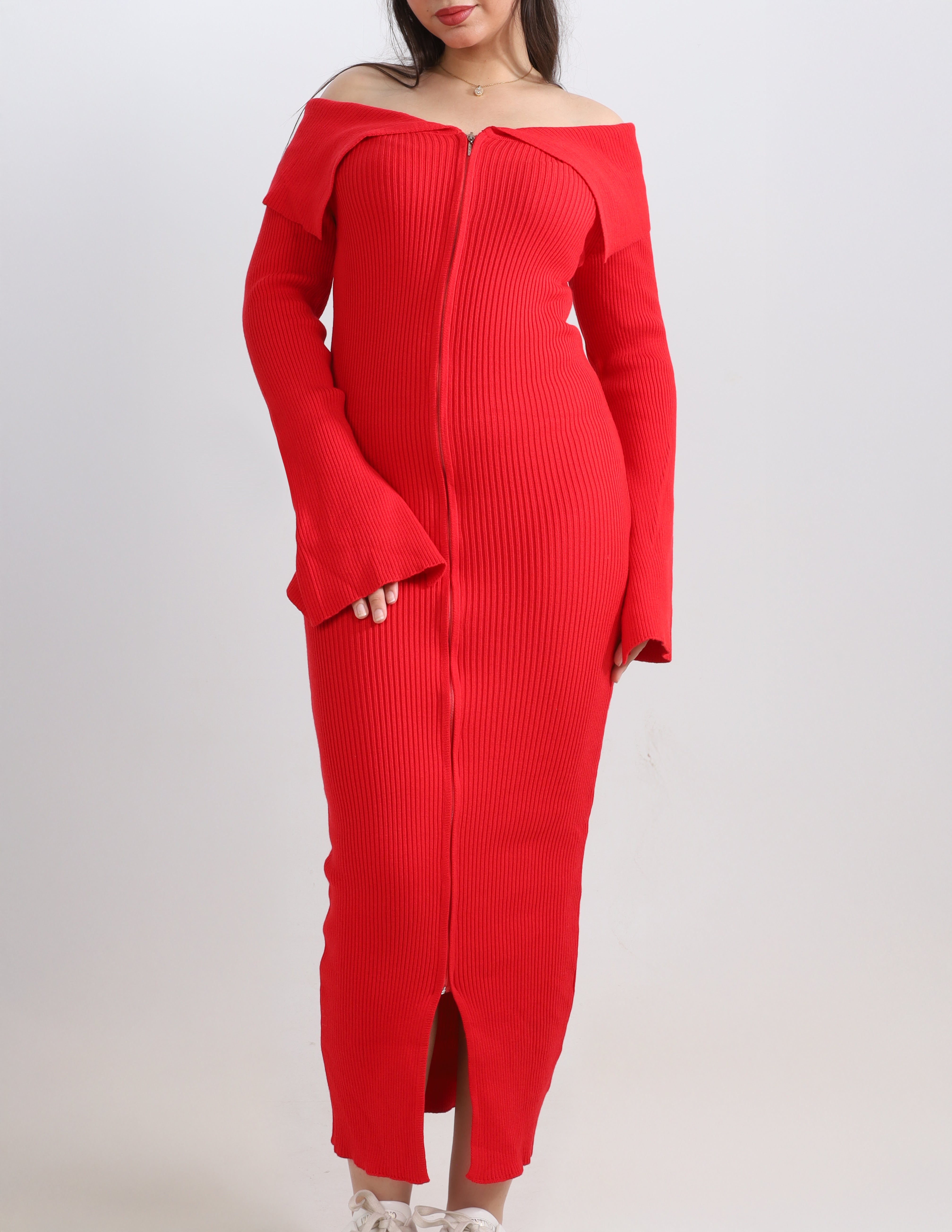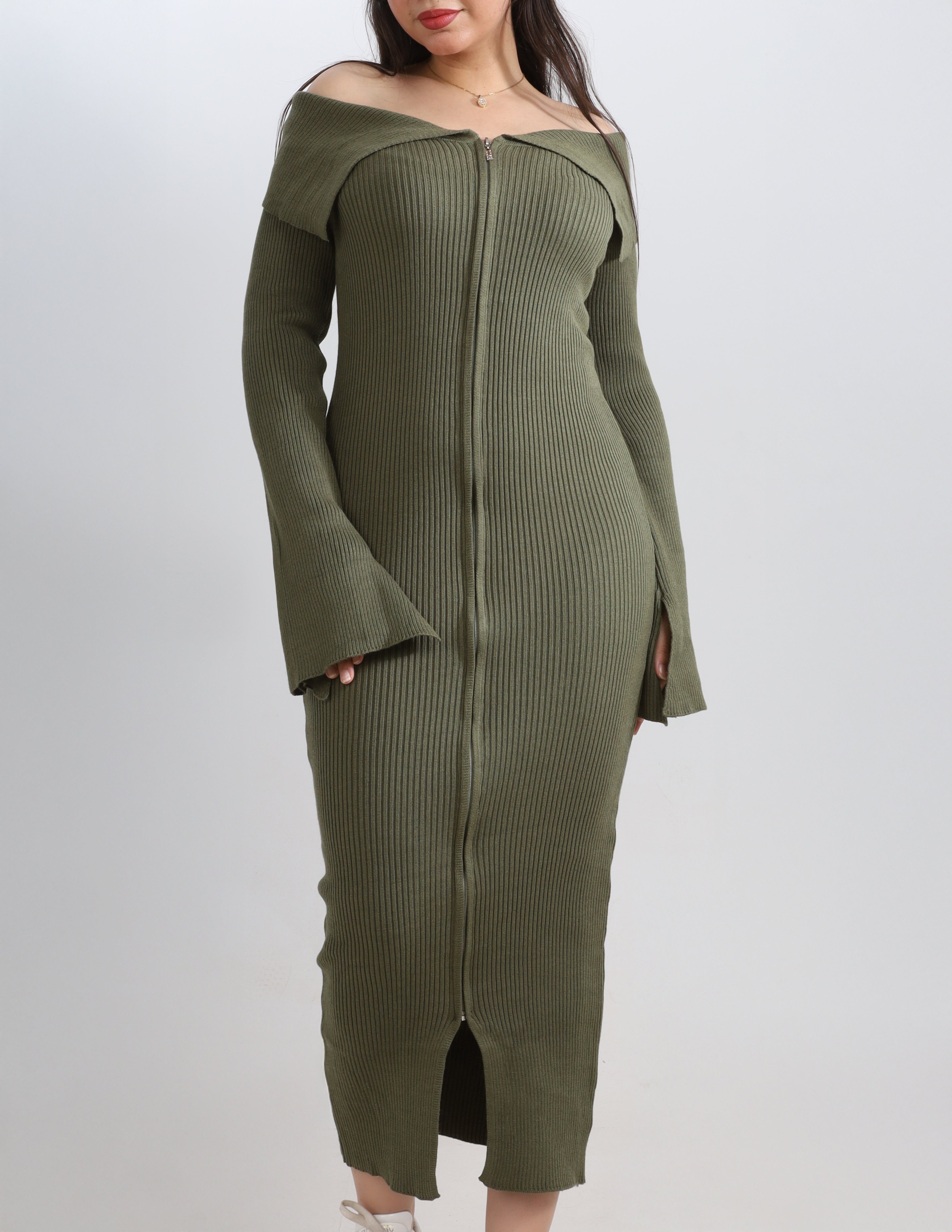 Striped Off-Shoulder Maxi Dress with Front Zipper  w16252634