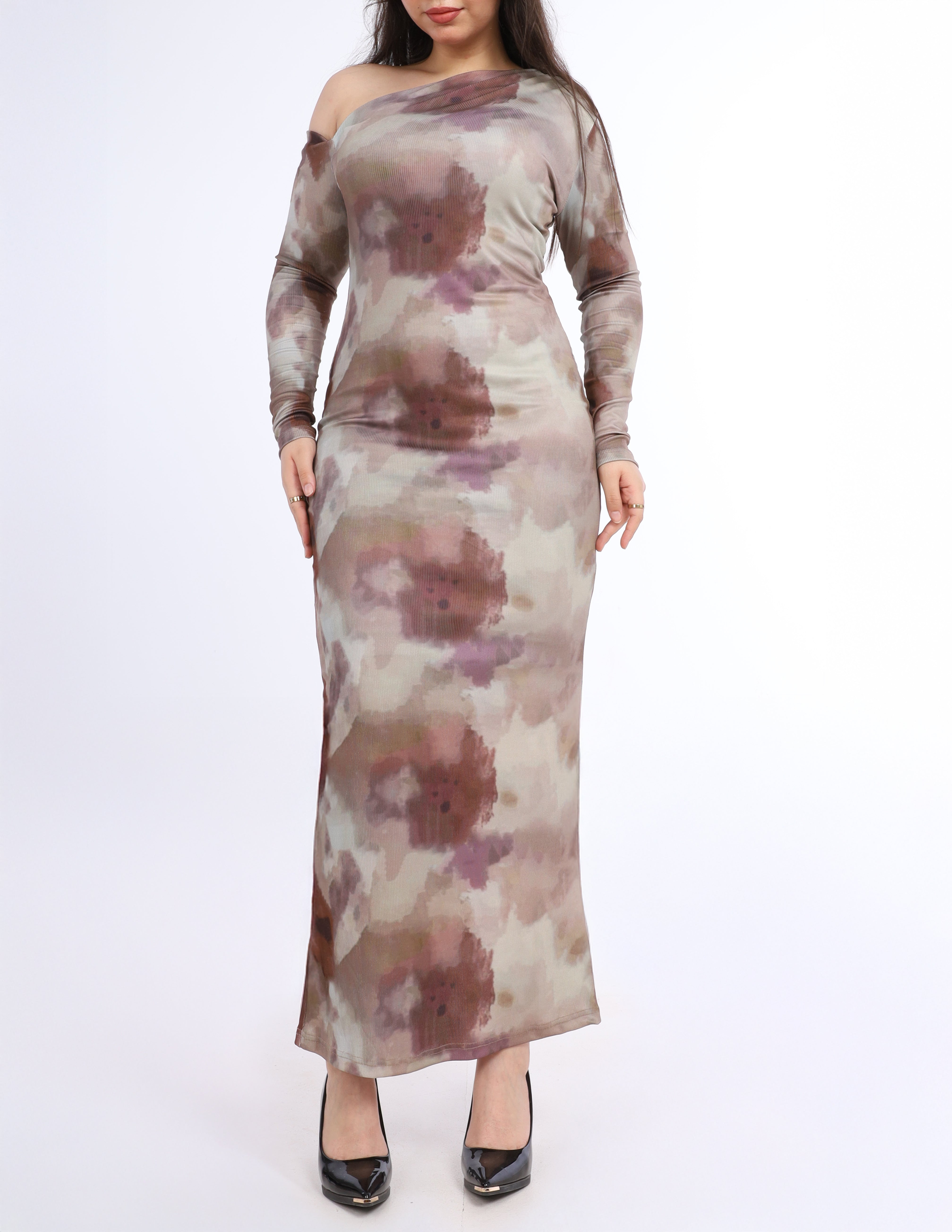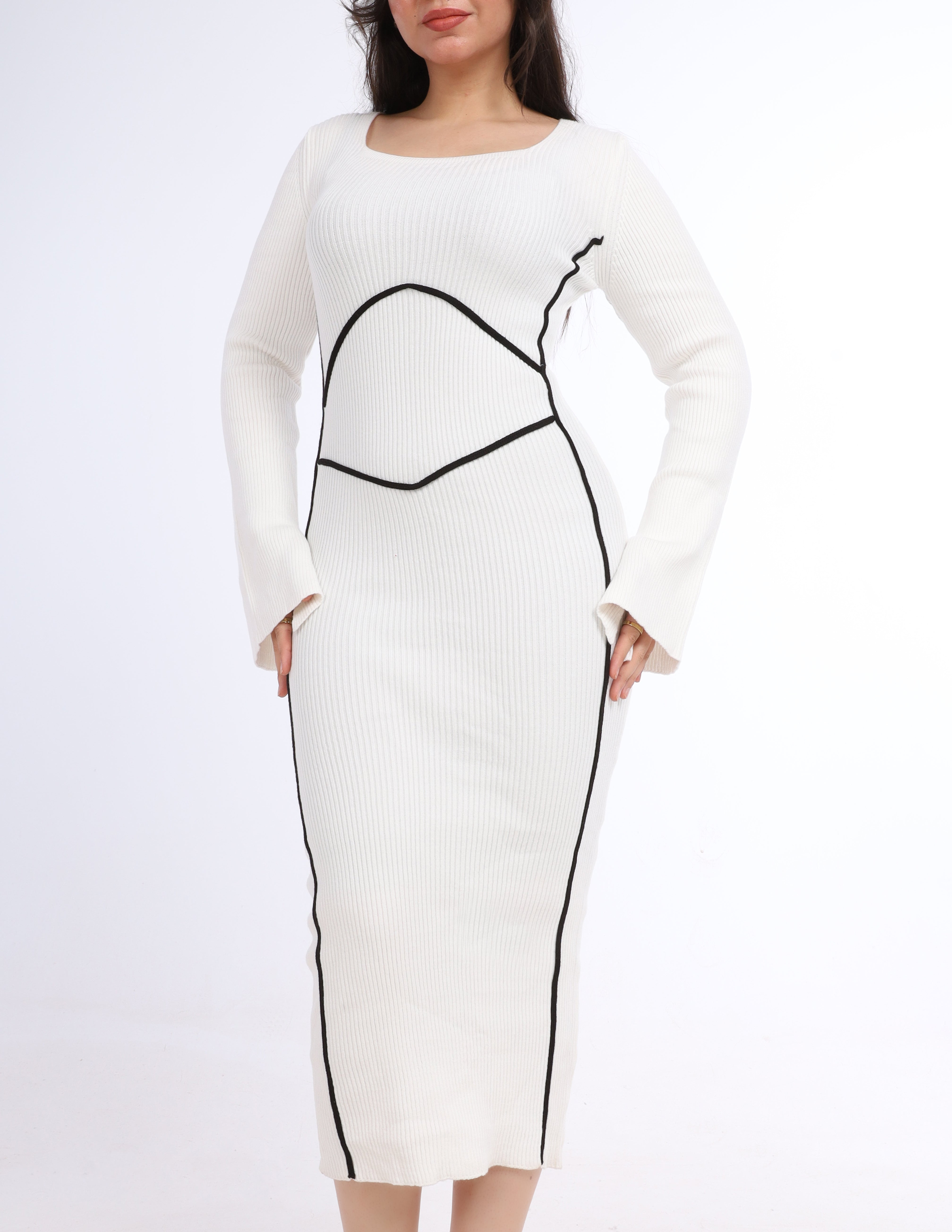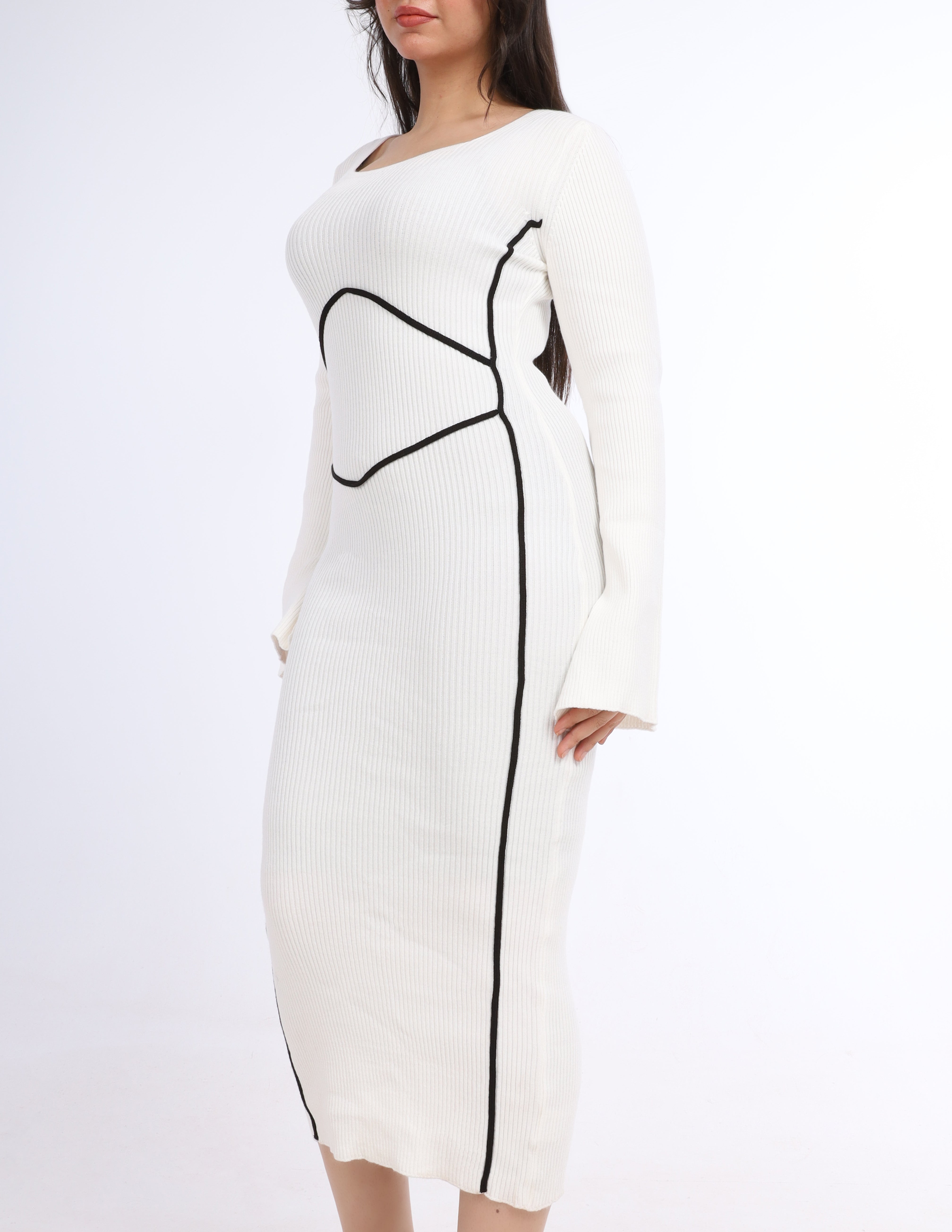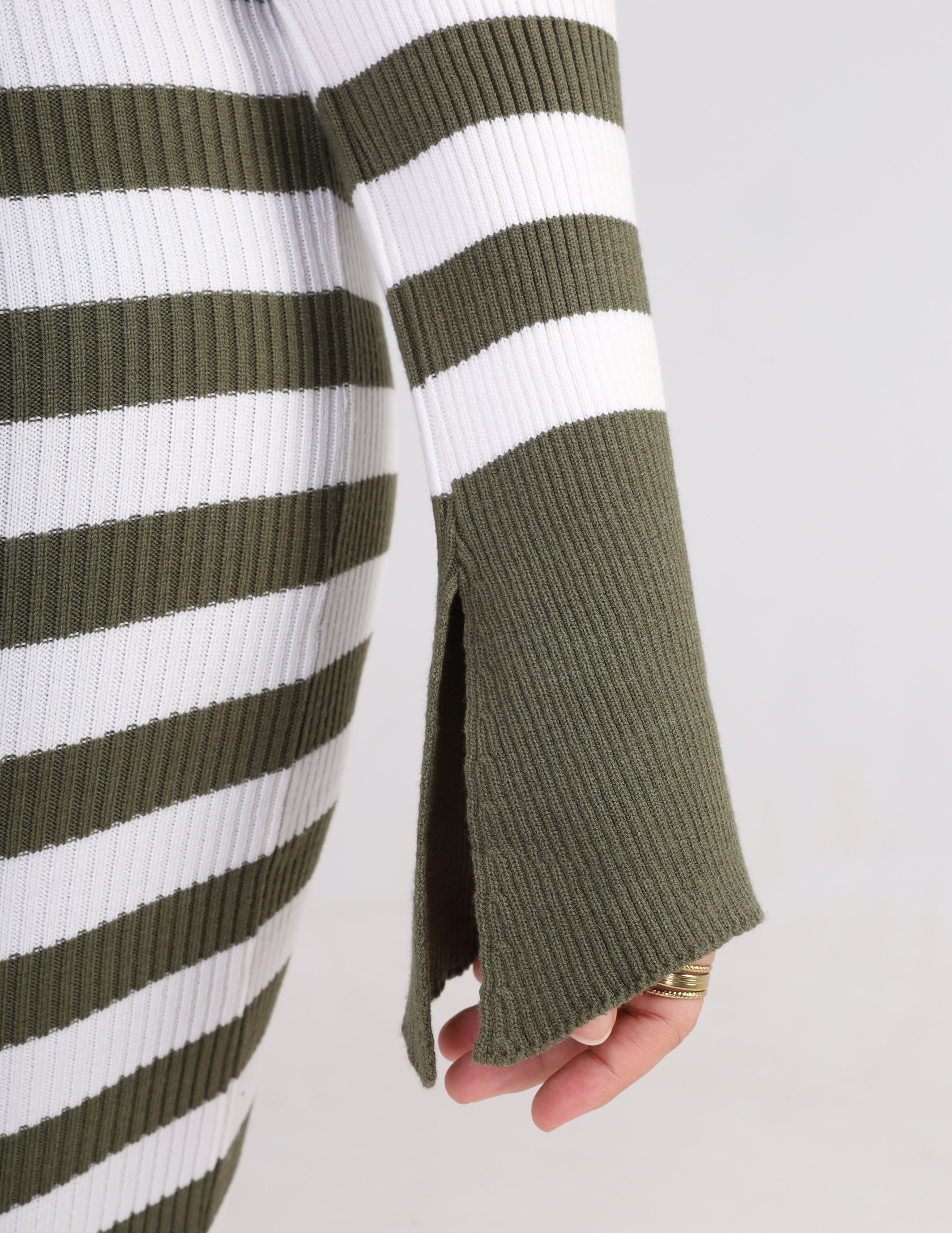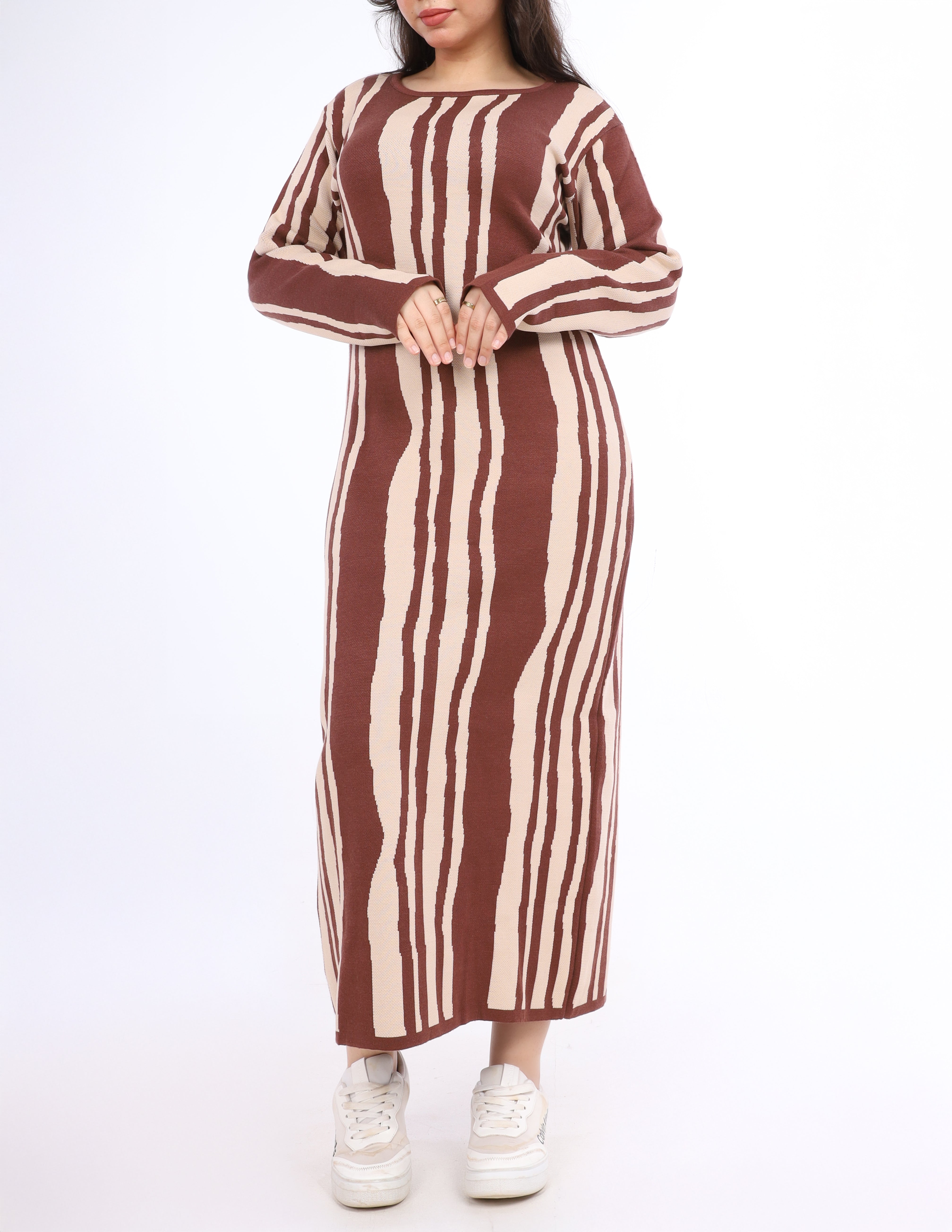 Striped Off-Shoulder Maxi Dress with Front Zipper  w16252634