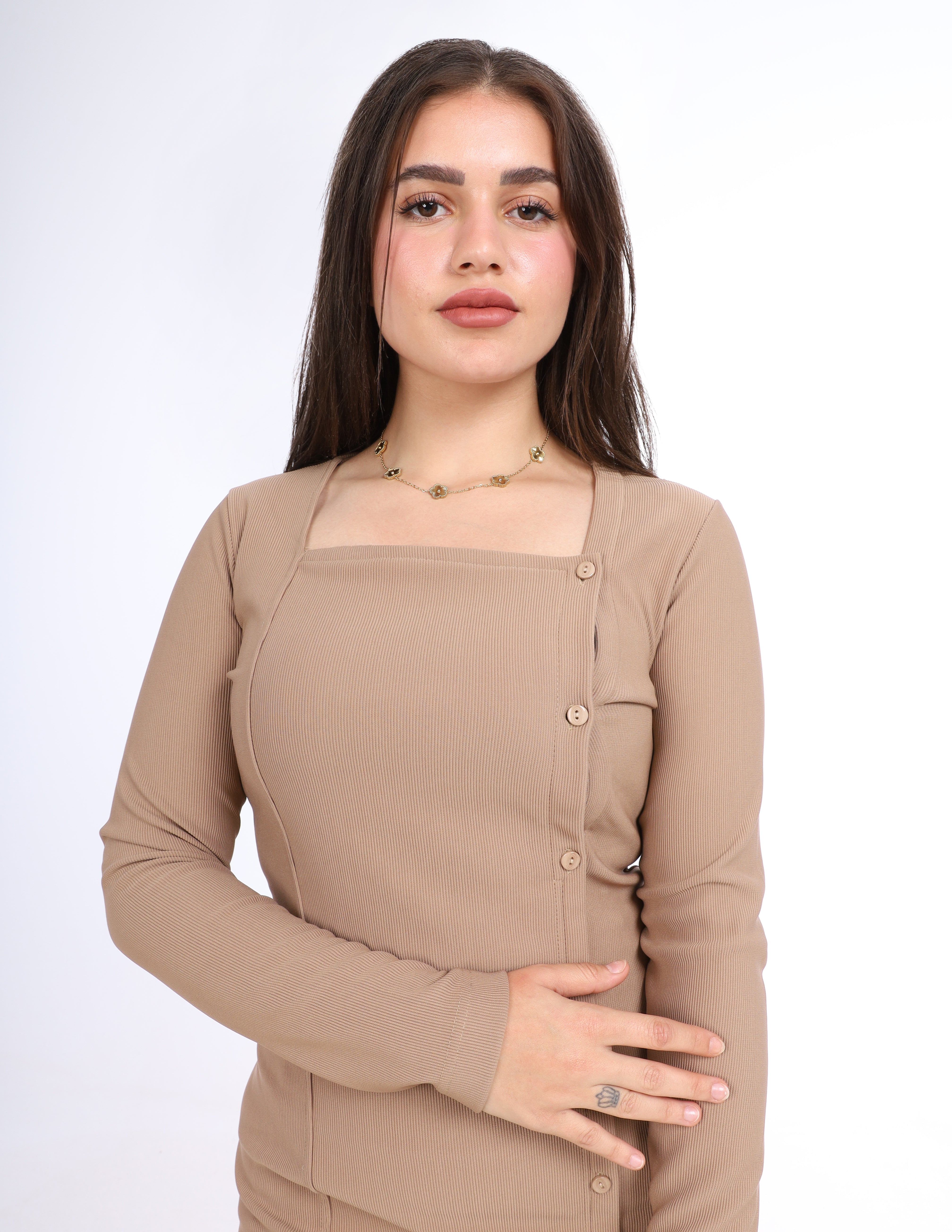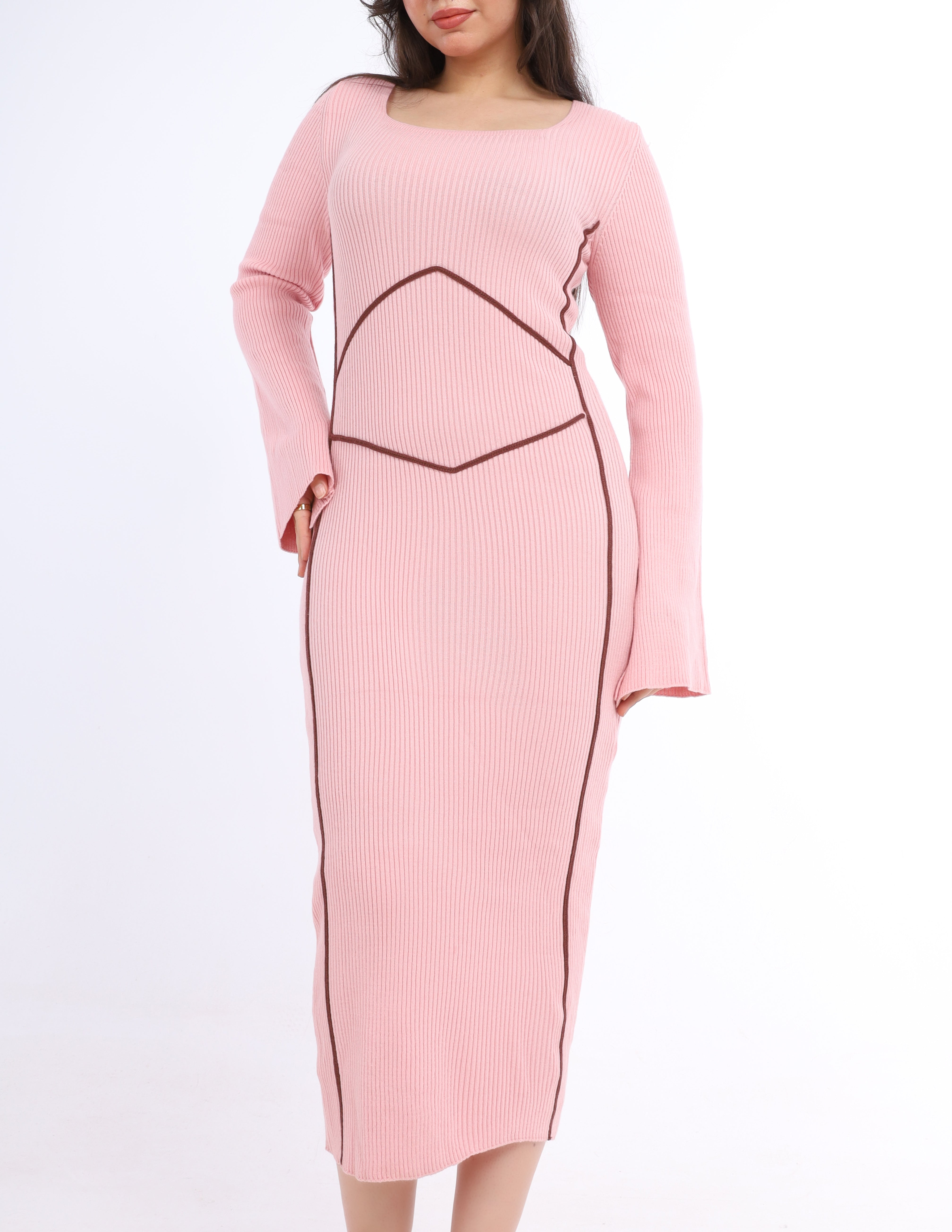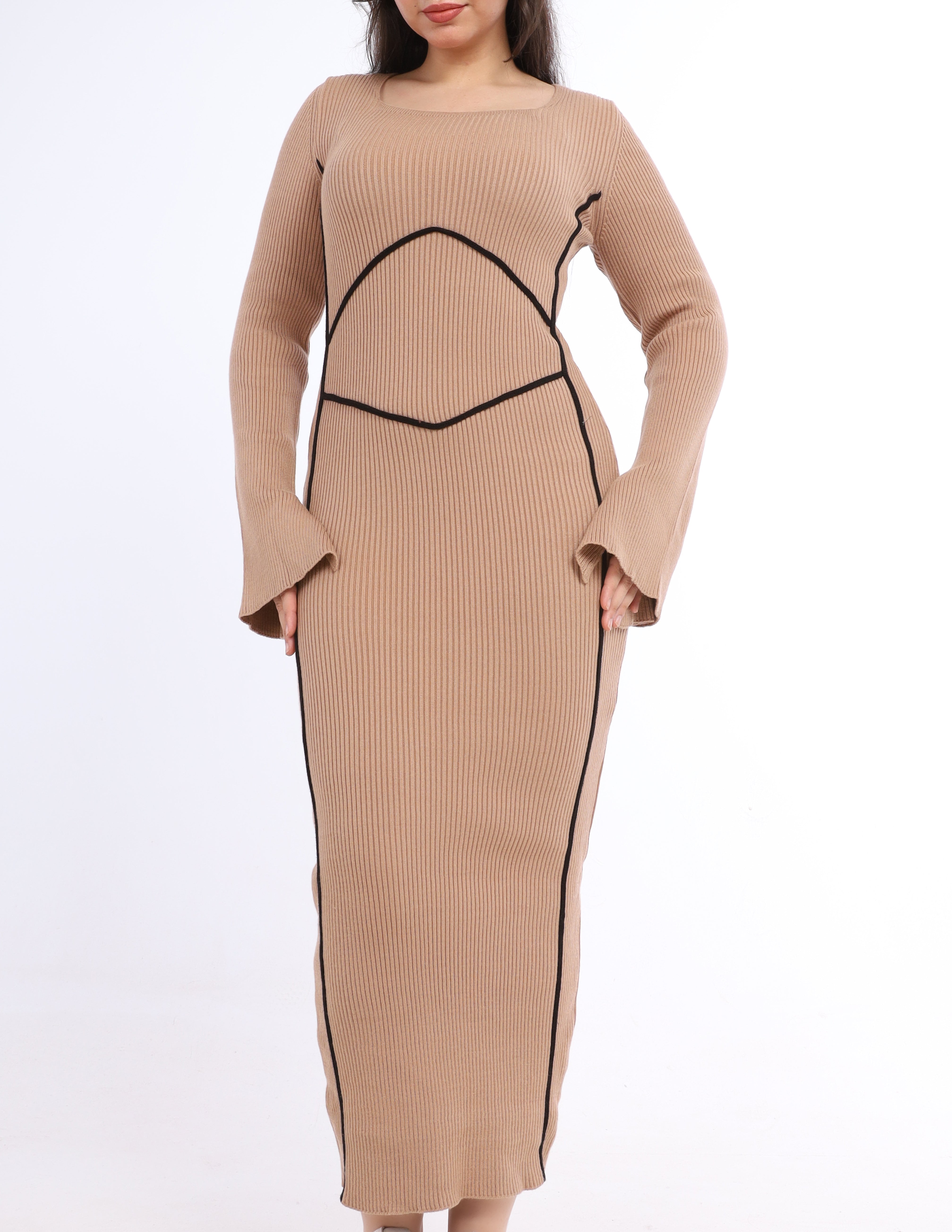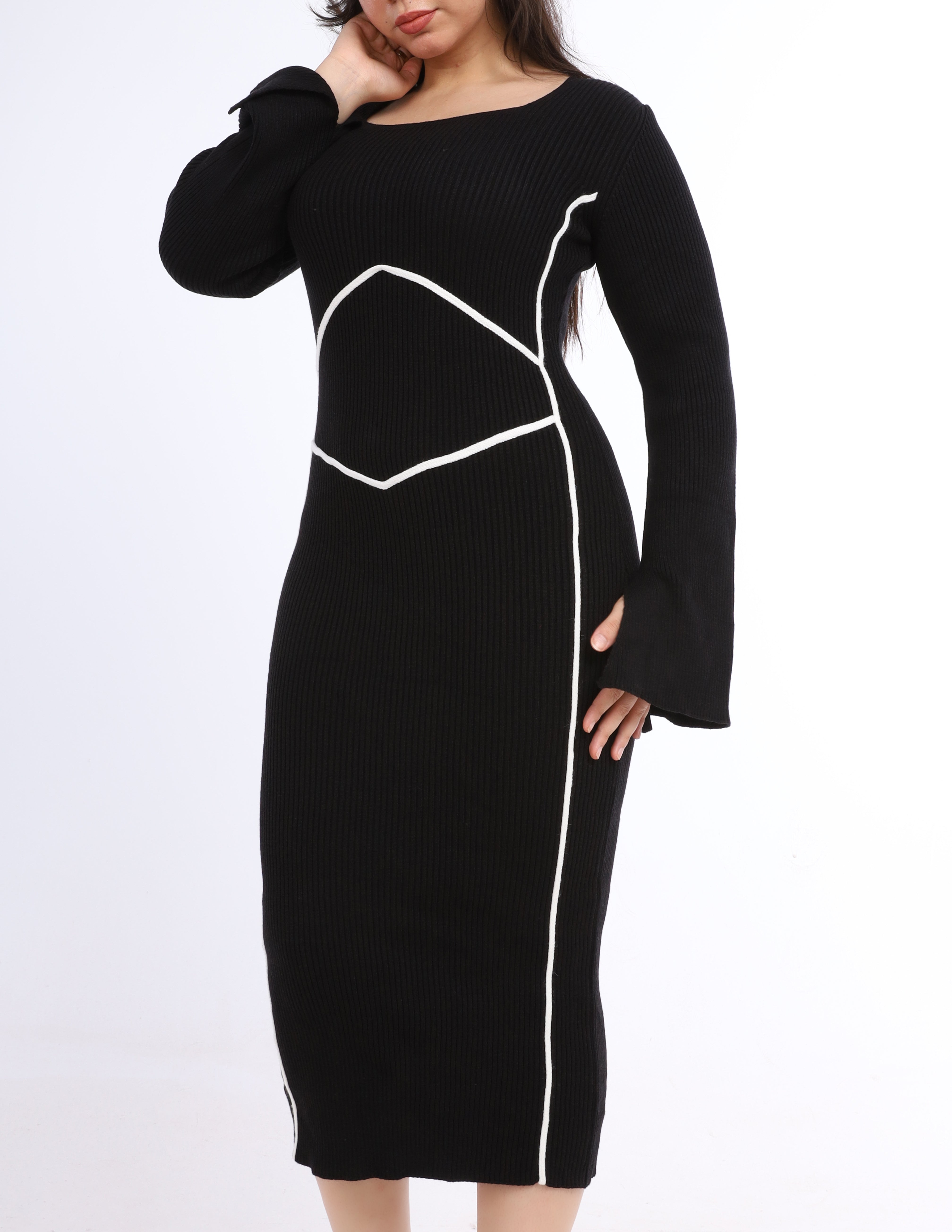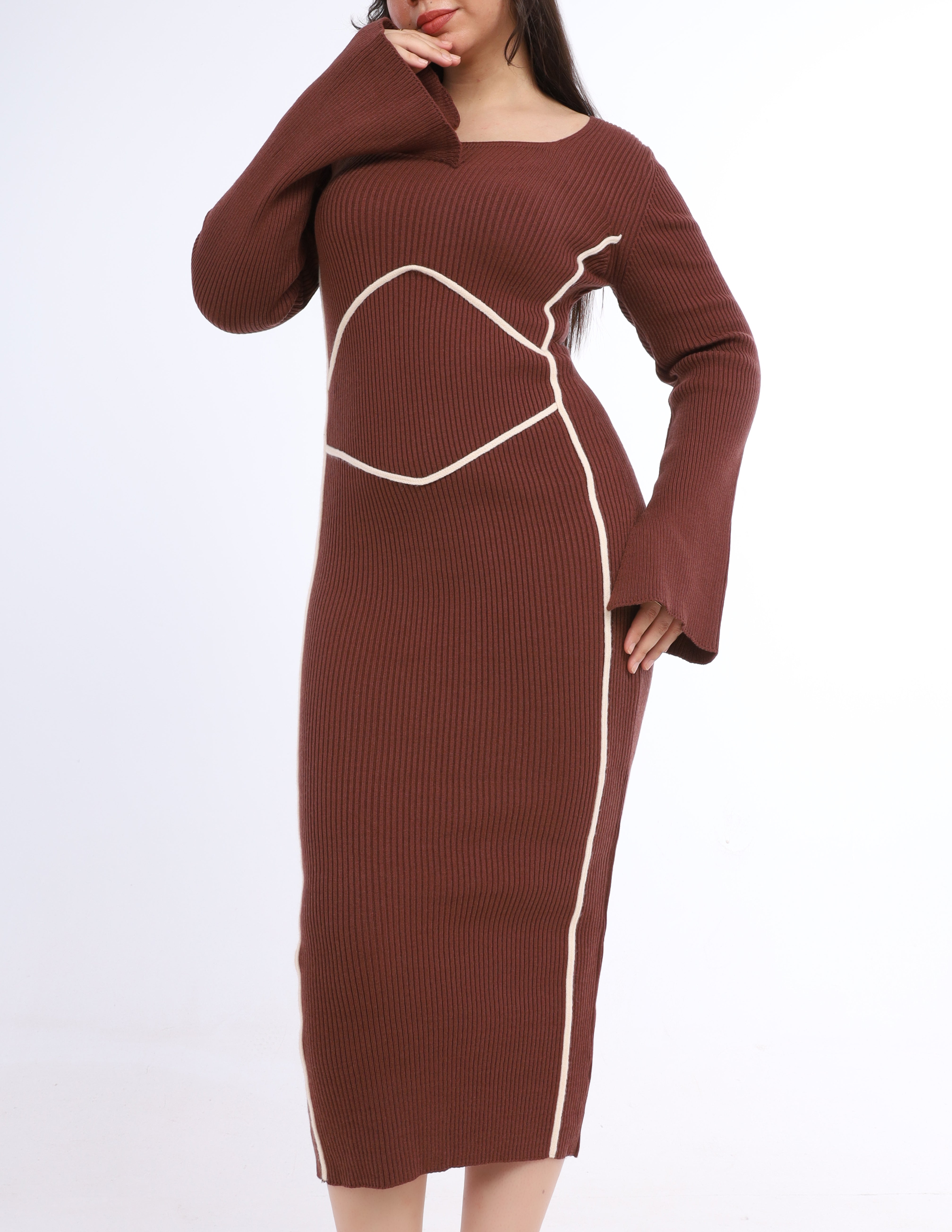 Striped Off-Shoulder Maxi Dress with Front Zipper  w16252634