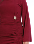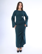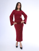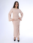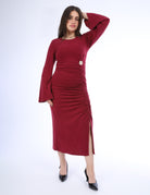 A fitted maxi dress with side ruching, designed to flatter your shape with its sleek and stretchy bodycon silhouette.