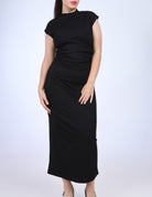 Sleek ribbed midi dress with a bodycon fit, accentuating your curves for a stylish look.