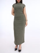 Sleek ribbed midi dress with a bodycon fit, accentuating your curves for a stylish look.