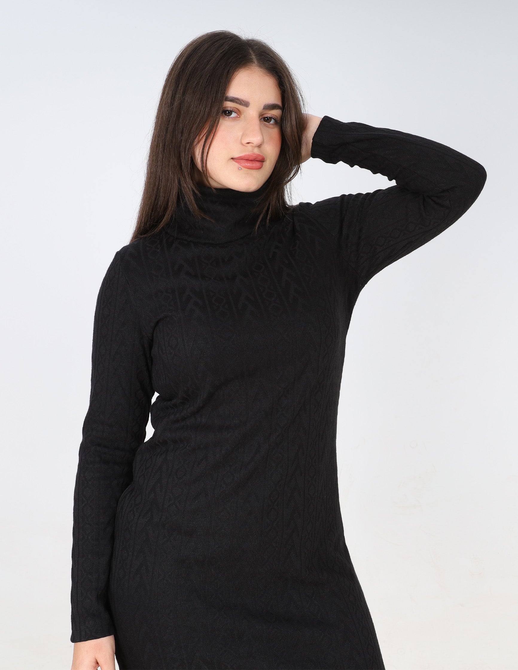 Simple and Chic mini bodycon dress with a sleek turtleneck and long sleeves , perfect for everyday style.