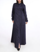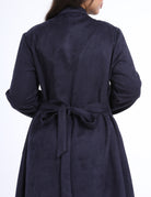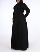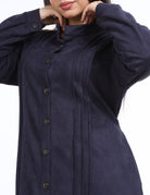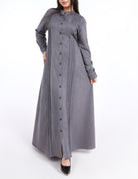 Maxi suede dress with a button-down front, offering a chic and elegant look.