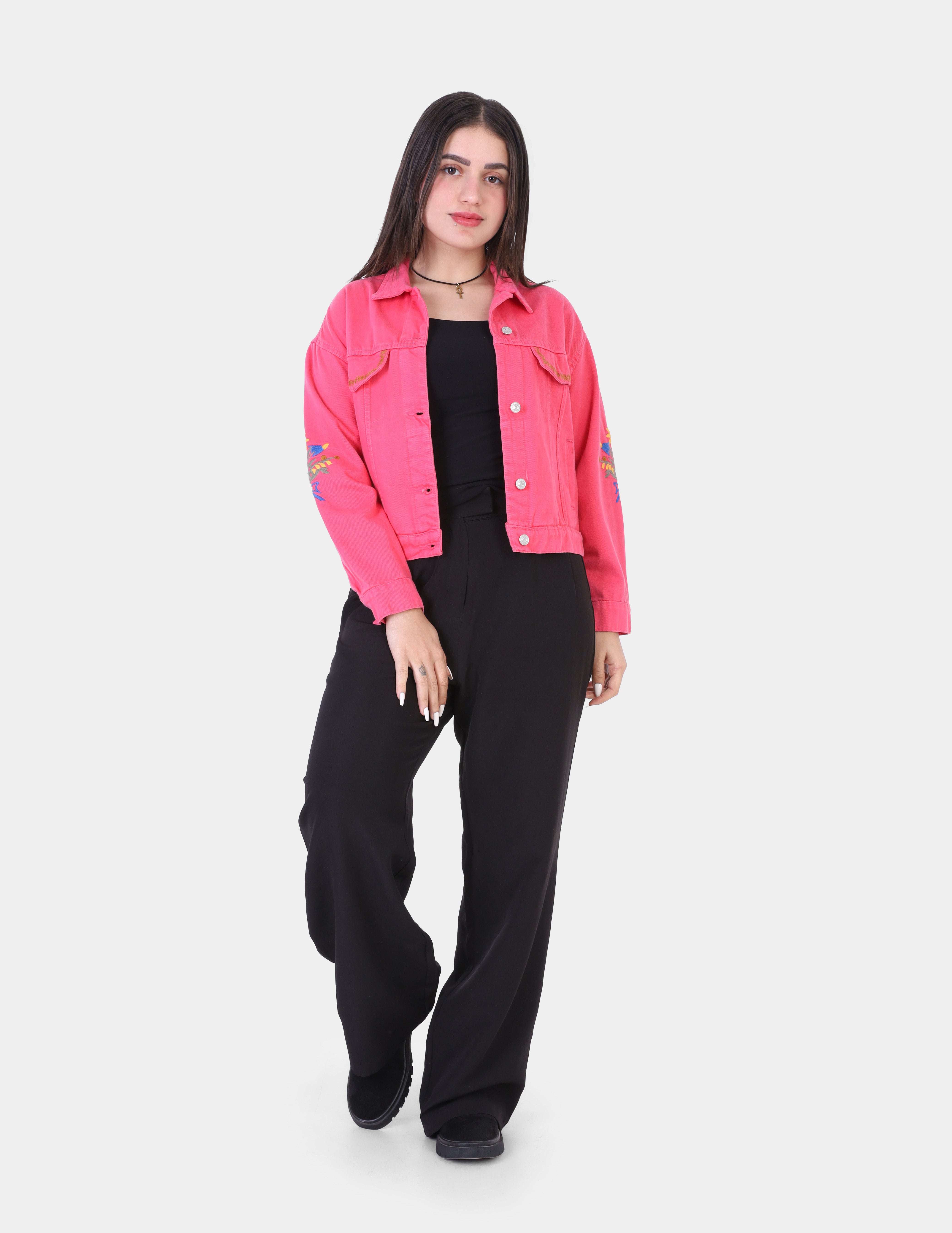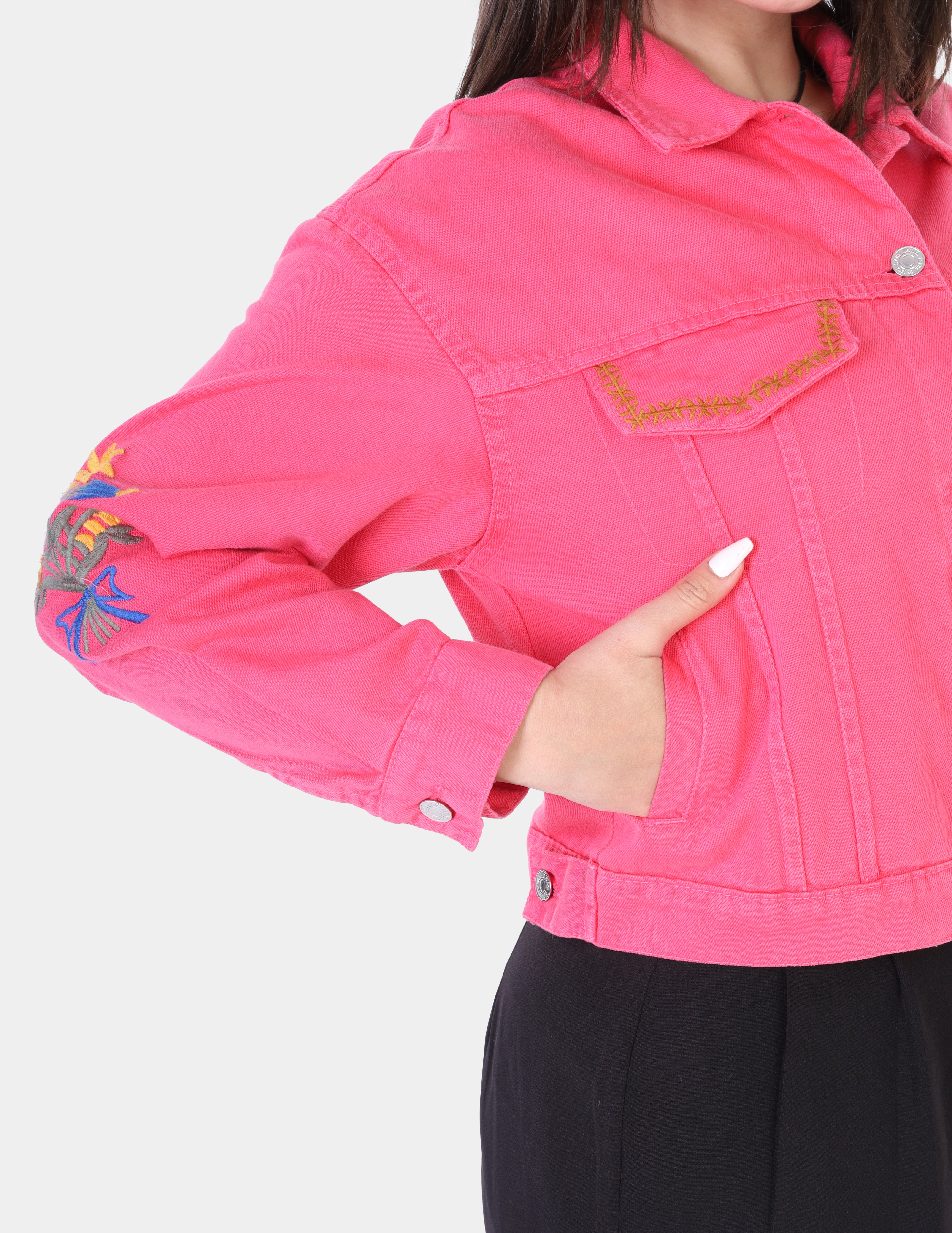 Denim Jacket with Sleeve Embroidery w16981133