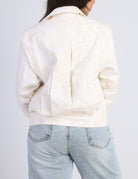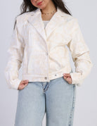 A classic denim jacket elevated with unique hand embroidery, perfect for layering over any outfit.