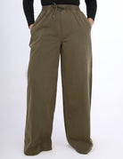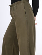 Wide-leg jeans featuring a comfortable elastic waistband for an easy, relaxed fit.