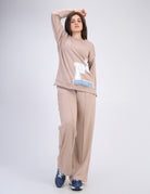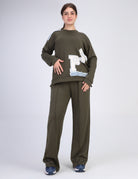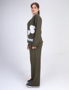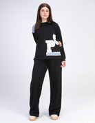 Comfy two-piece cotton set featuring a sweatshirt decorated with a letter “P, S” patch and matching wide-leg pants