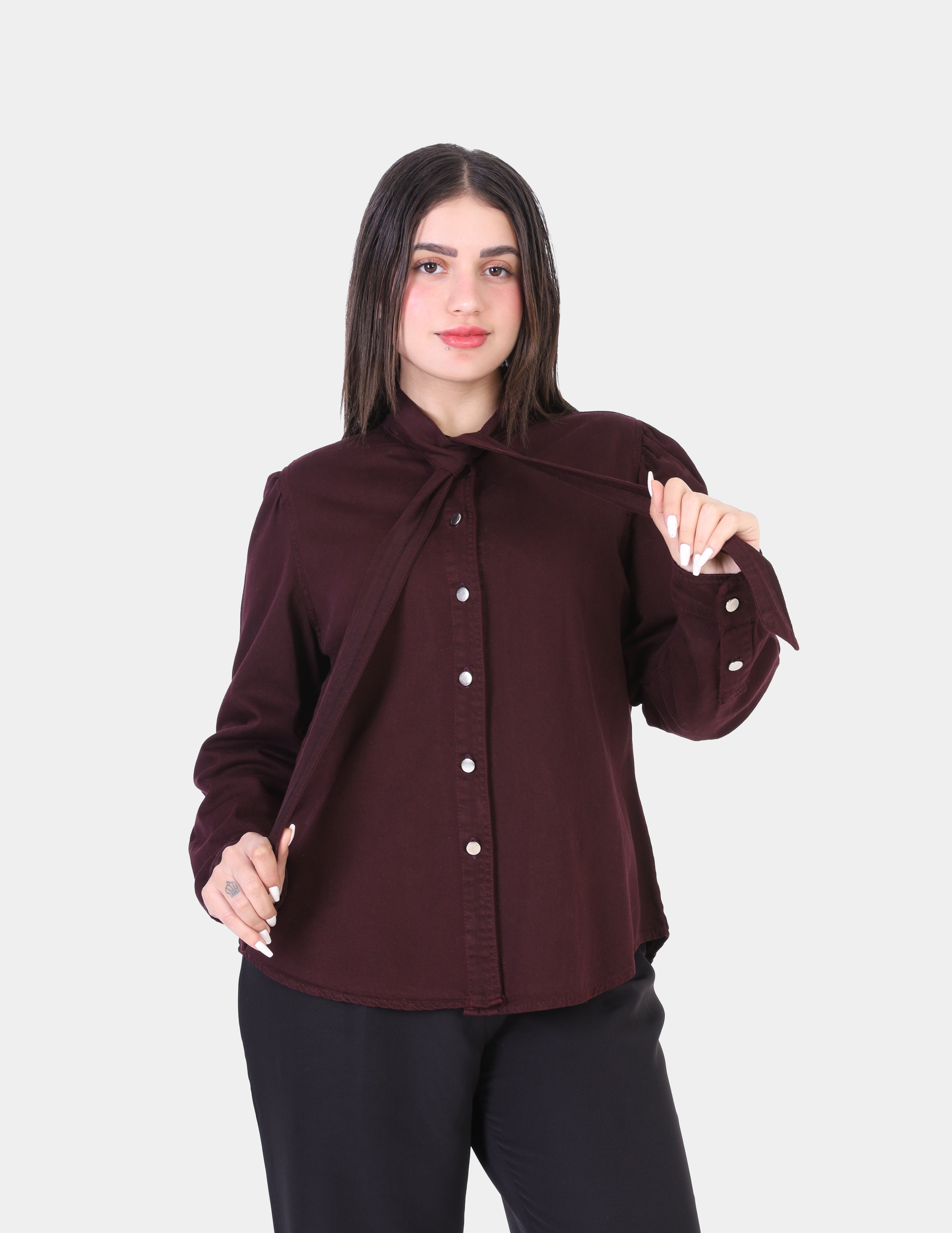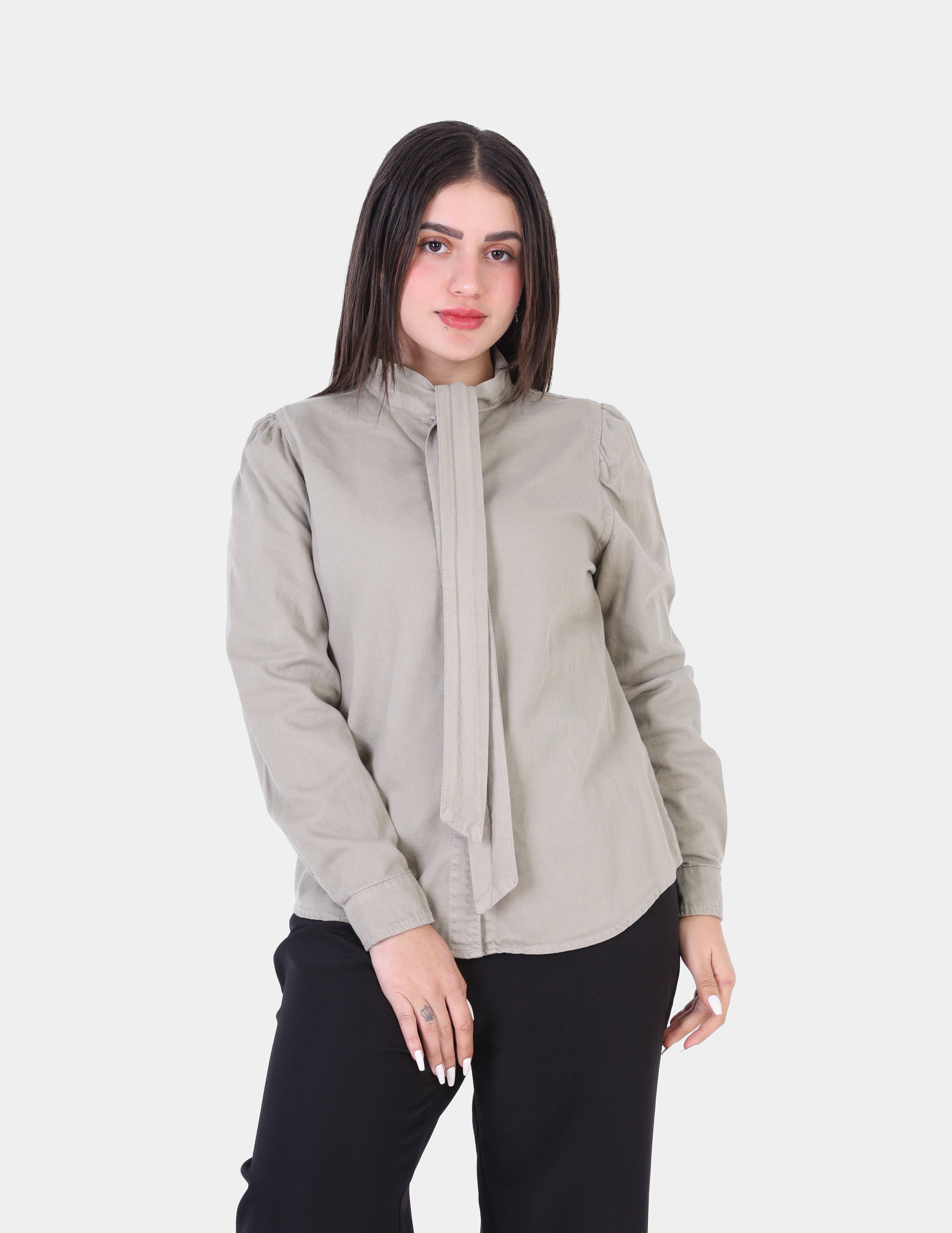 Gabardine Shirt with Front Buttons & Matching Tie w1698526