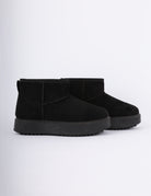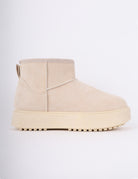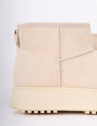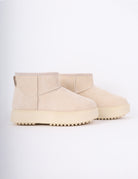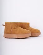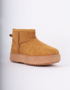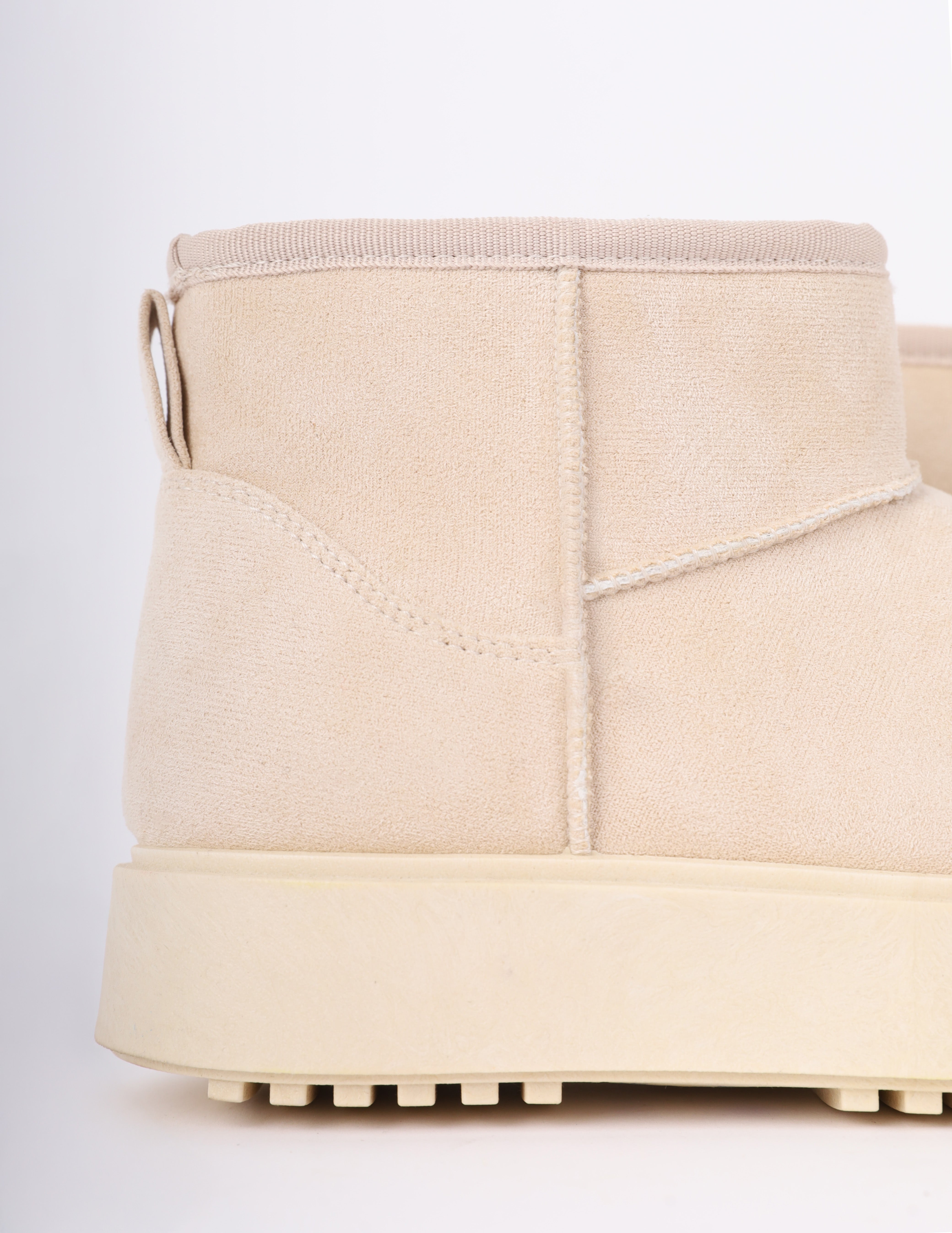 Soft winter suede-look boots with warm faux-fur lining, lace-up details, for cozy cold-weather comfort.