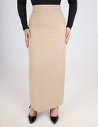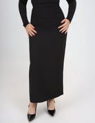 Elegant slim-fit long skirt in a solid color, perfect for a sleek and versatile look.
