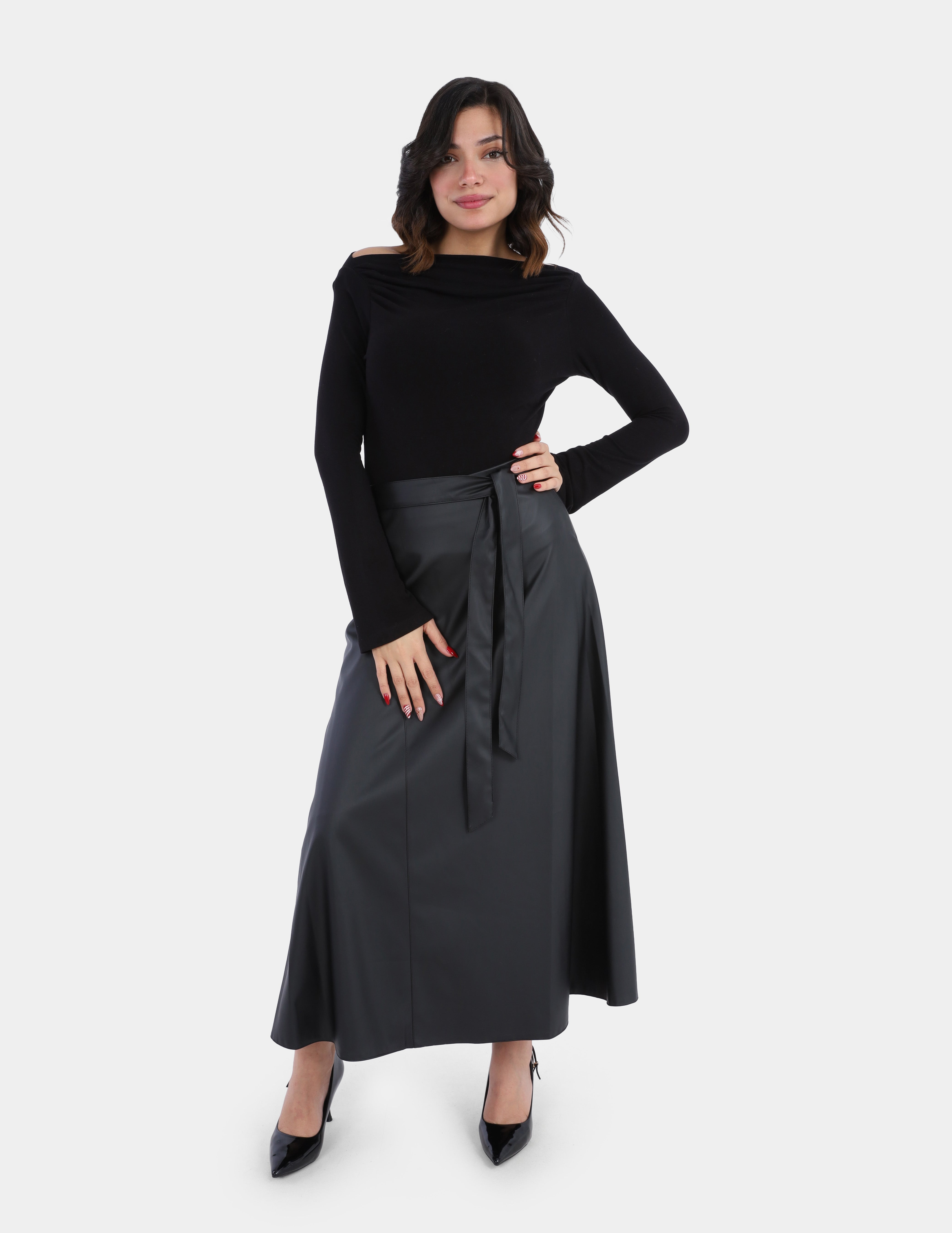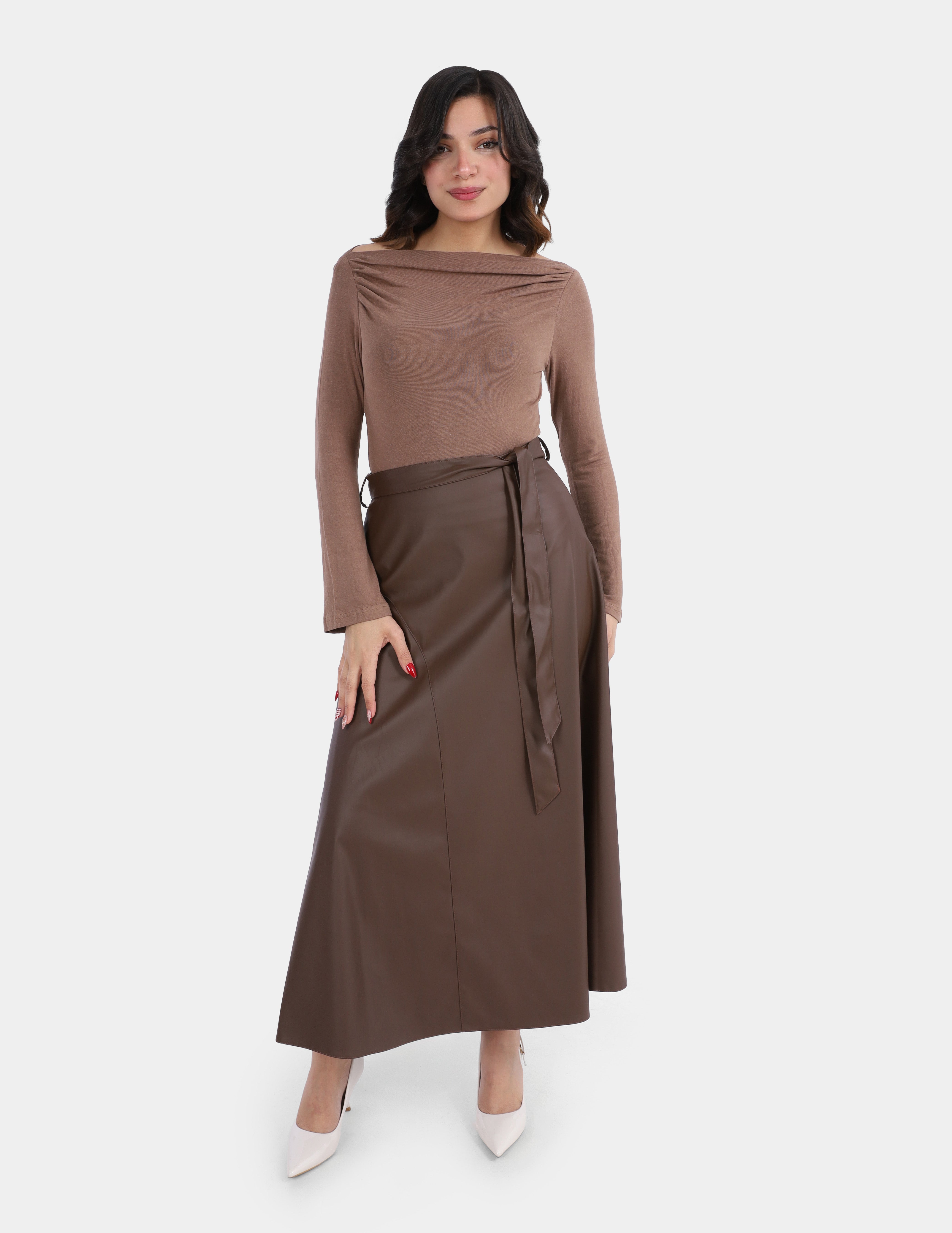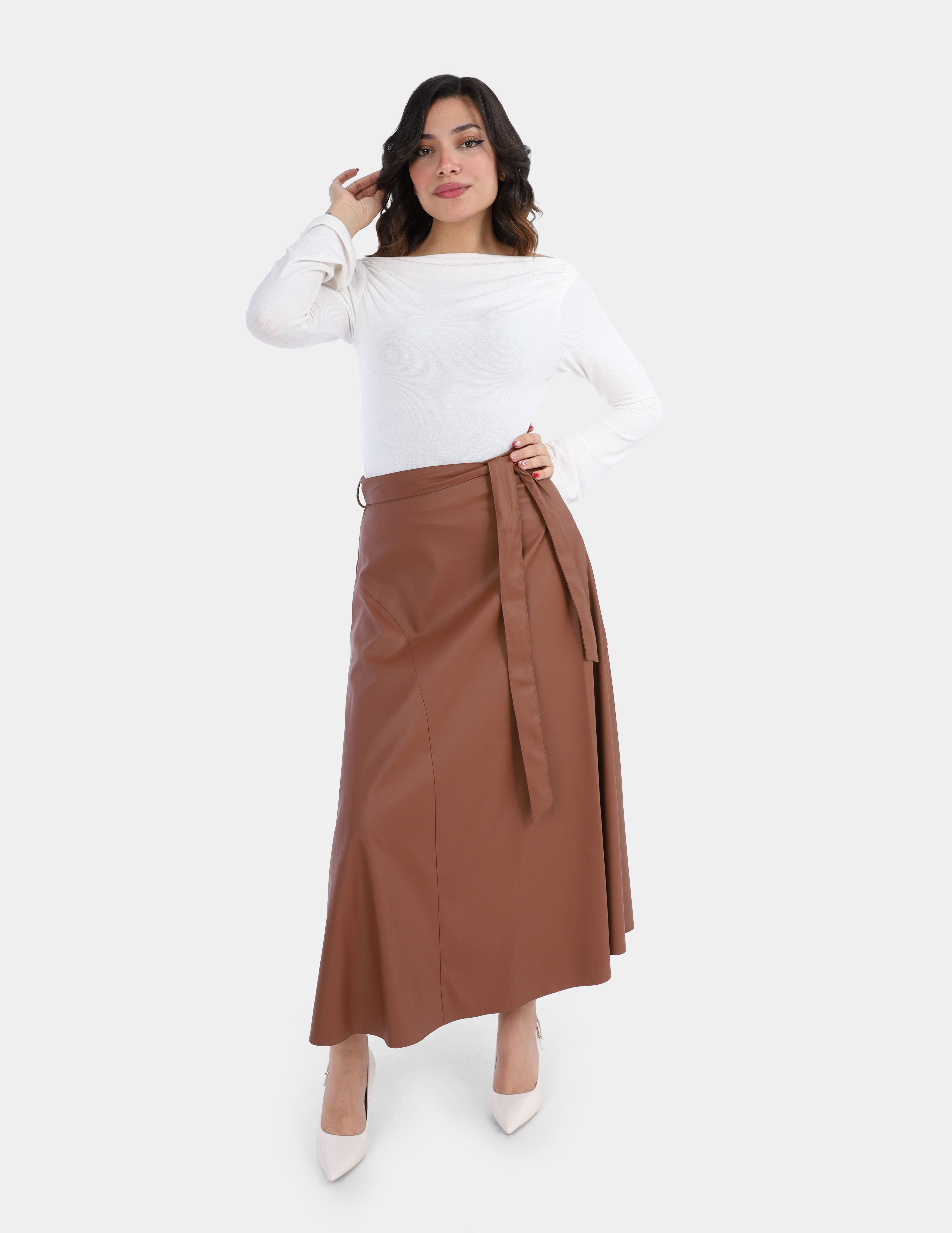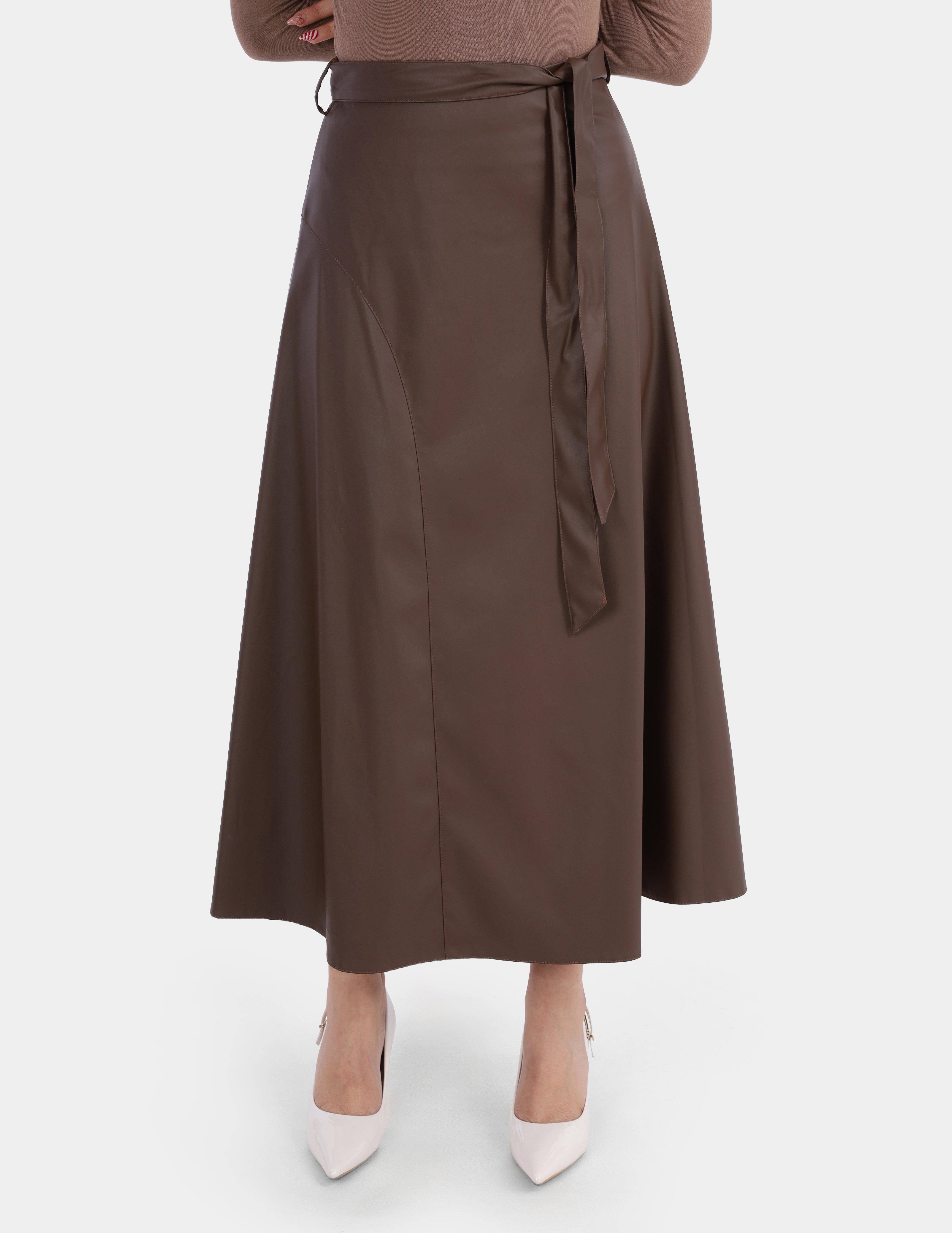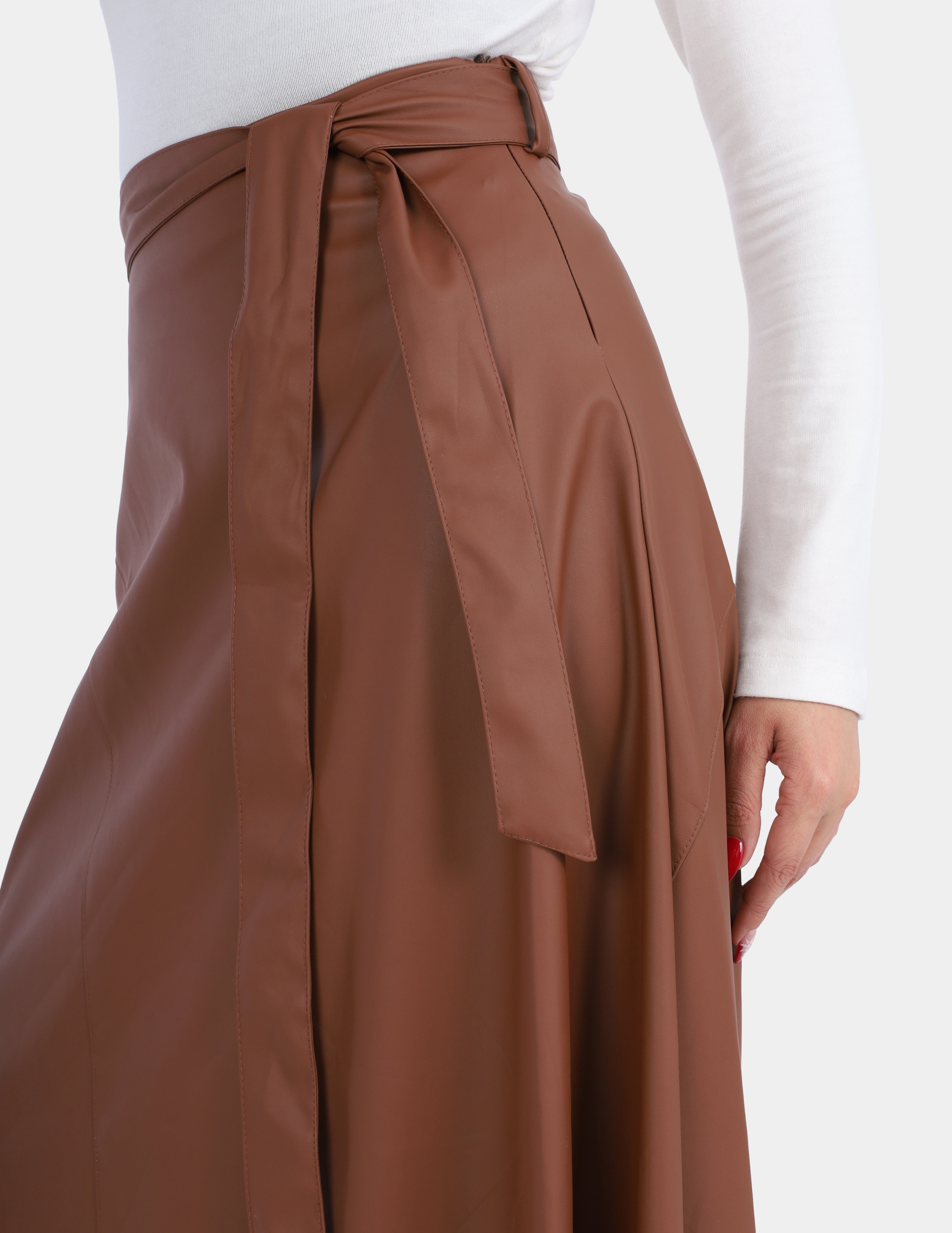 Leather Skirt with Side Belt Tie w1697806