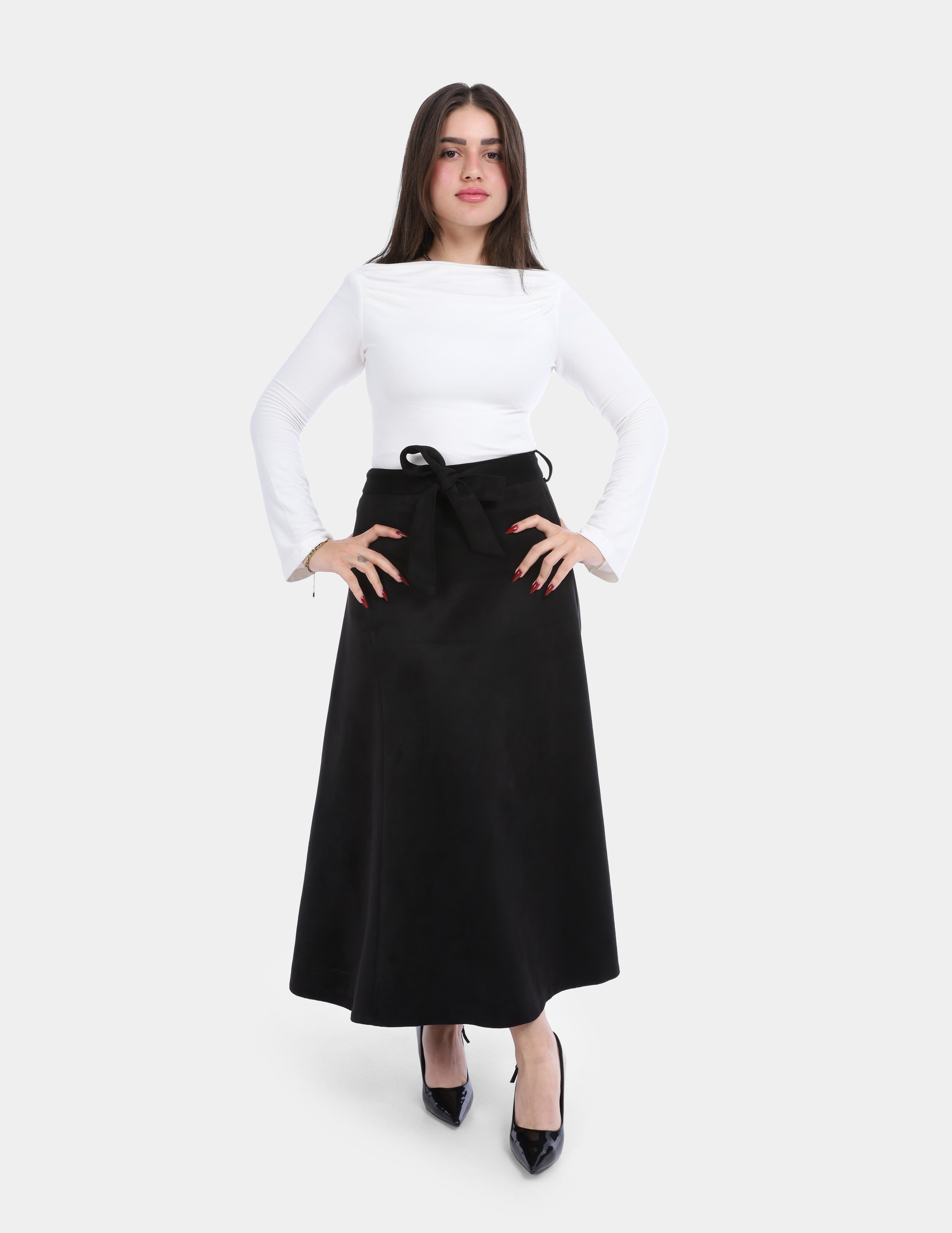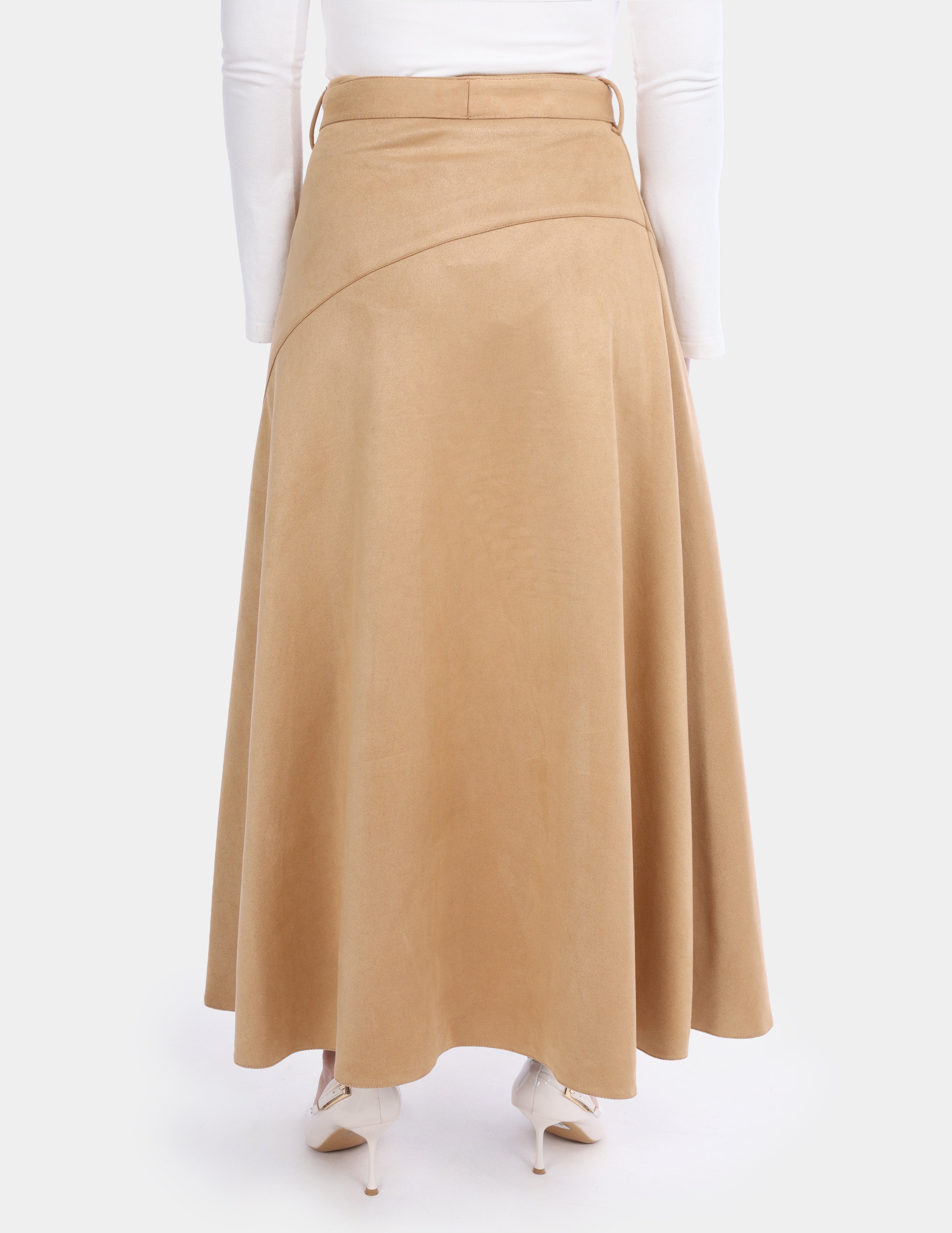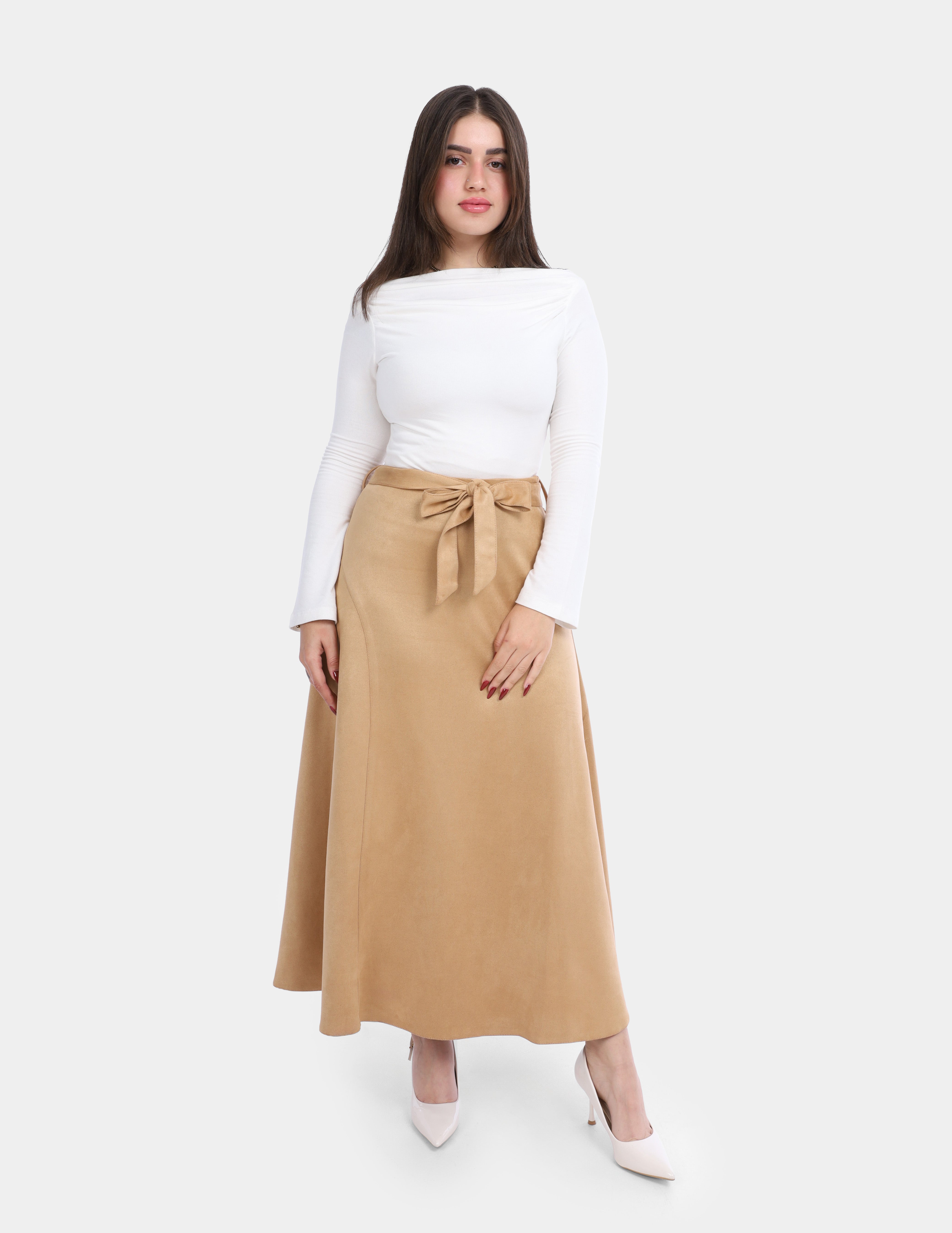 Suede Skirt with Front Belt Tie w1697808