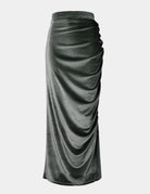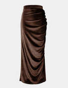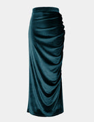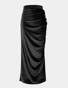 Luxurious velvet maxi skirt with ruched detailing for a flattering fit , perfect for both casual and formal occasions.