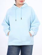 Soft oversized hoodie with elastic cuffs, drawstring hood, and a cozy front pocket