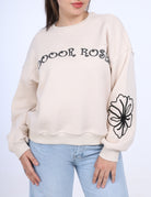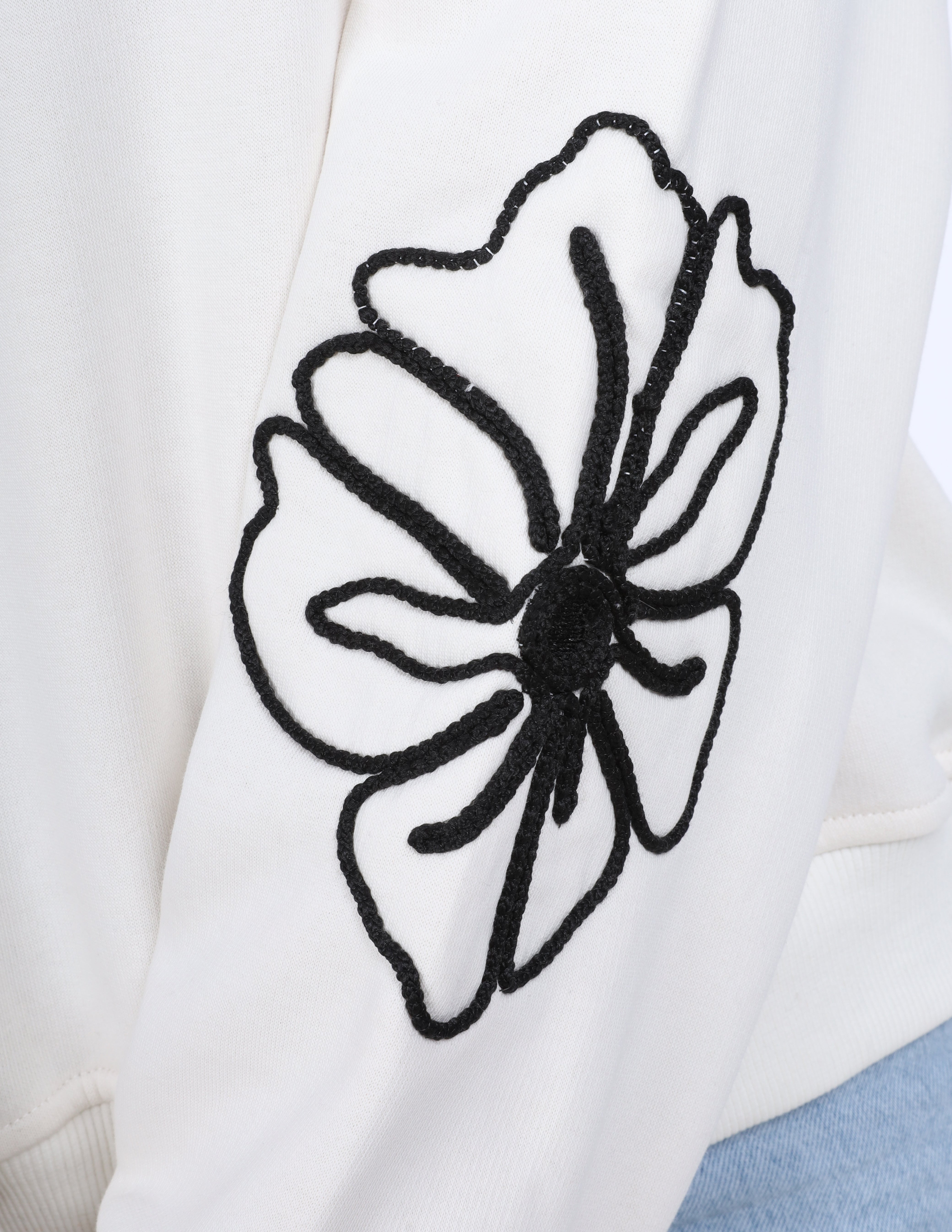 A soft, cozy sweatshirt featuring a stylish printed embroidery design for a unique textured look. Perfect for everyday wear