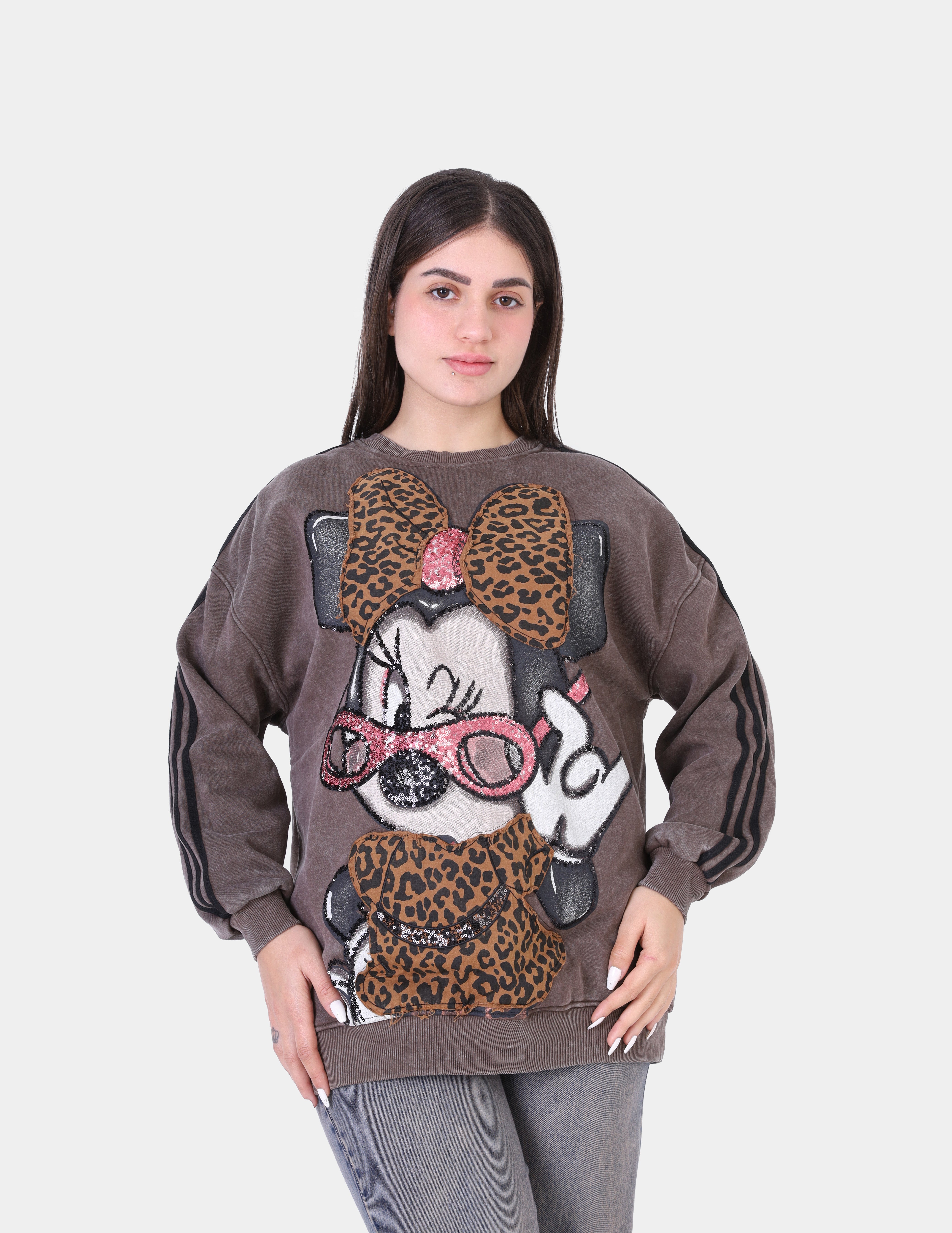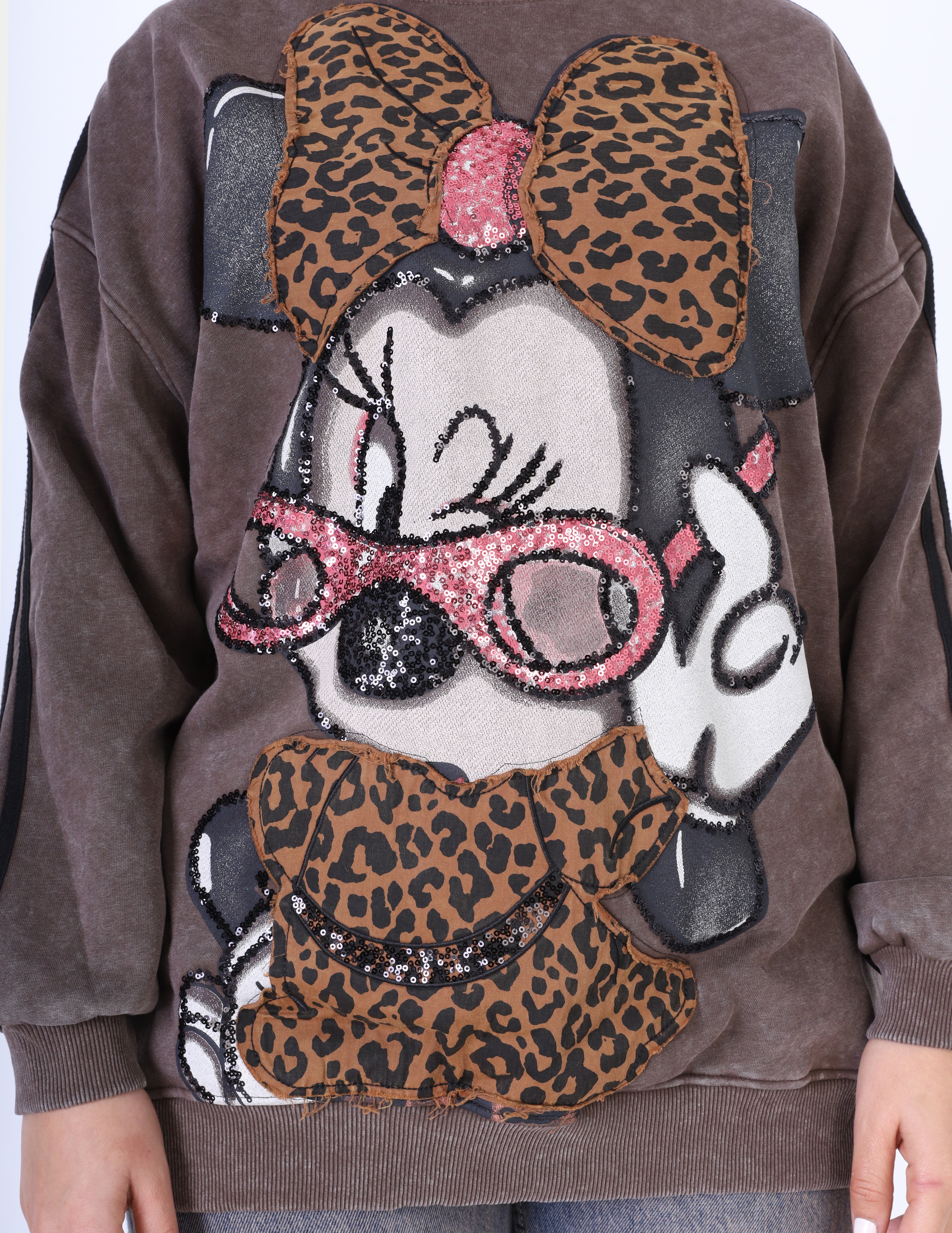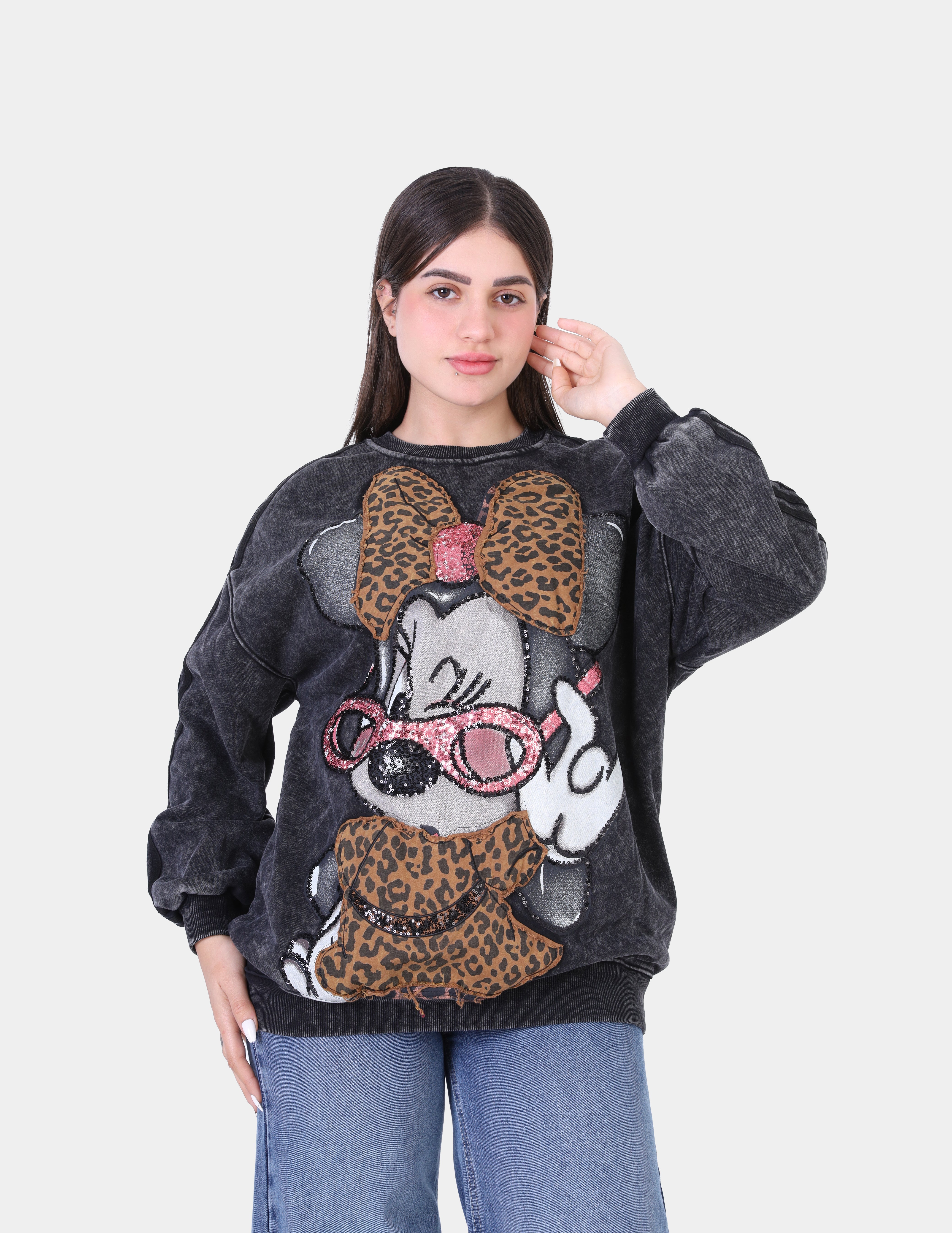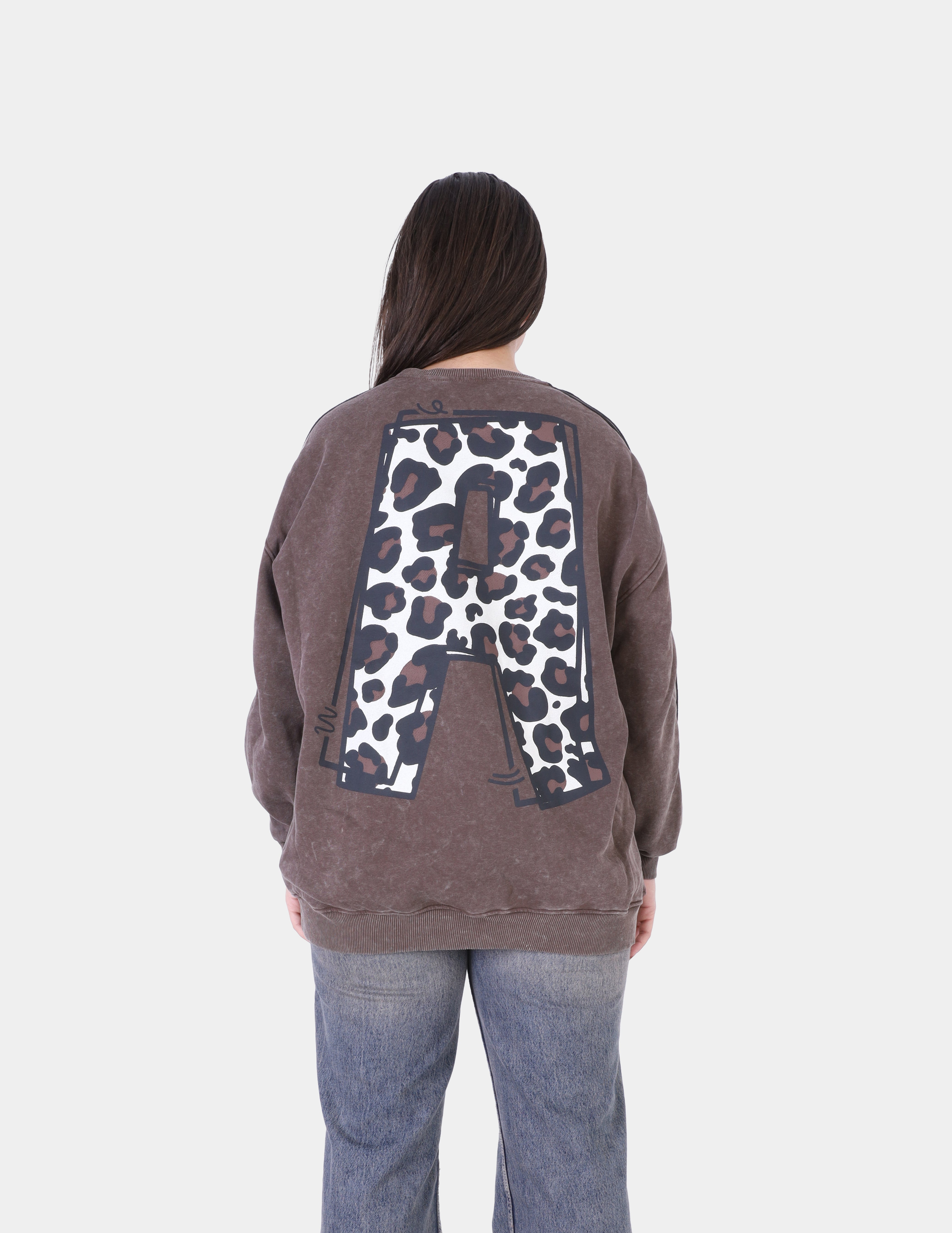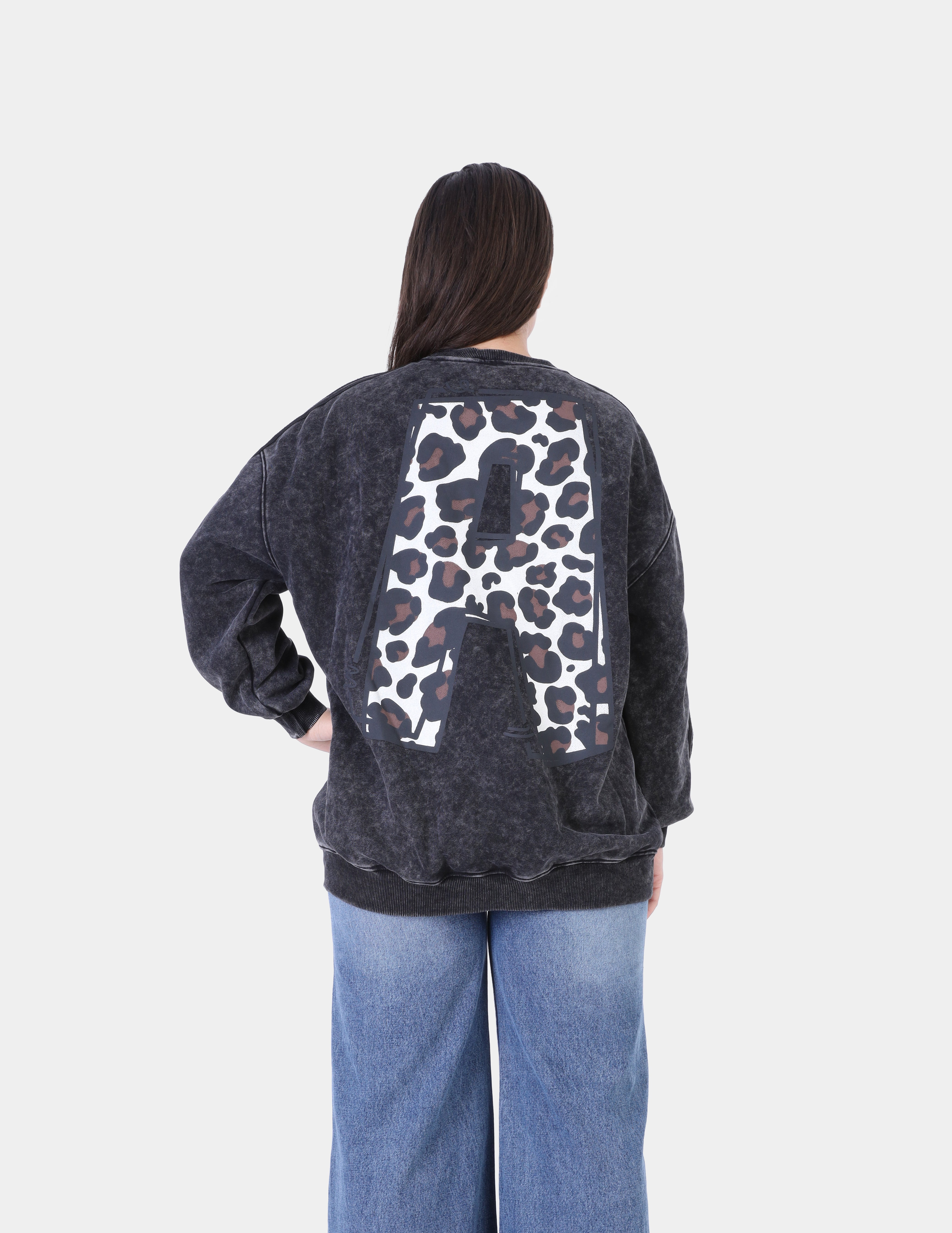 Leopard Patch Cartoon Graphic Oversized Sweatshirt w175472202