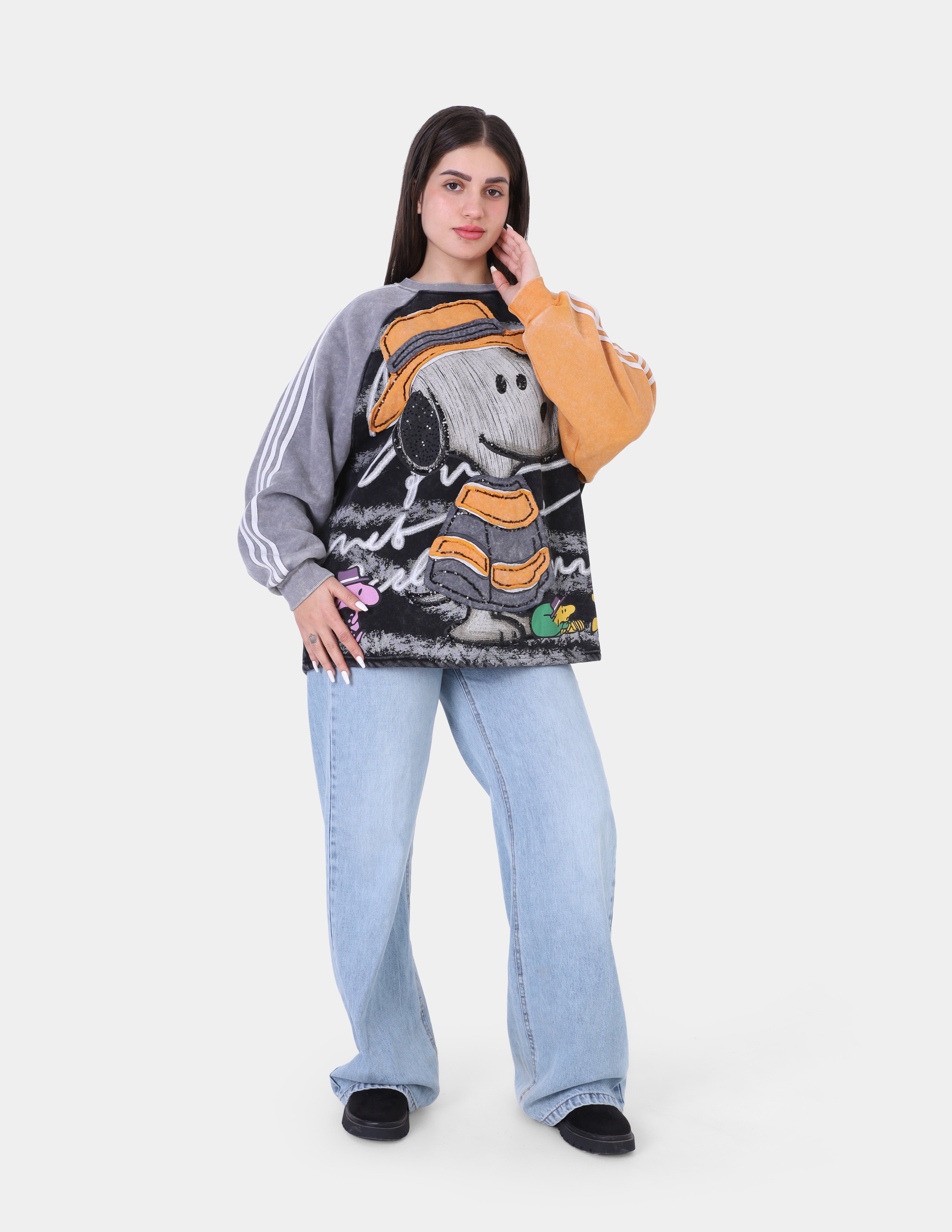 Patchwork Cartoon Dog Graphic Oversized Sweatshirt w175480128
