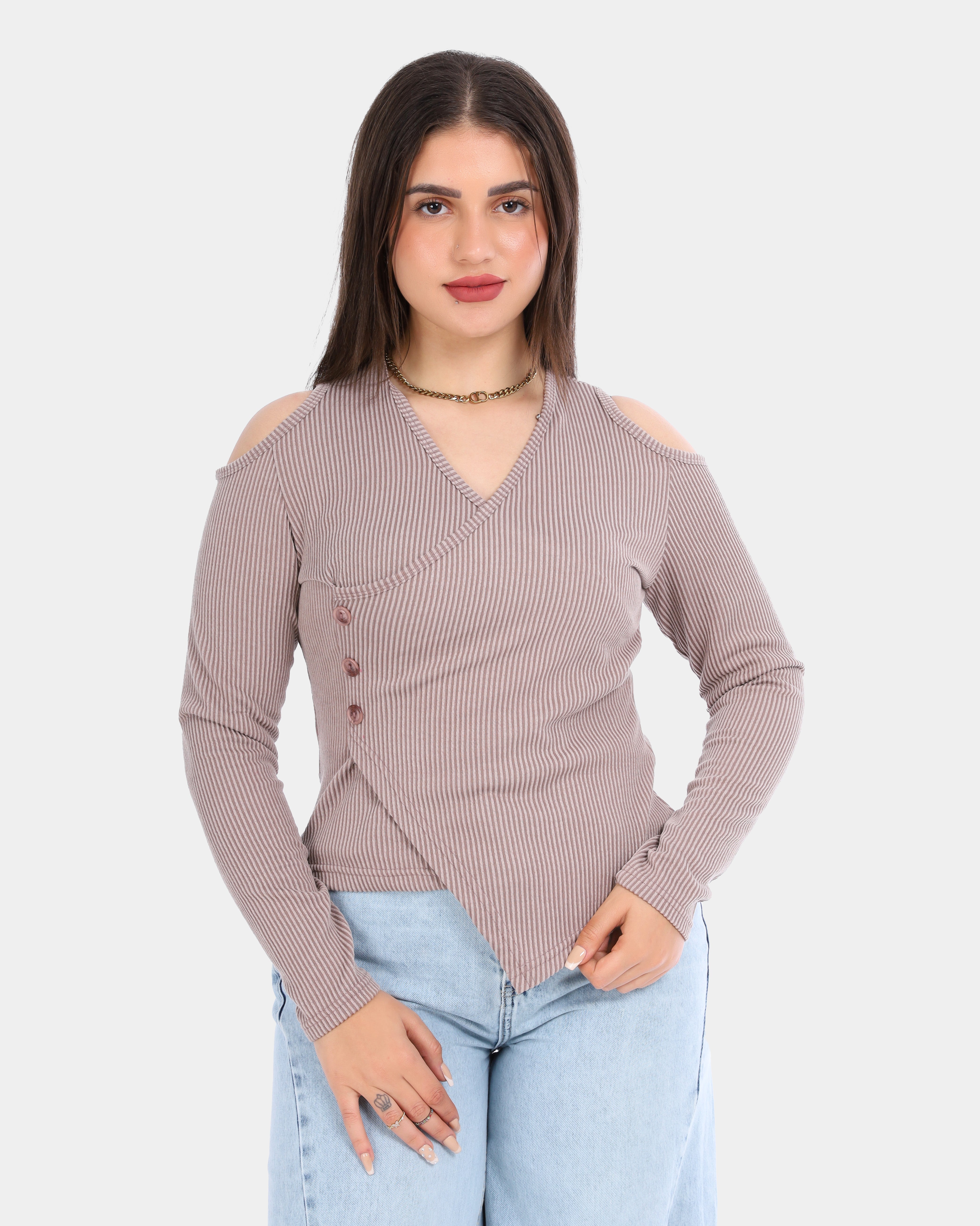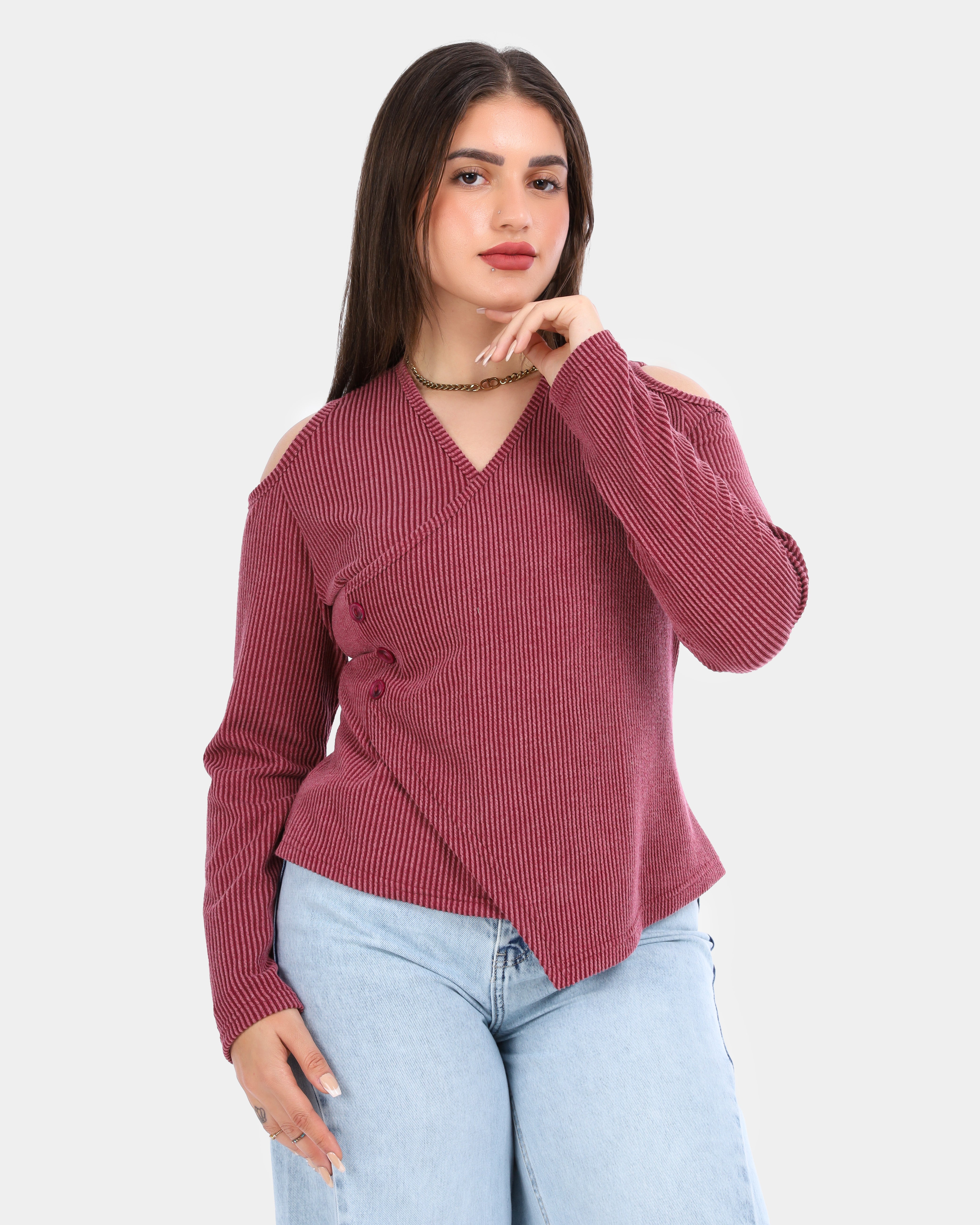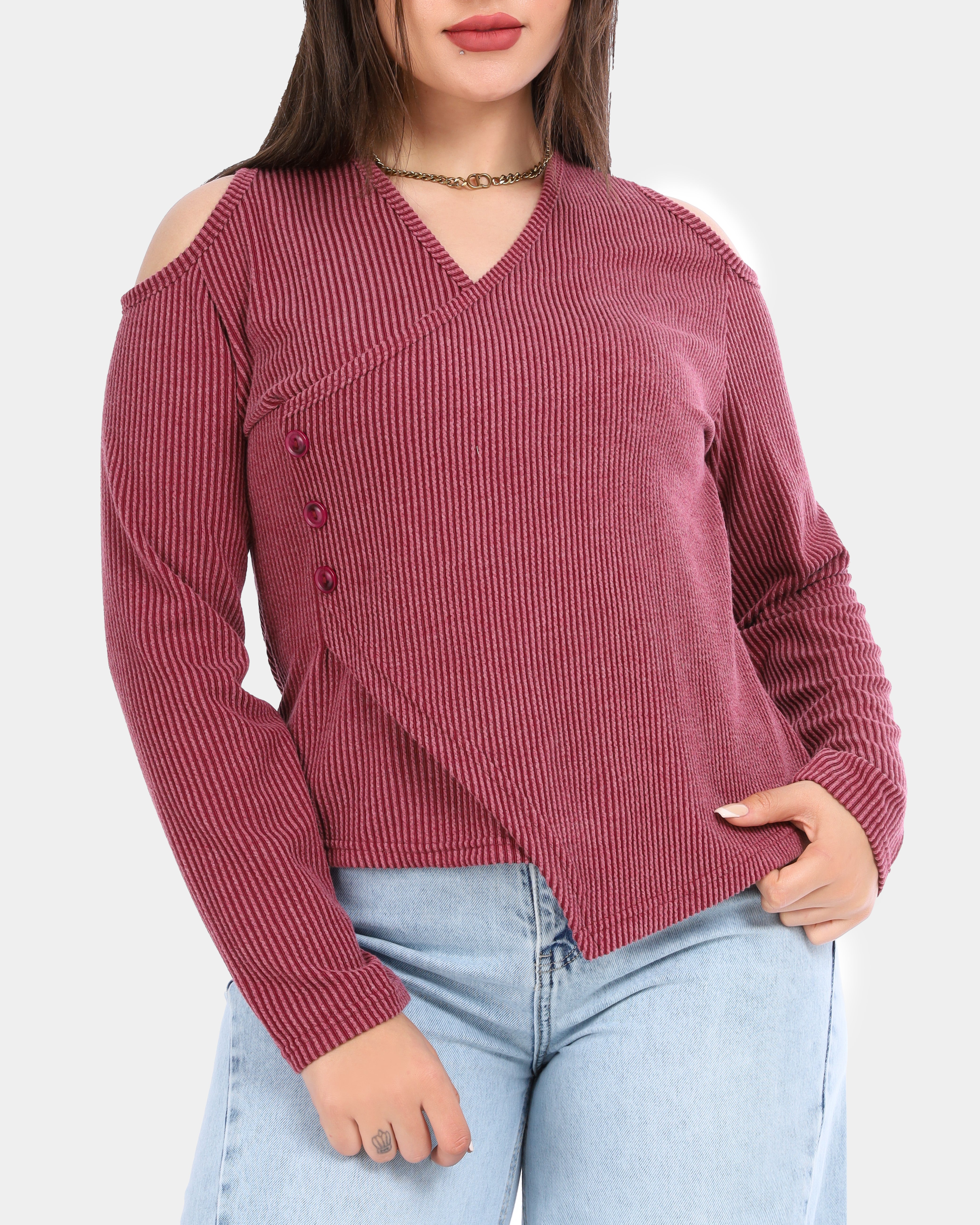 Ribbed Cold Shoulder Wrap Top 2003/011