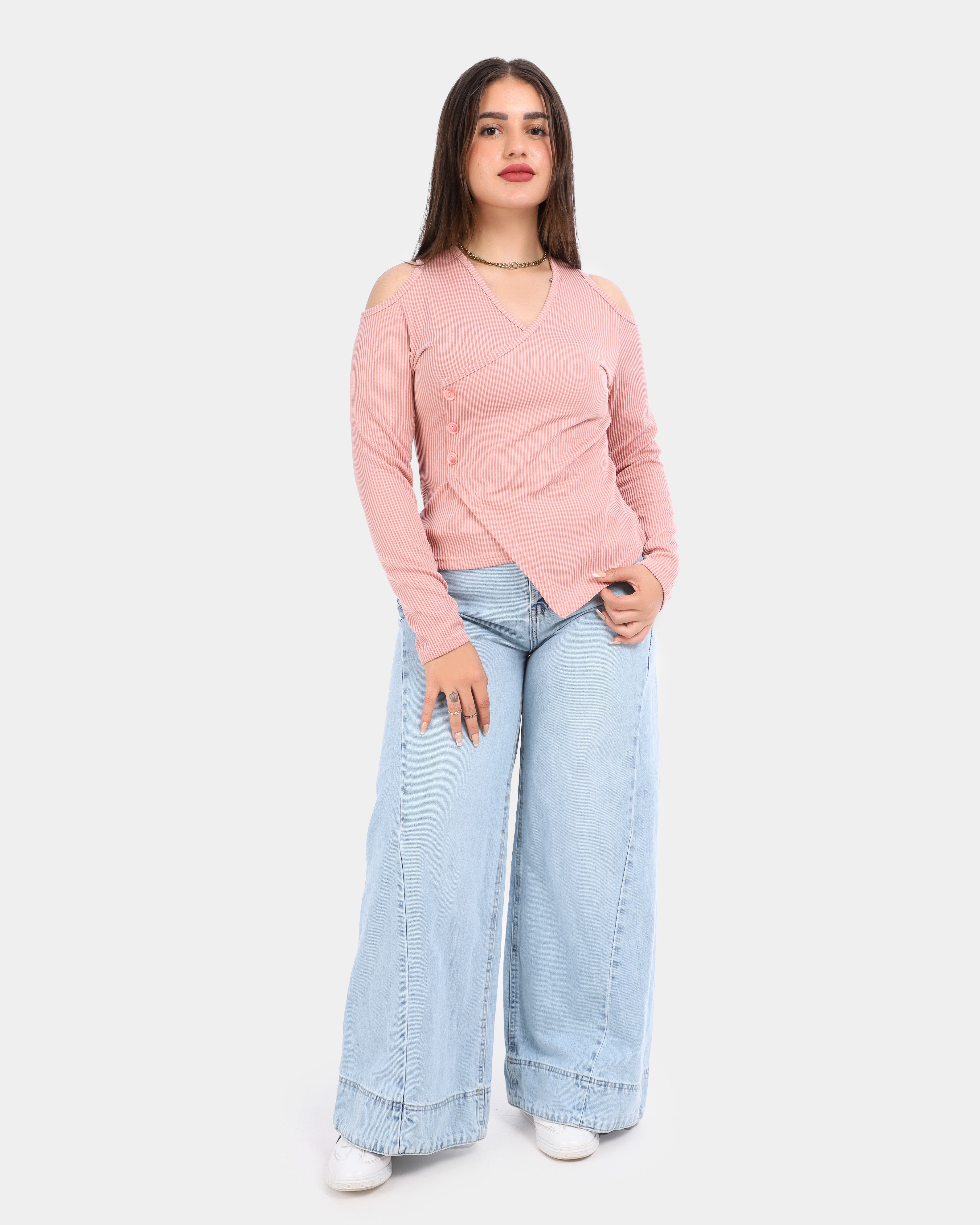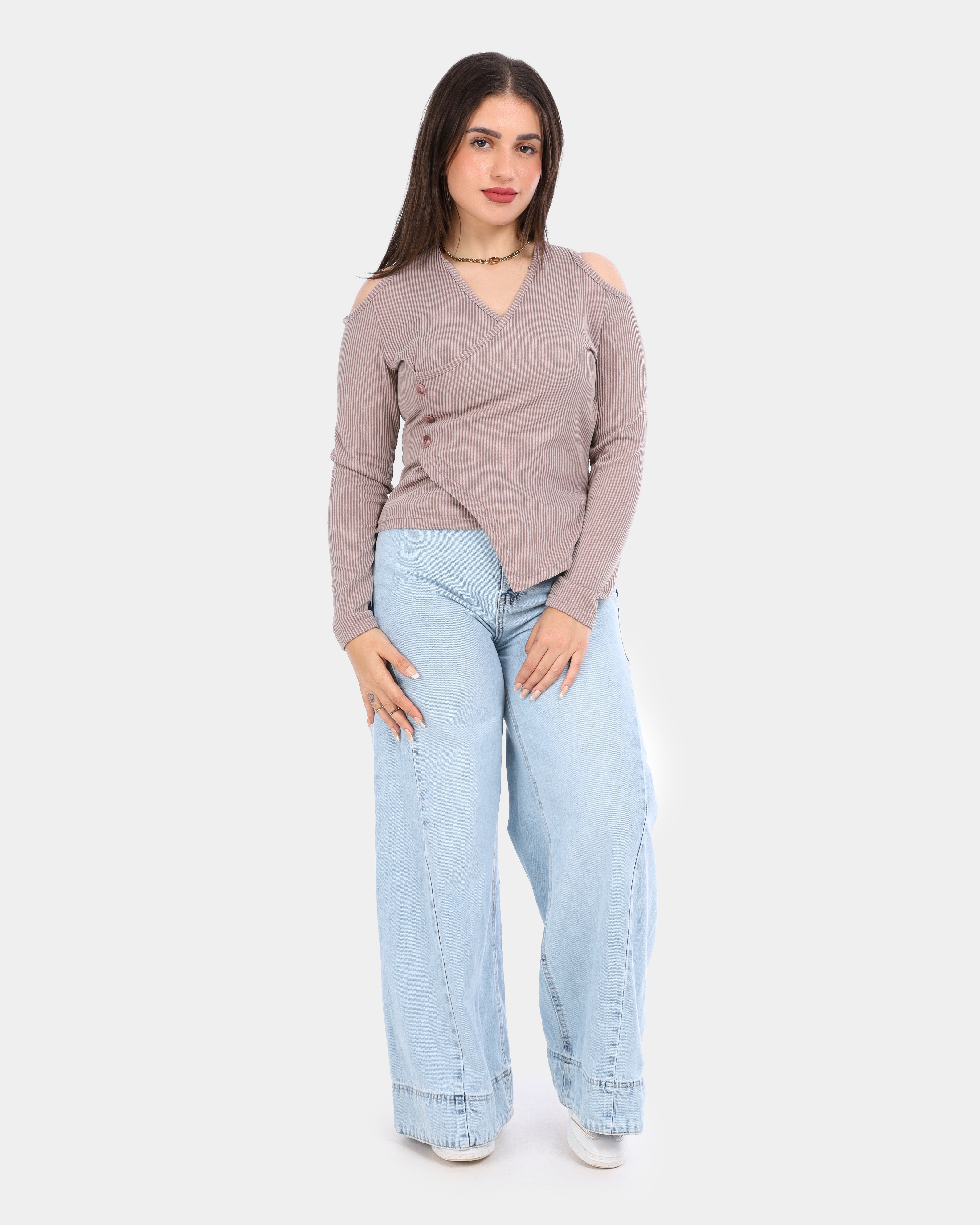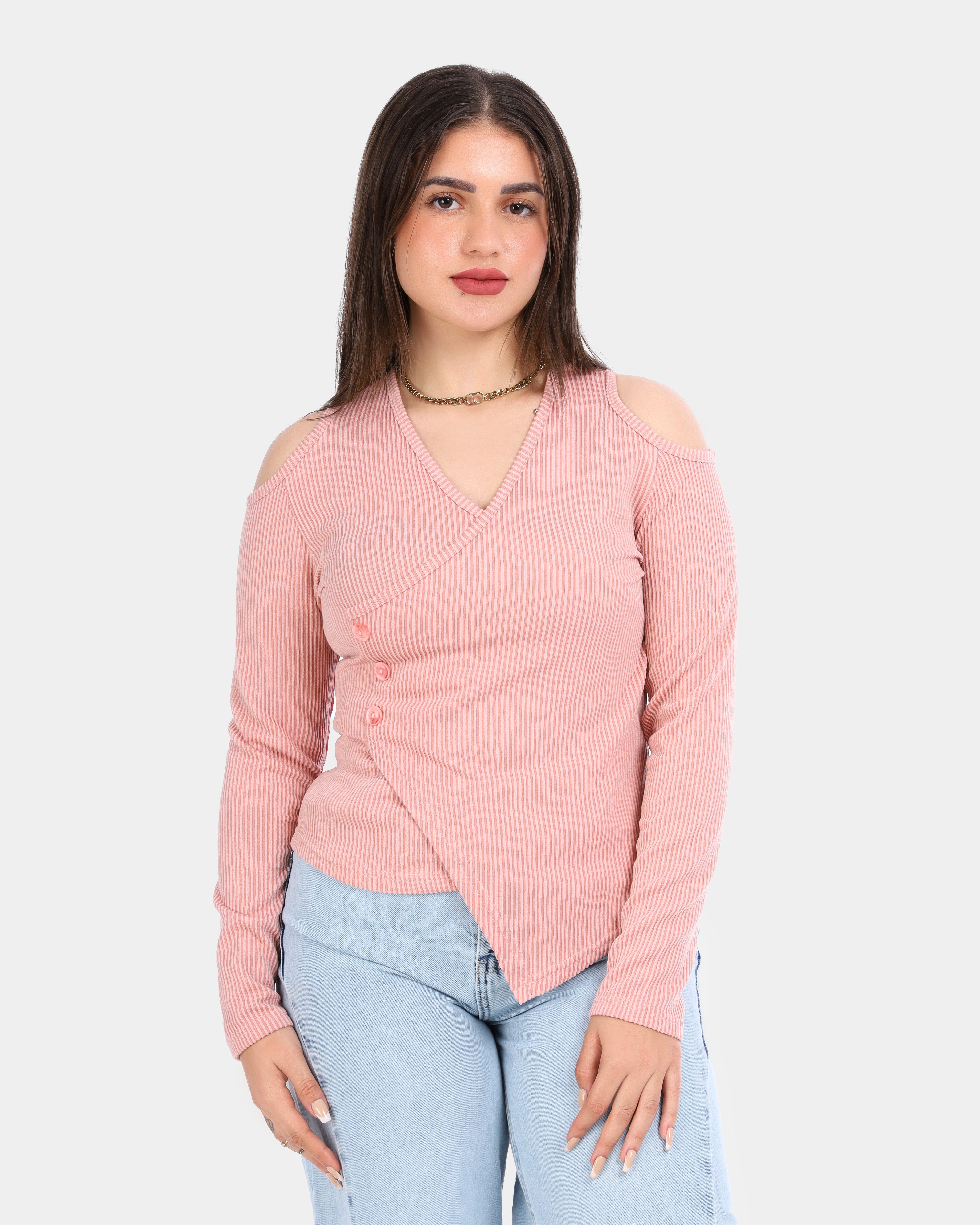 Ribbed Cold Shoulder Wrap Top 2003/011