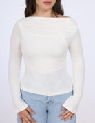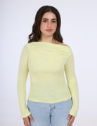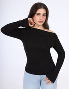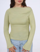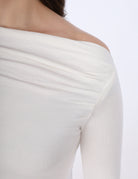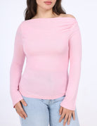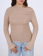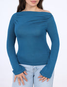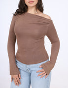 Simple and elegant one-shoulder top with long sleeves and a soft, fitted design