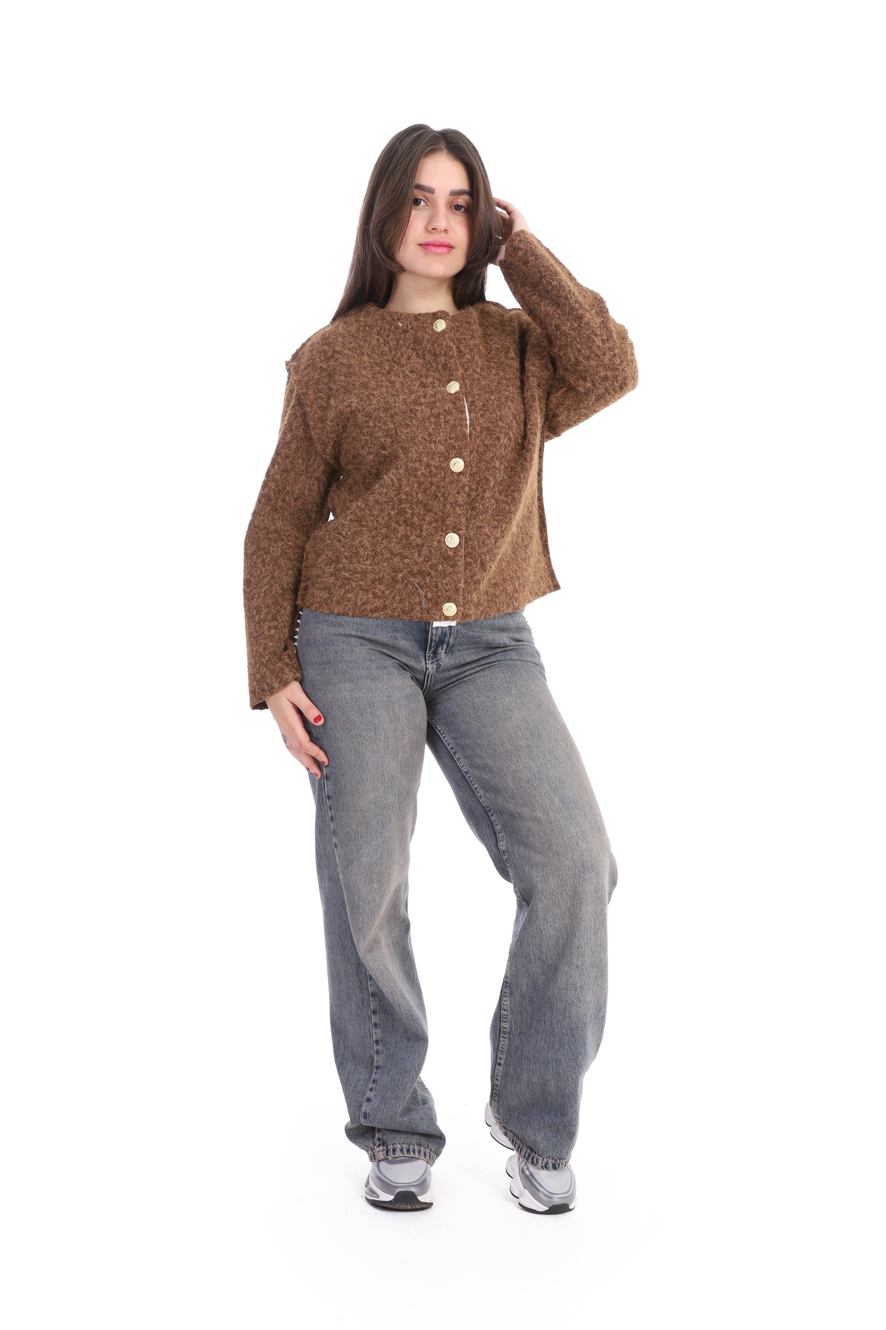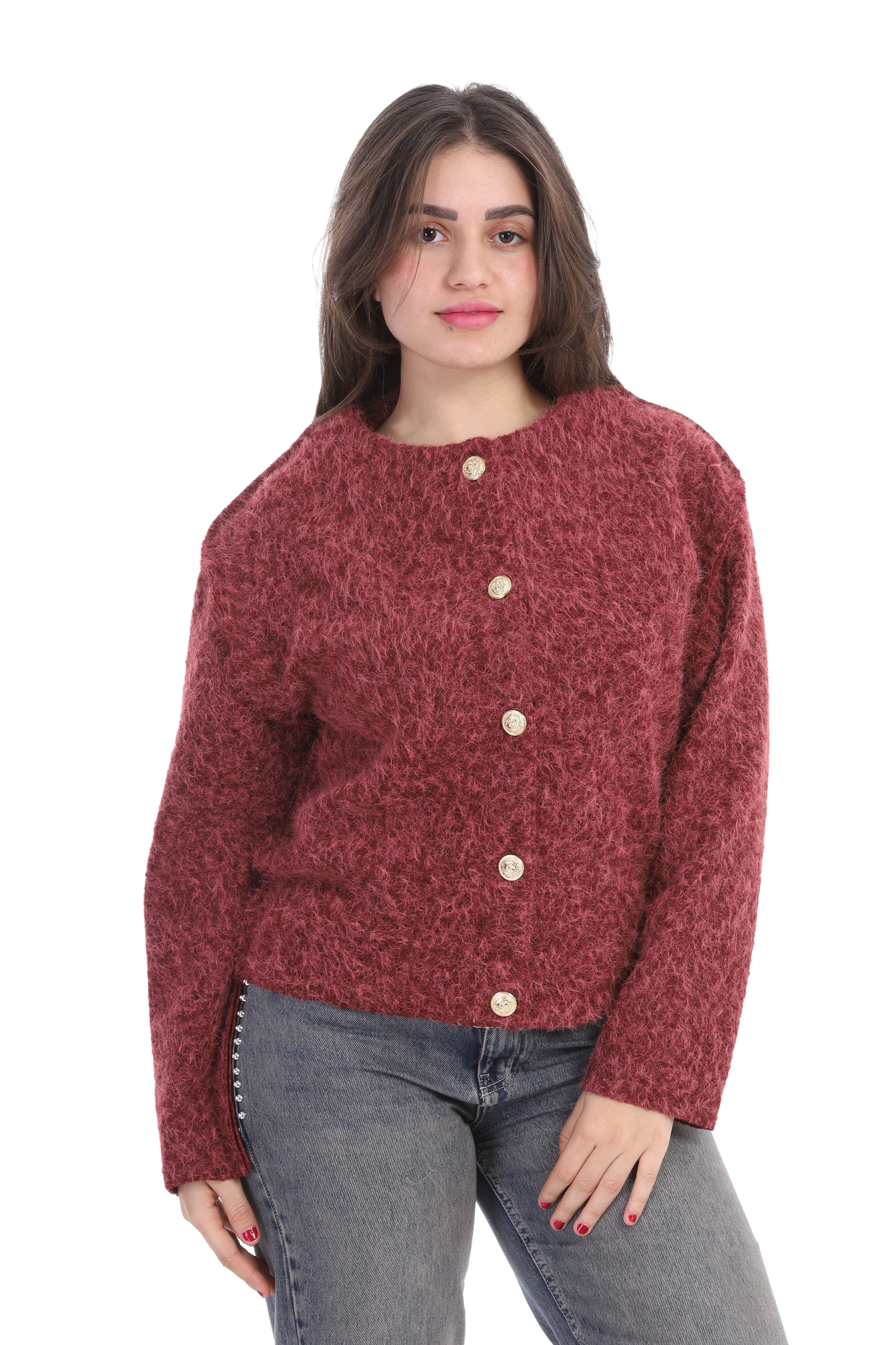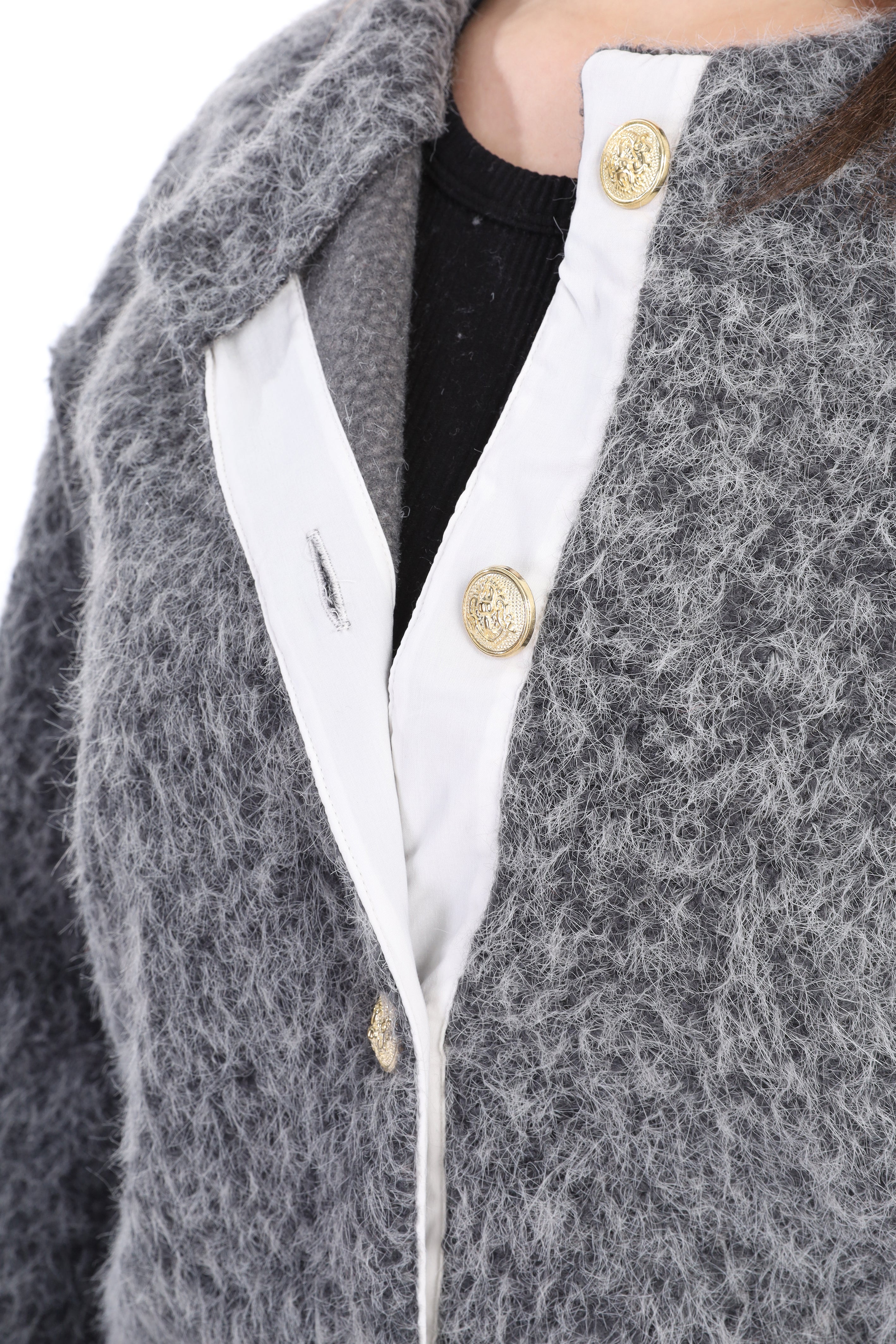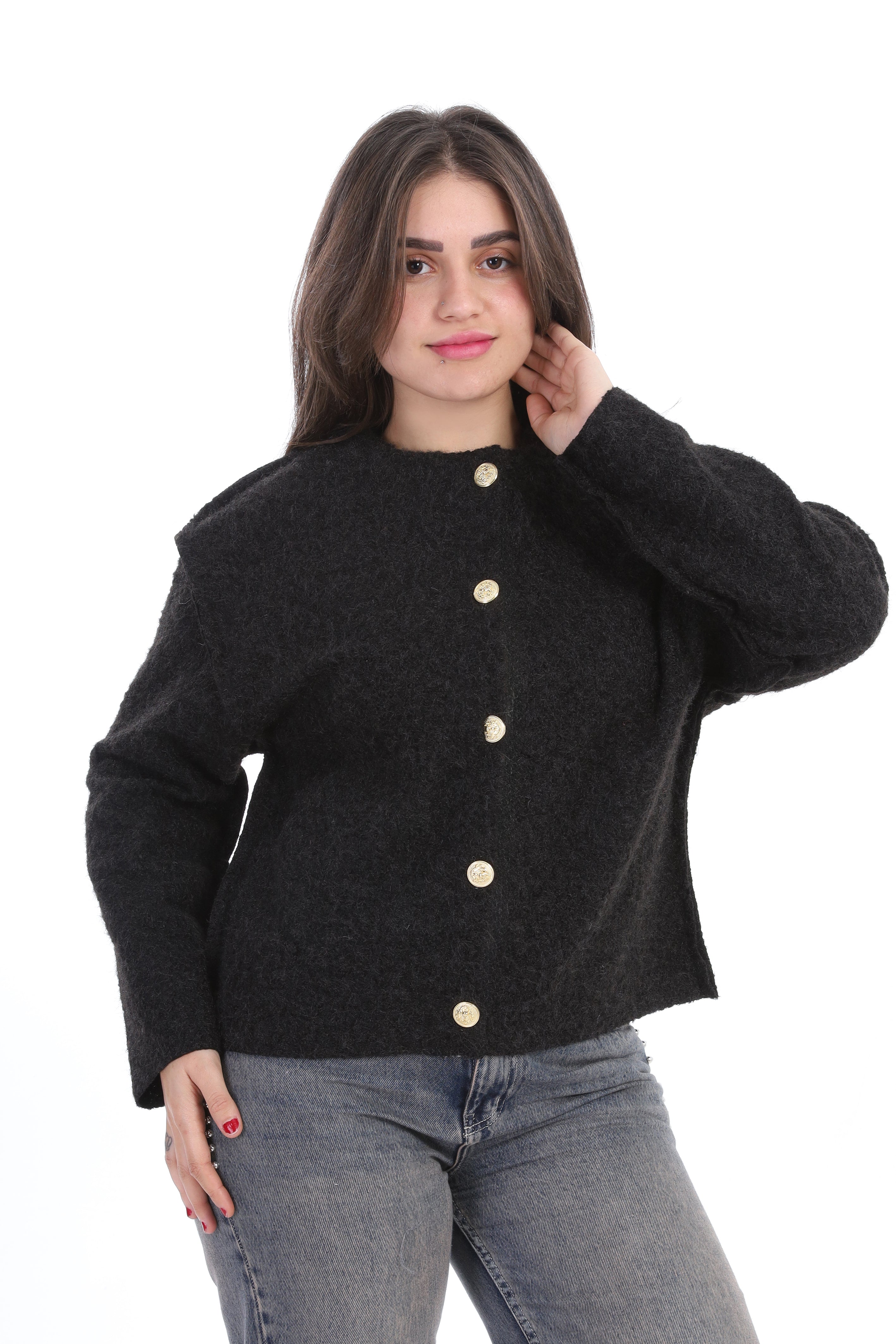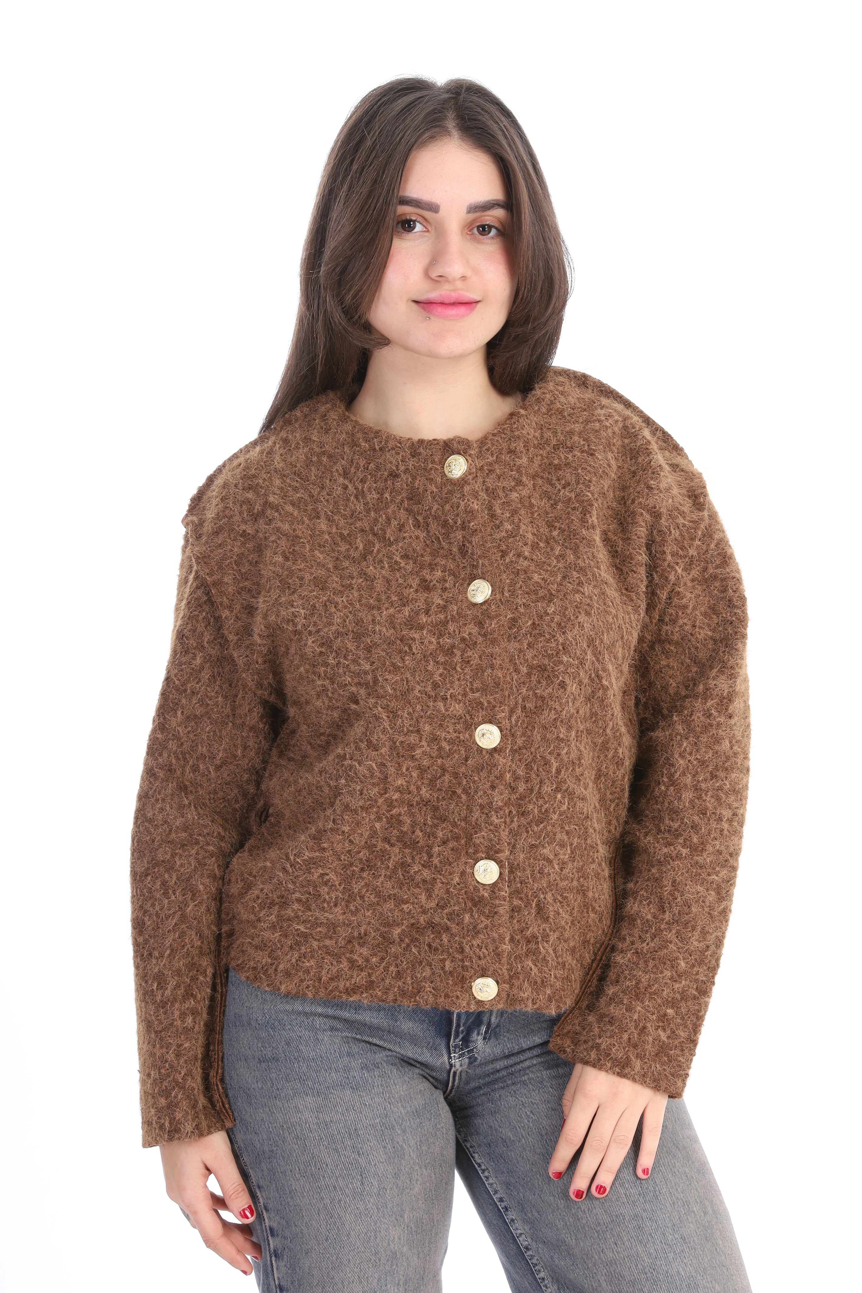 Textured Bouclé Wool Jacket with Front Buttons w1627/267