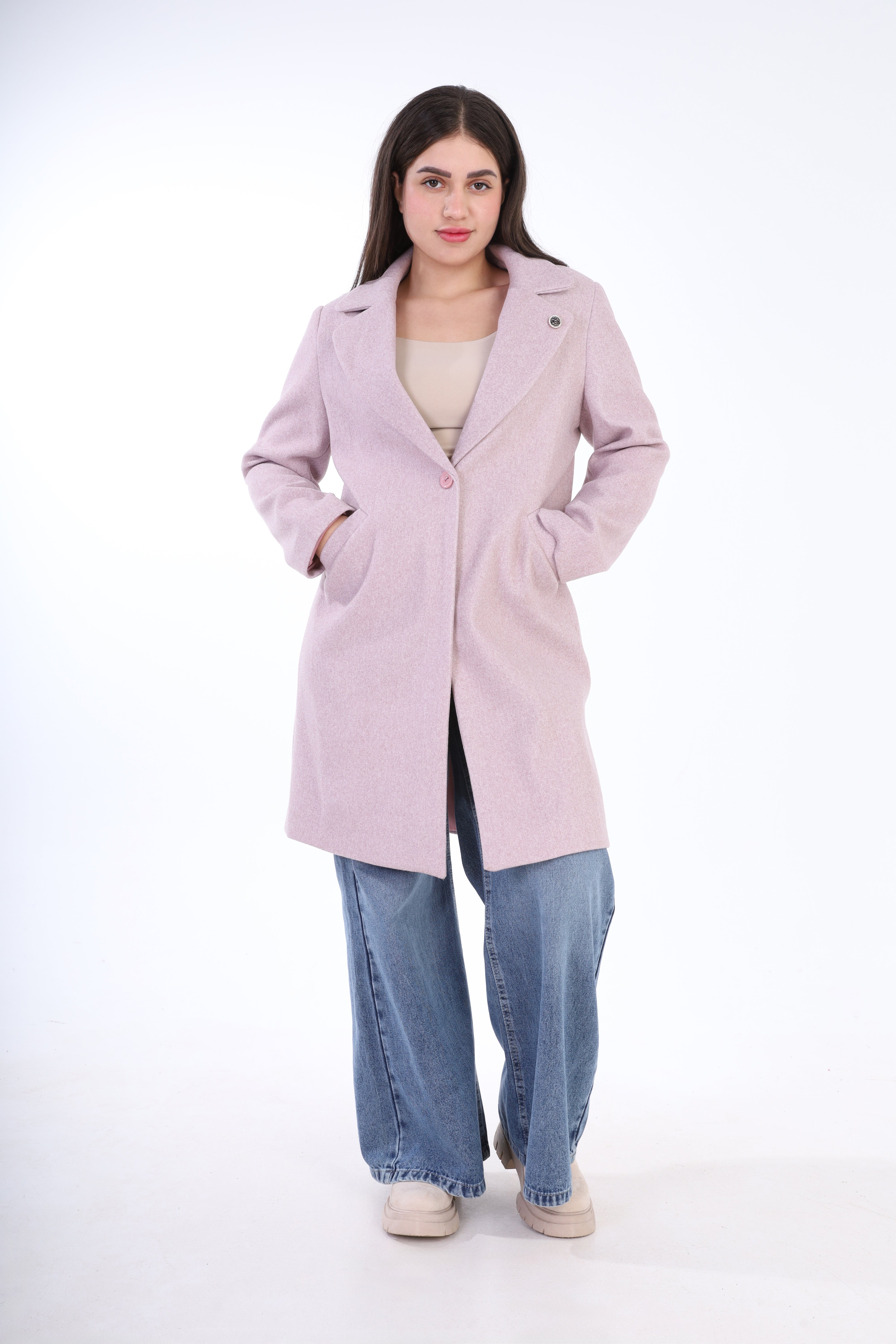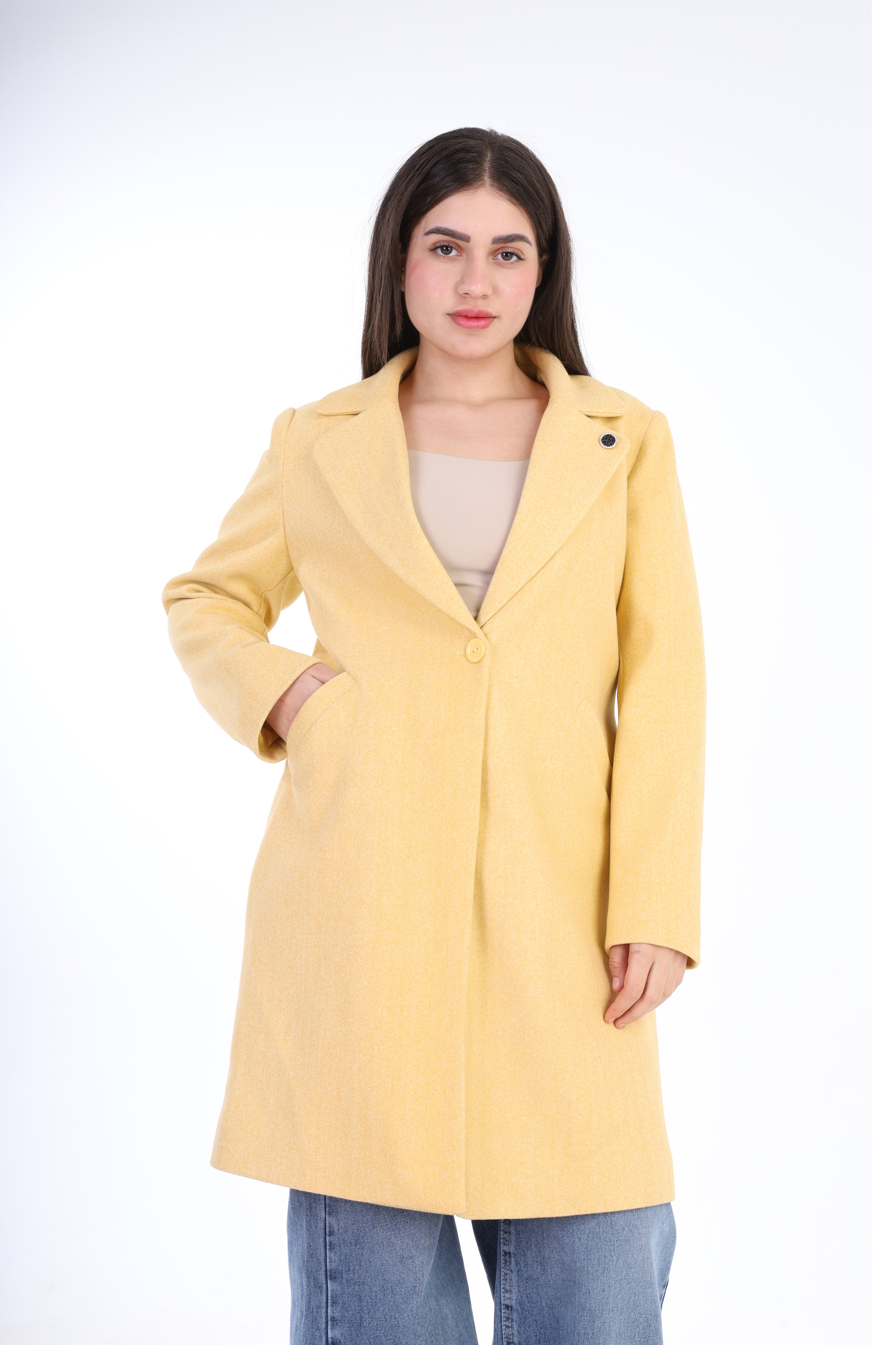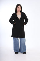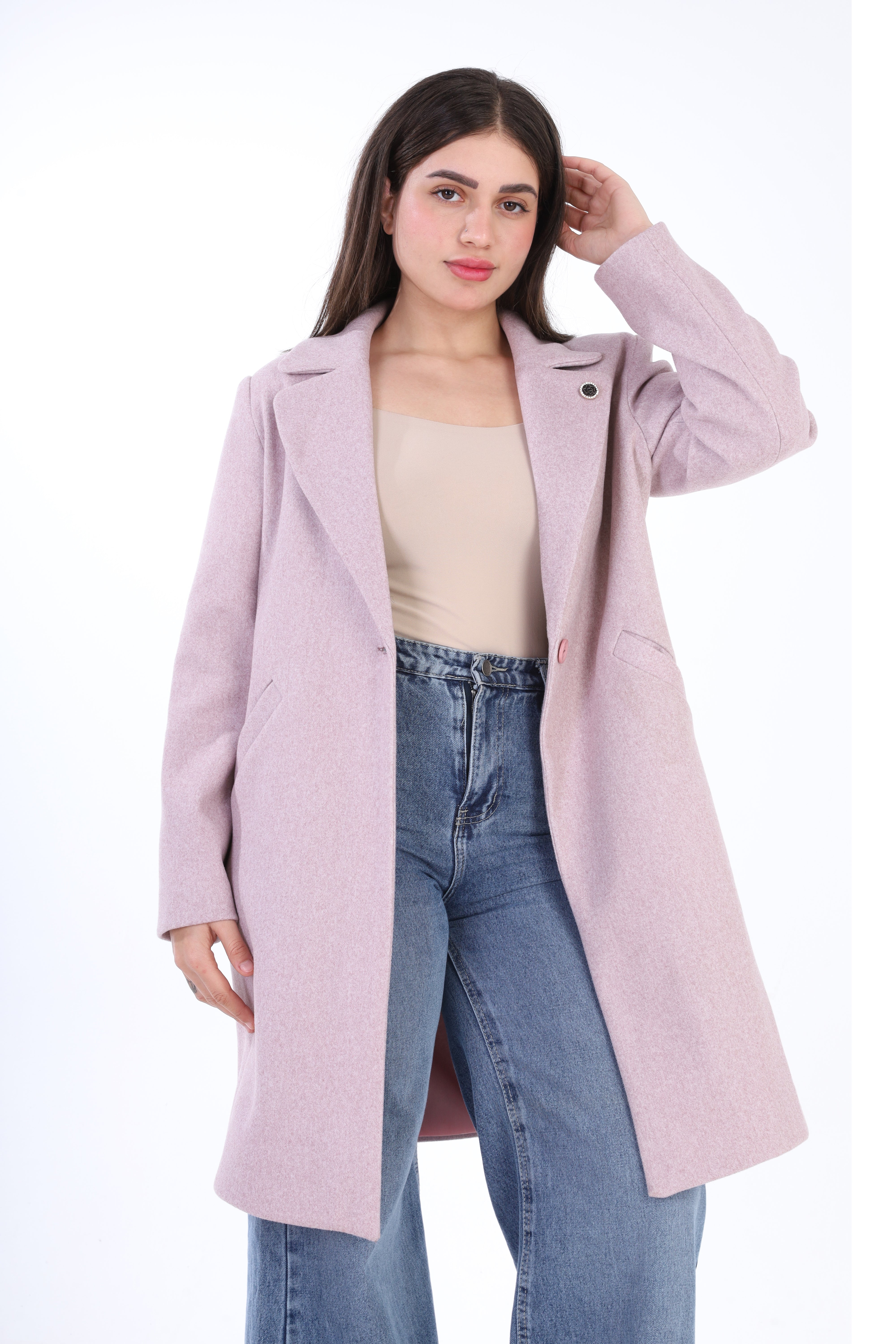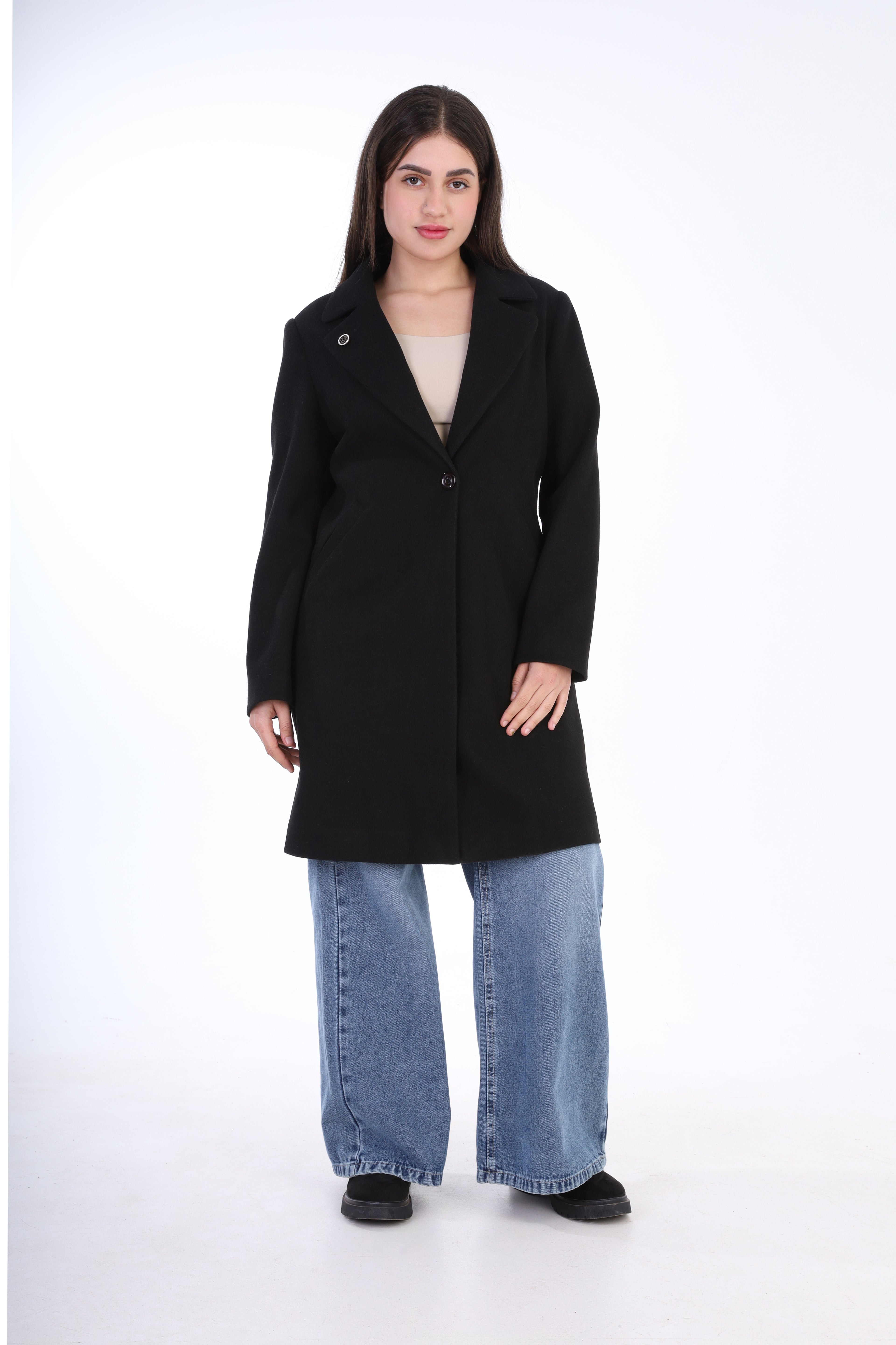 Longline coat with a tailored fit, classic lapel collar, and single-button closure