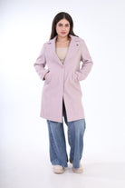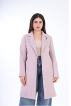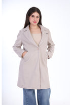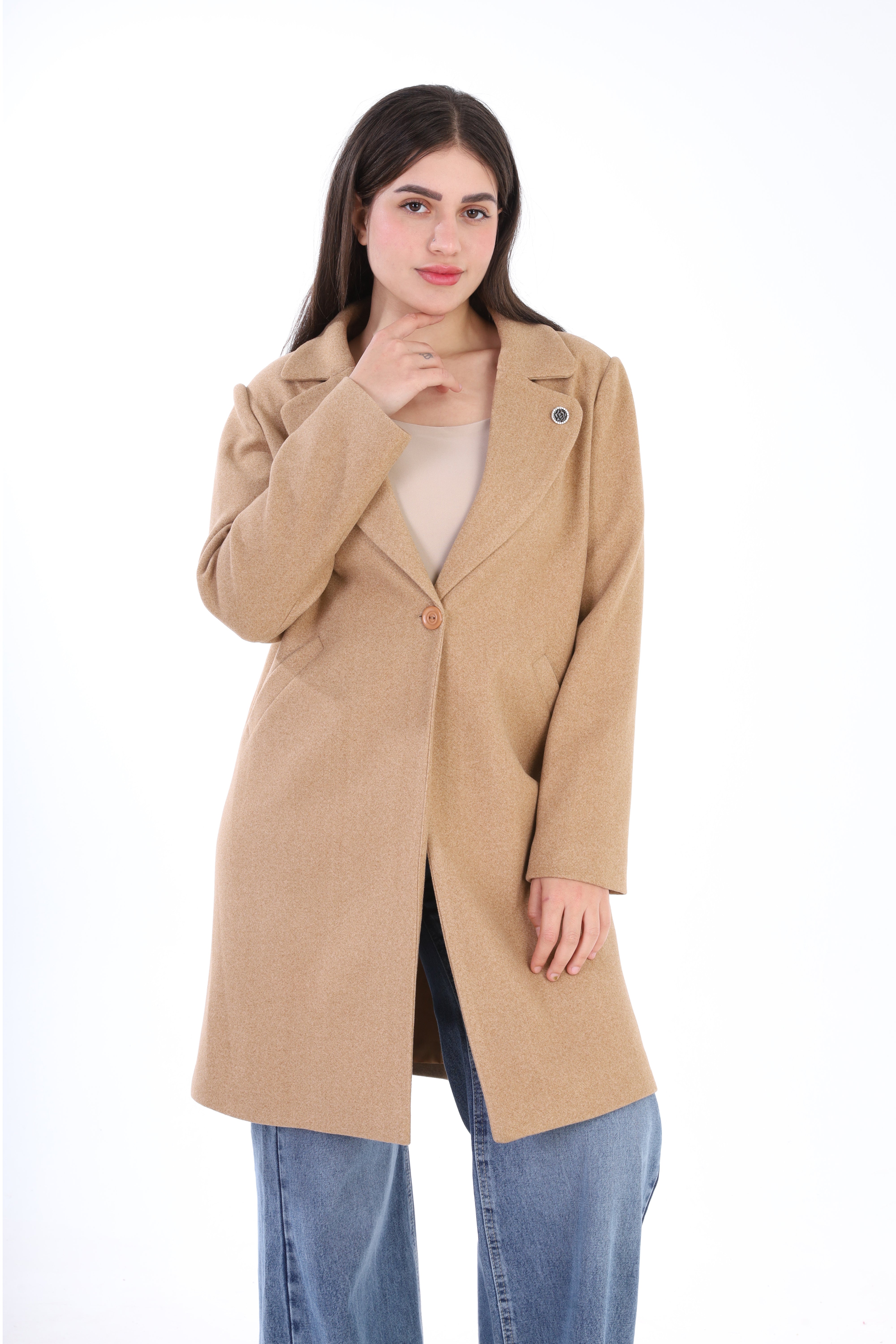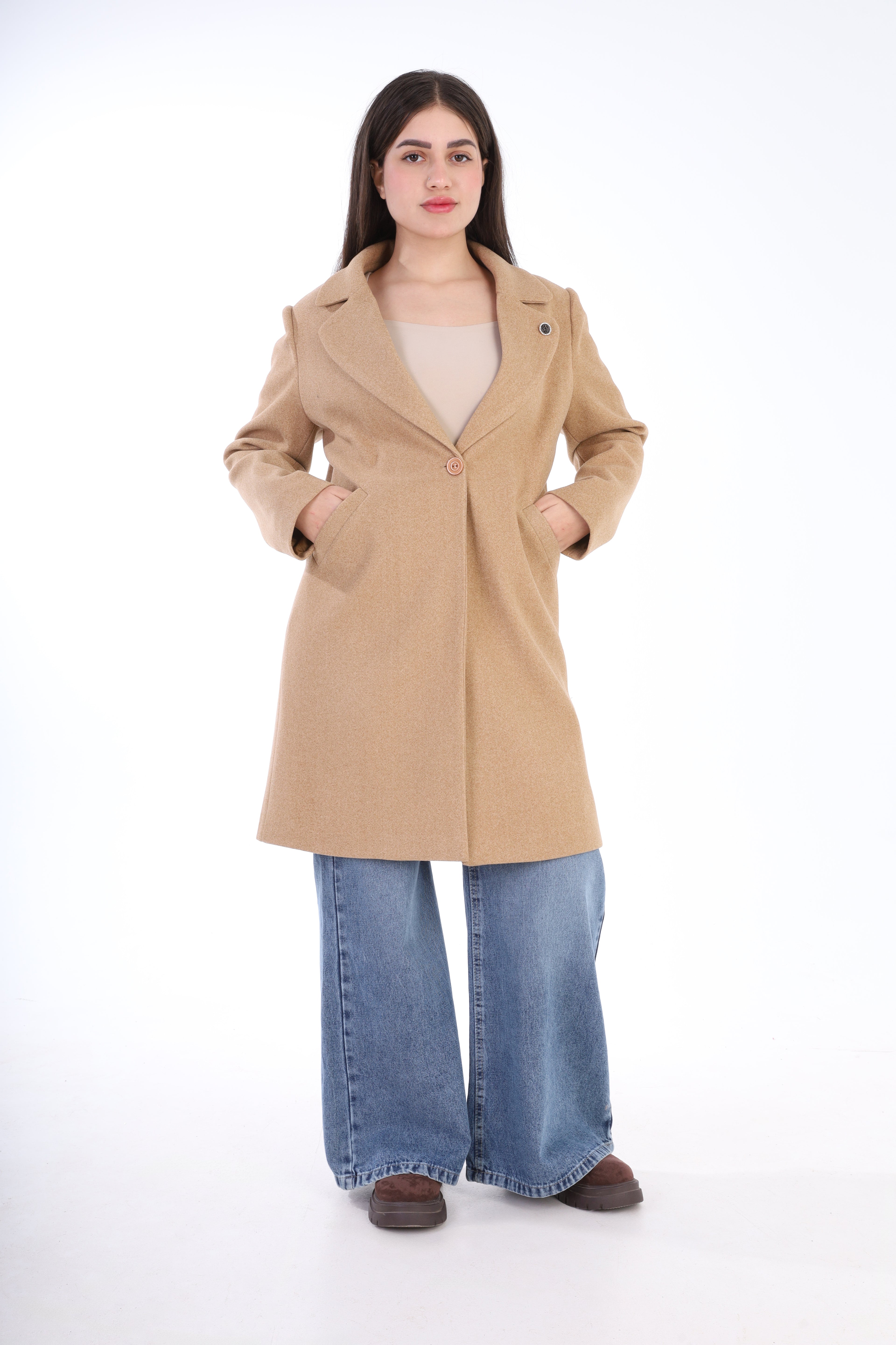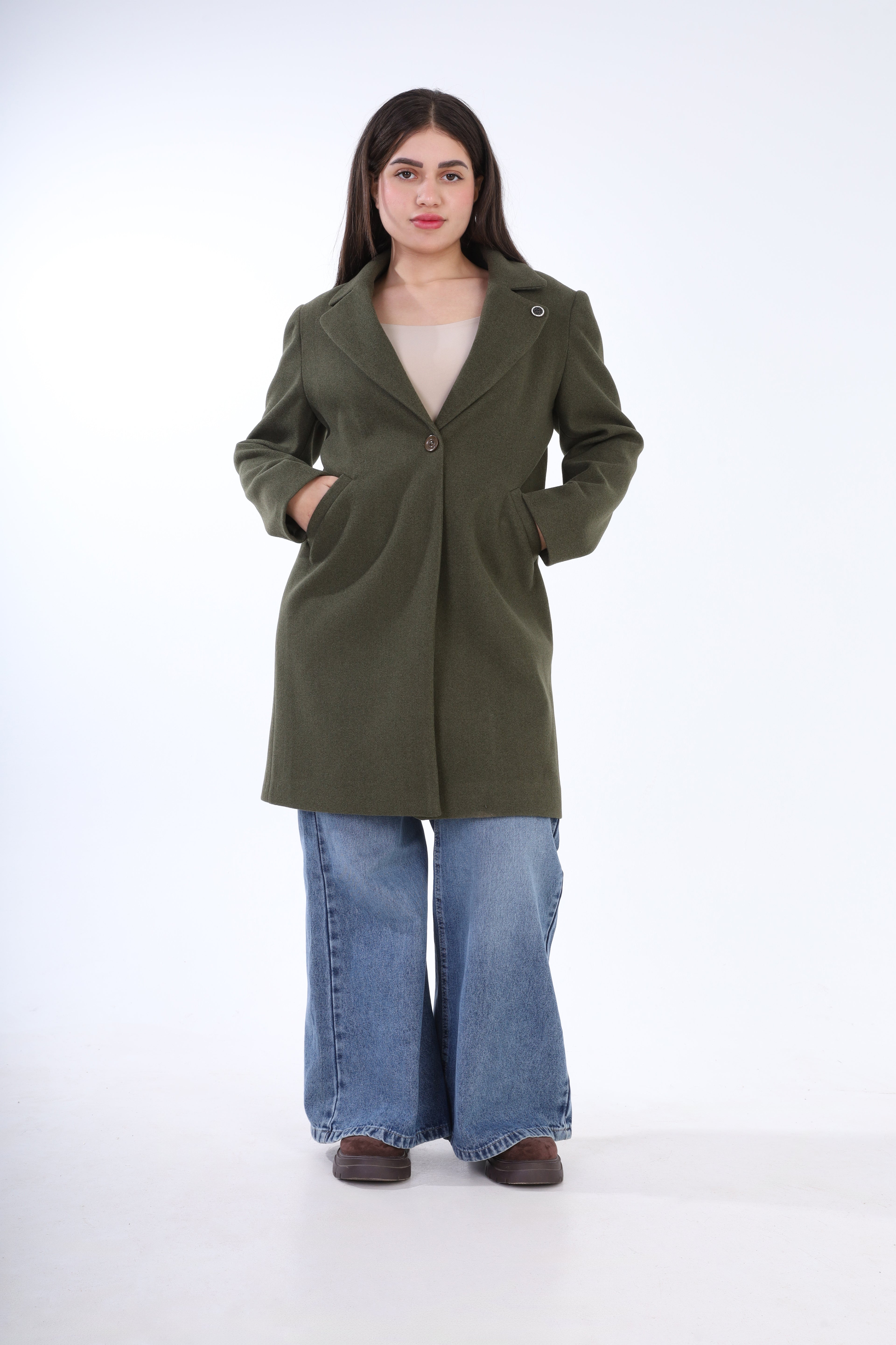 Longline coat with a tailored fit, classic lapel collar, and single-button closure