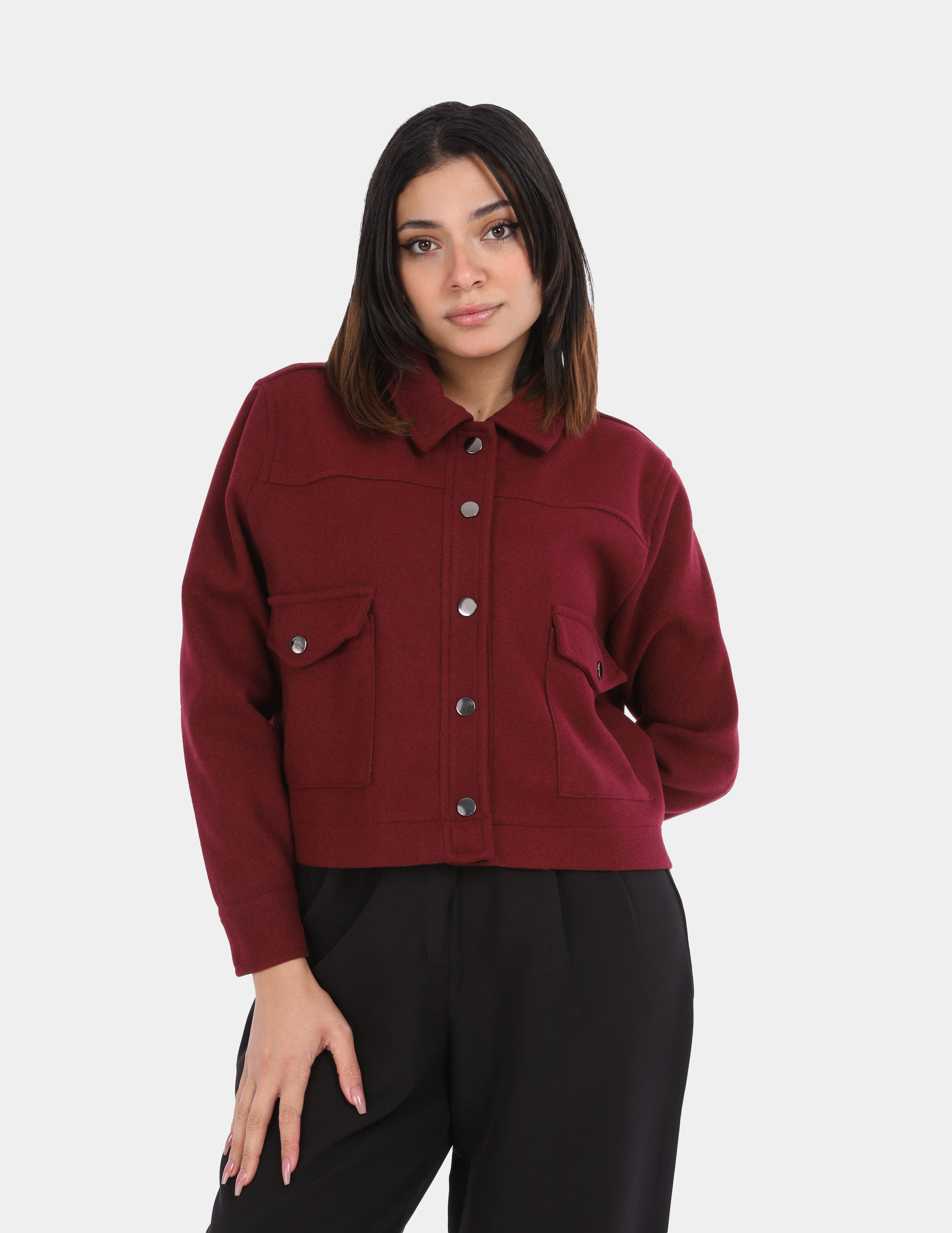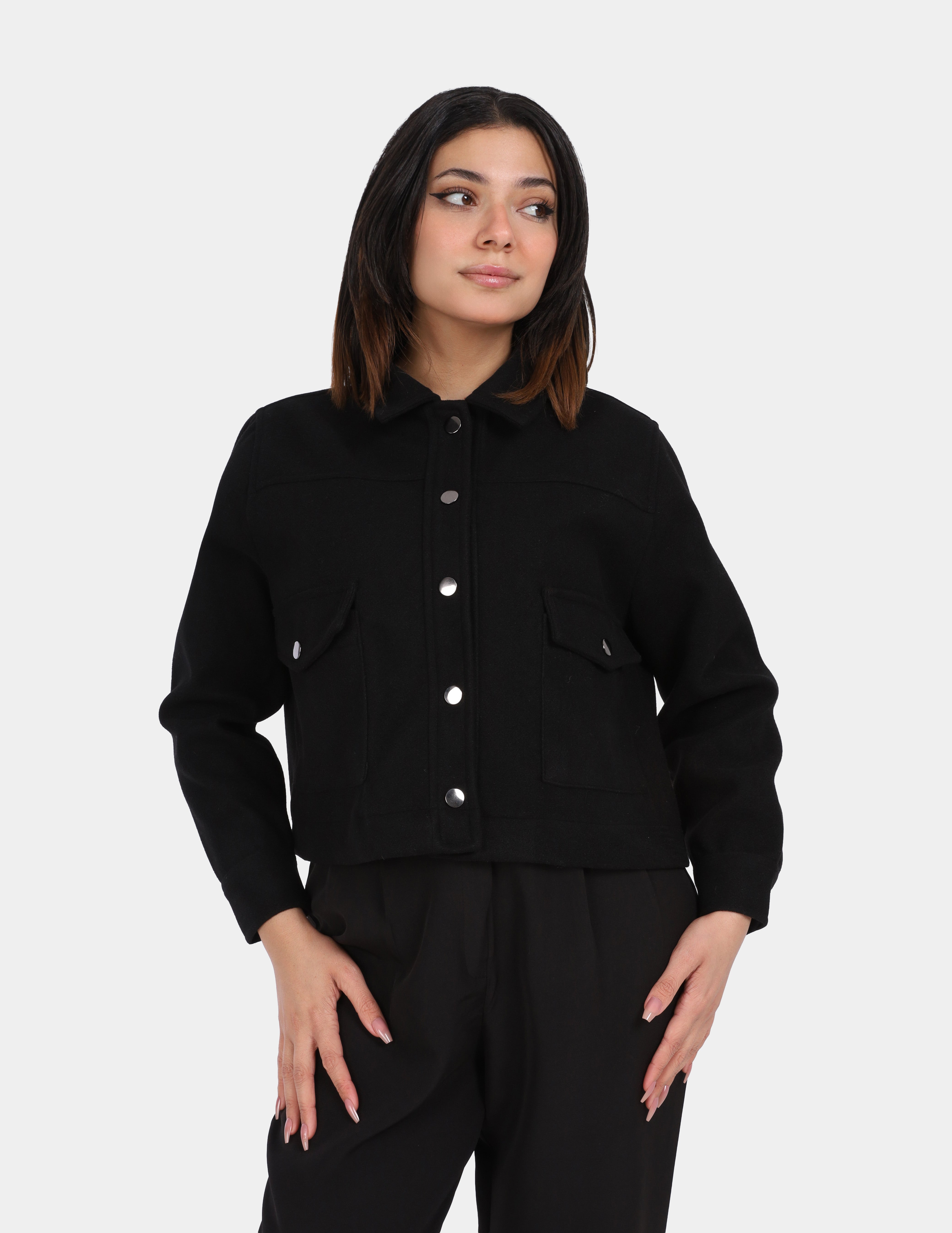 Cropped Wool Jacket with Shiny Front Buttons w1631/318