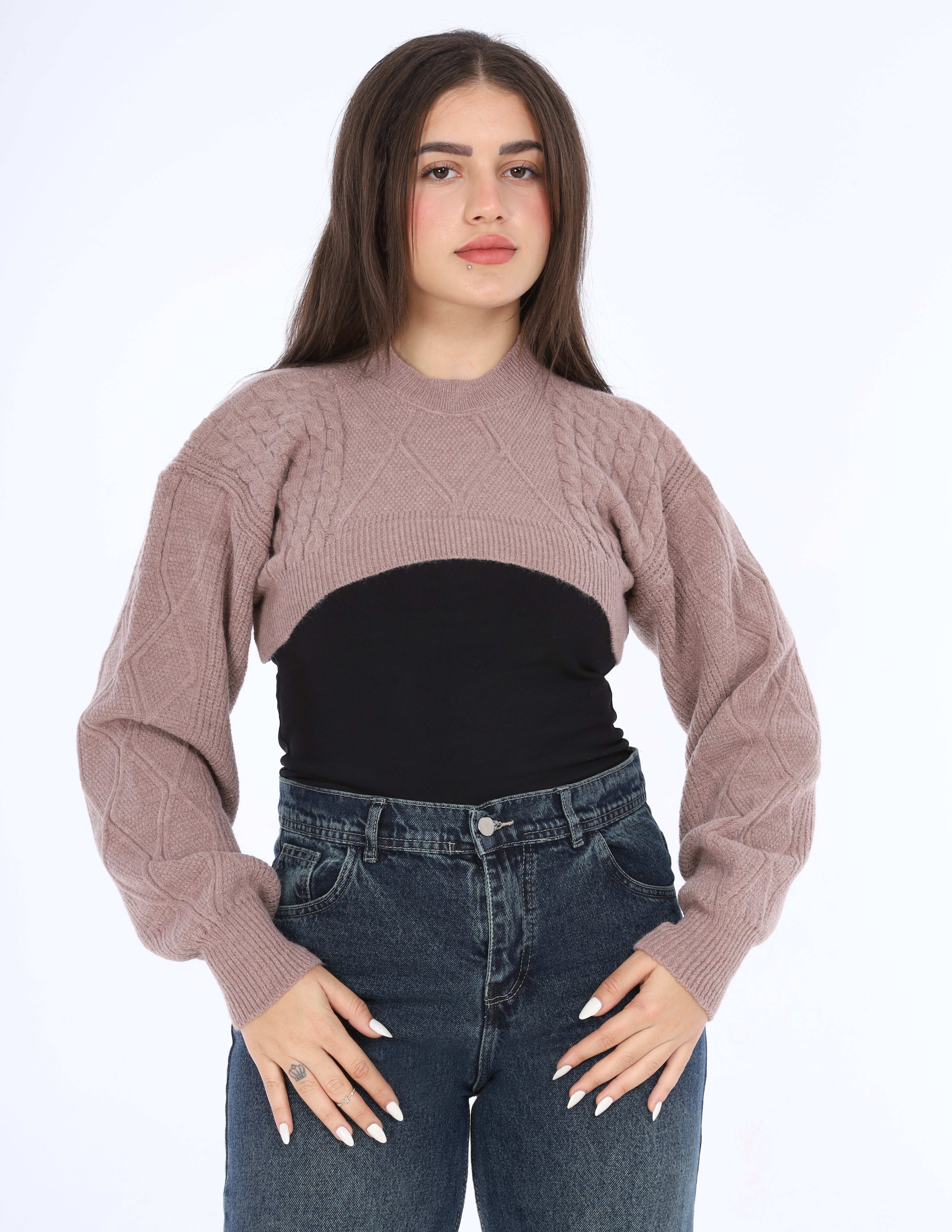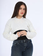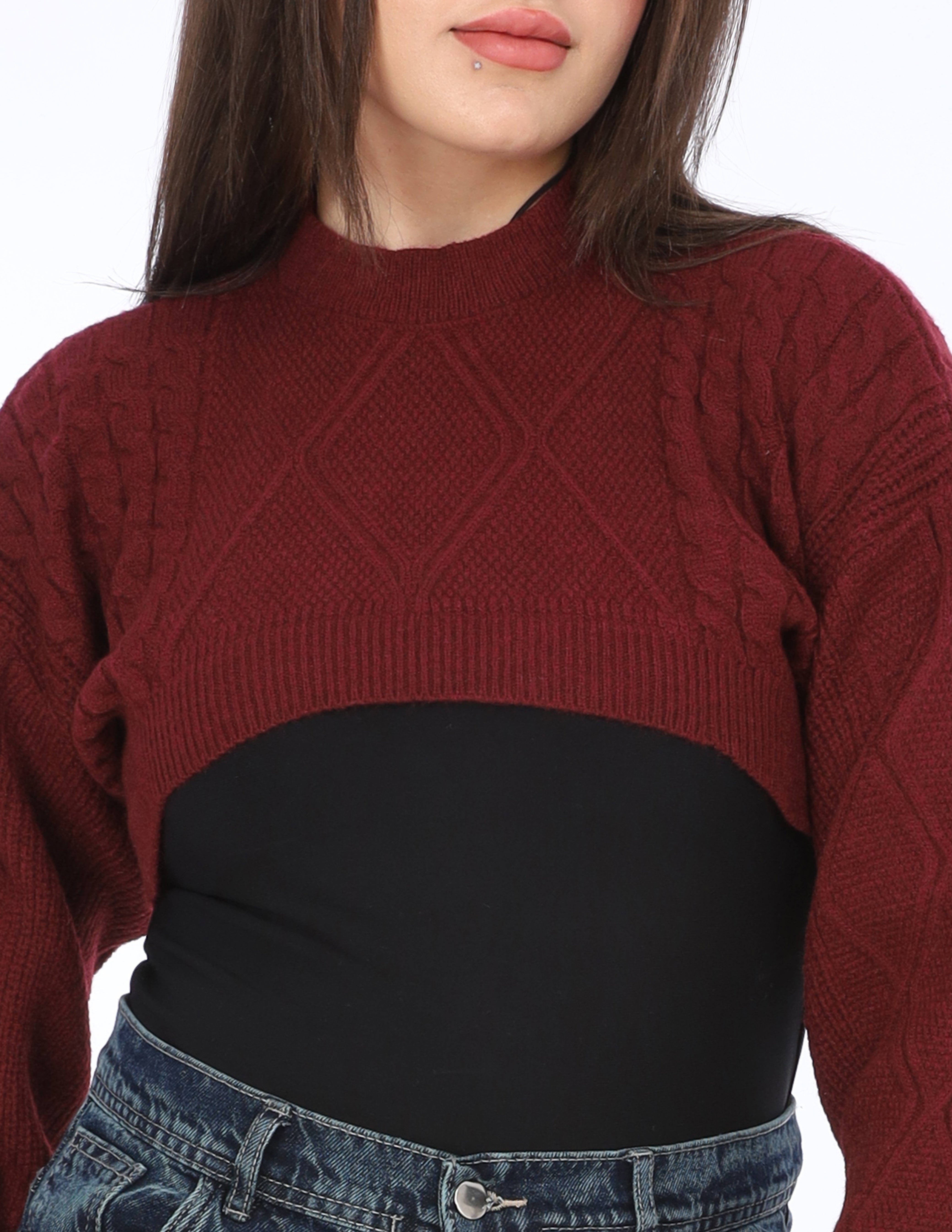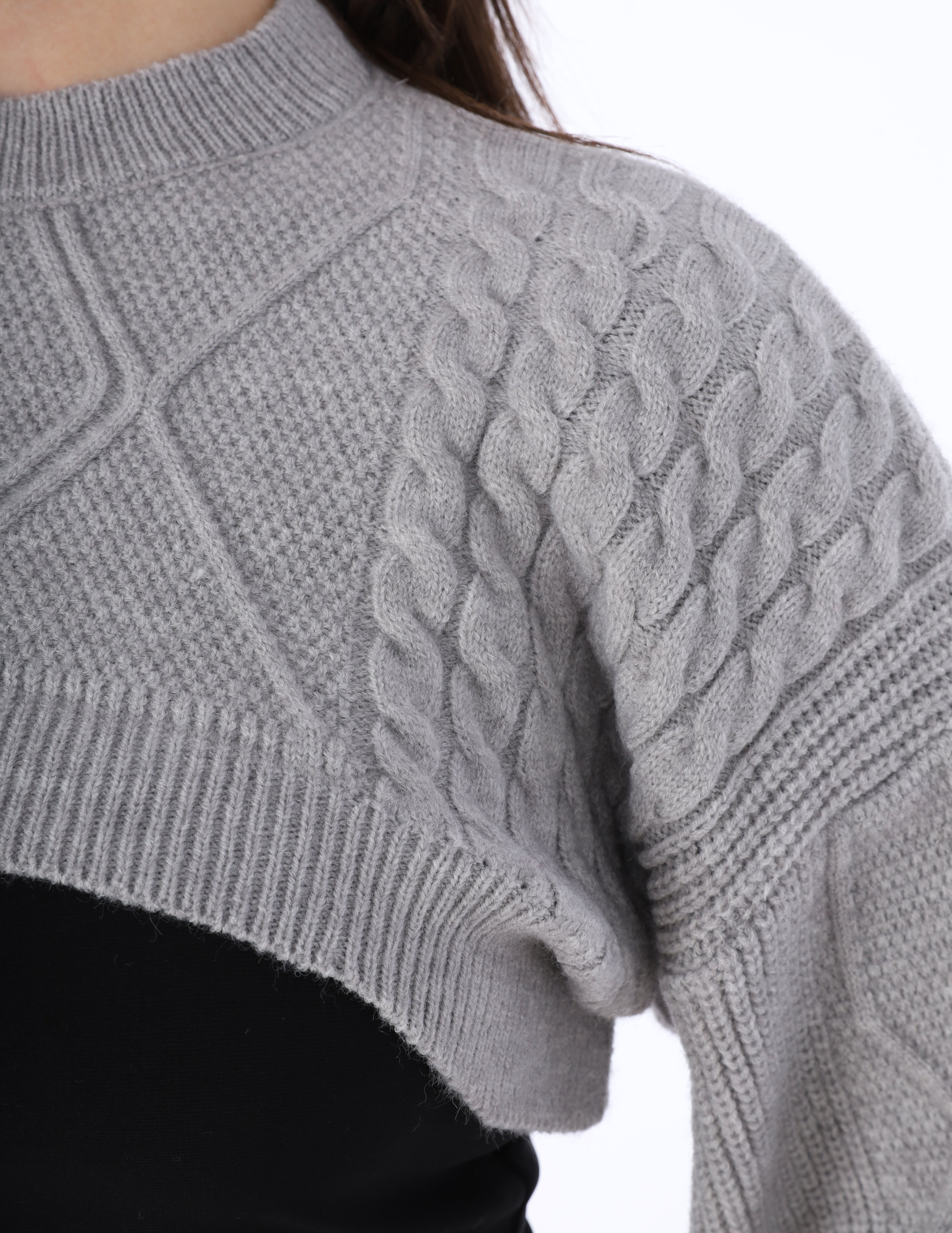 Cable Knit Balloon Sleeve Cropped Sweater Top w163210