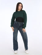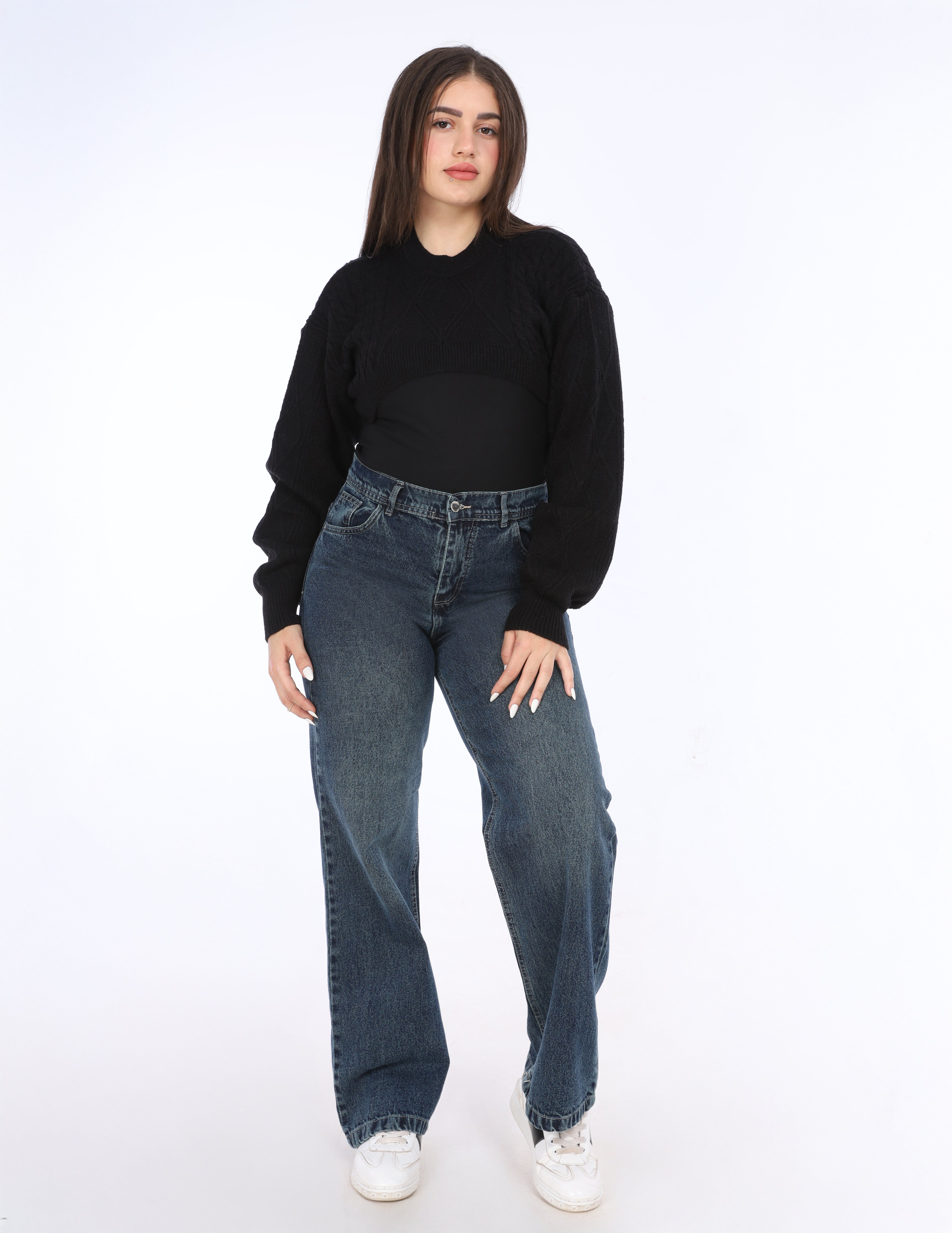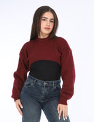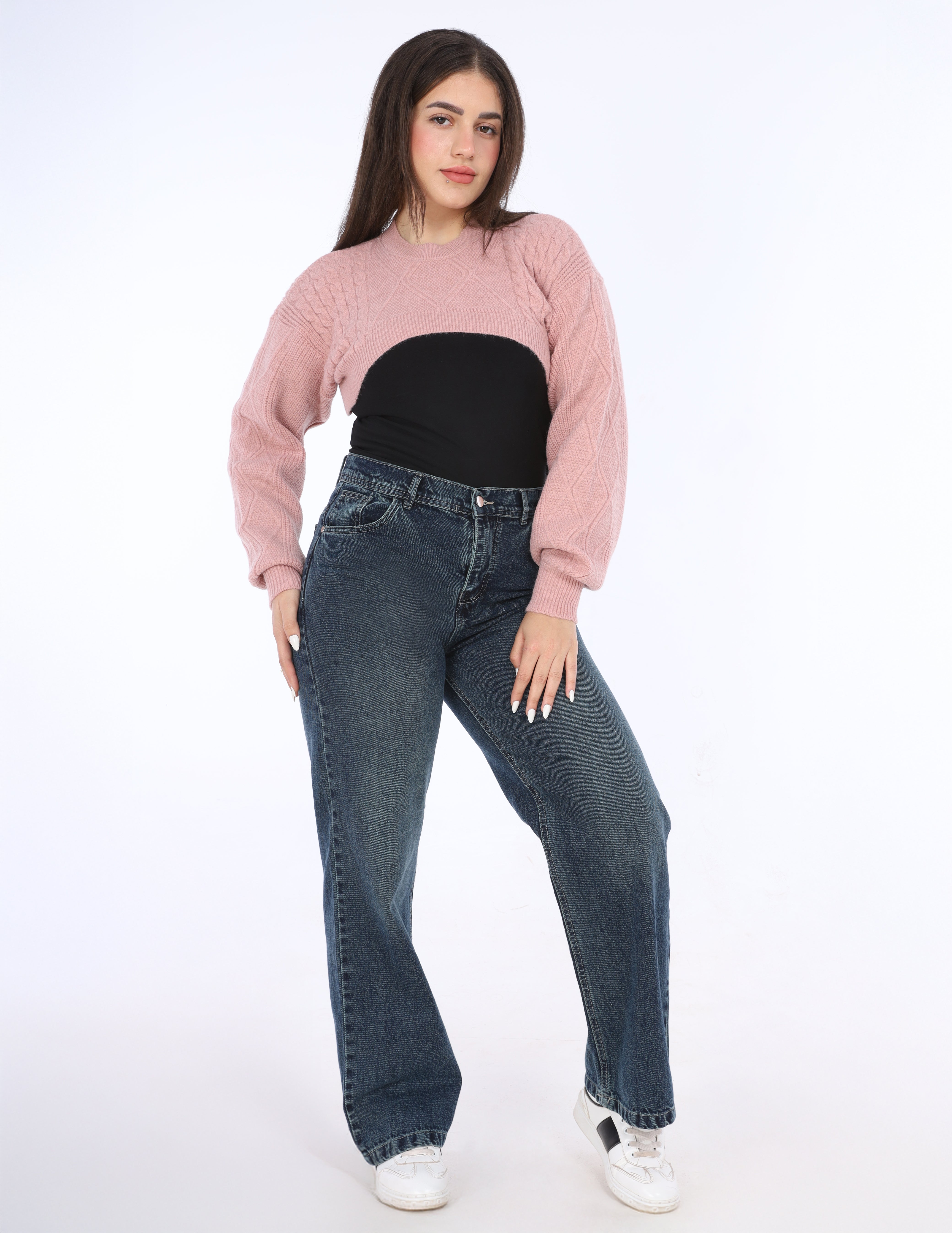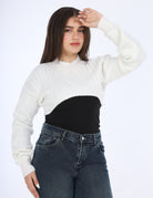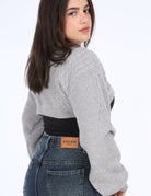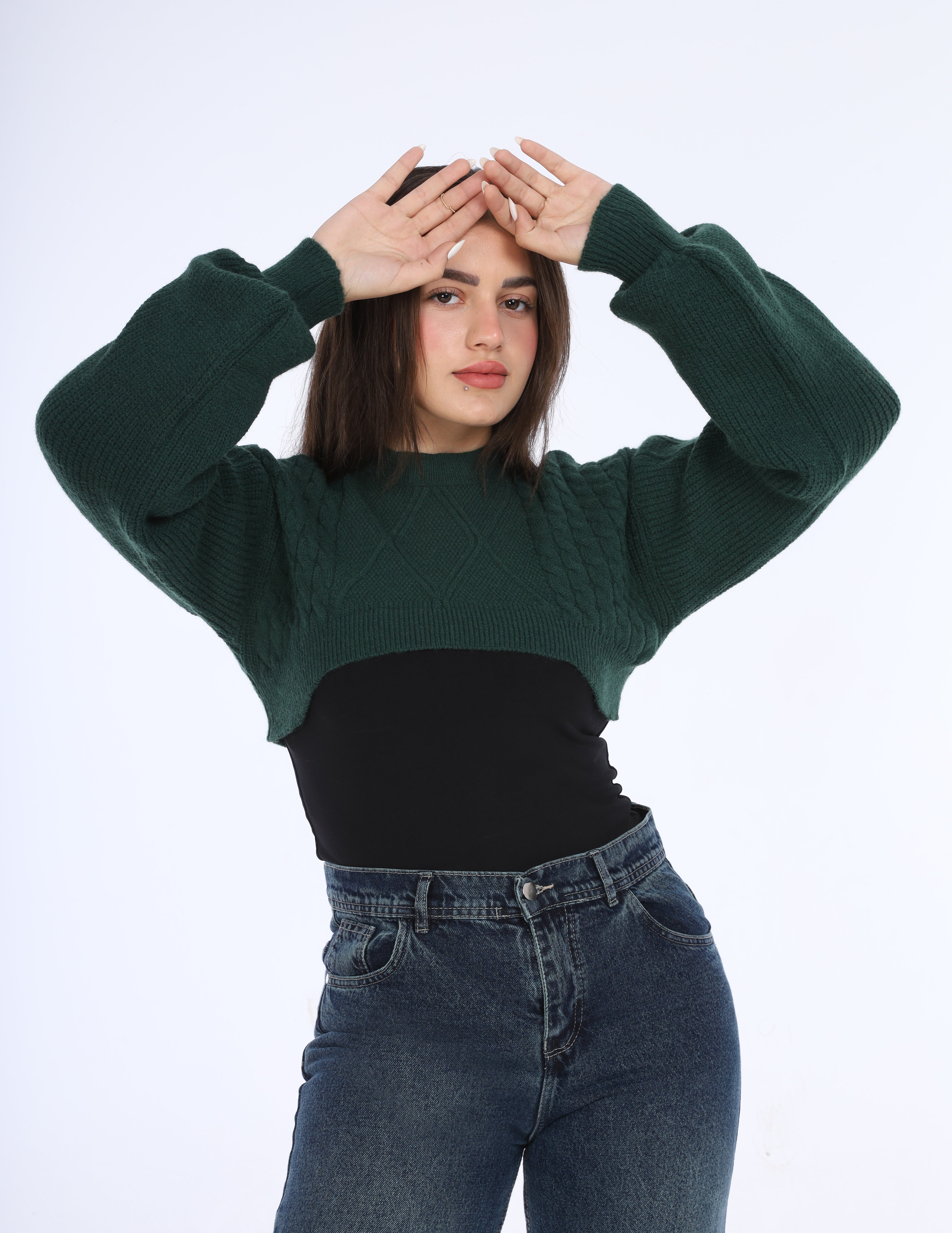 Cable Knit Balloon Sleeve Cropped Sweater Top w163210