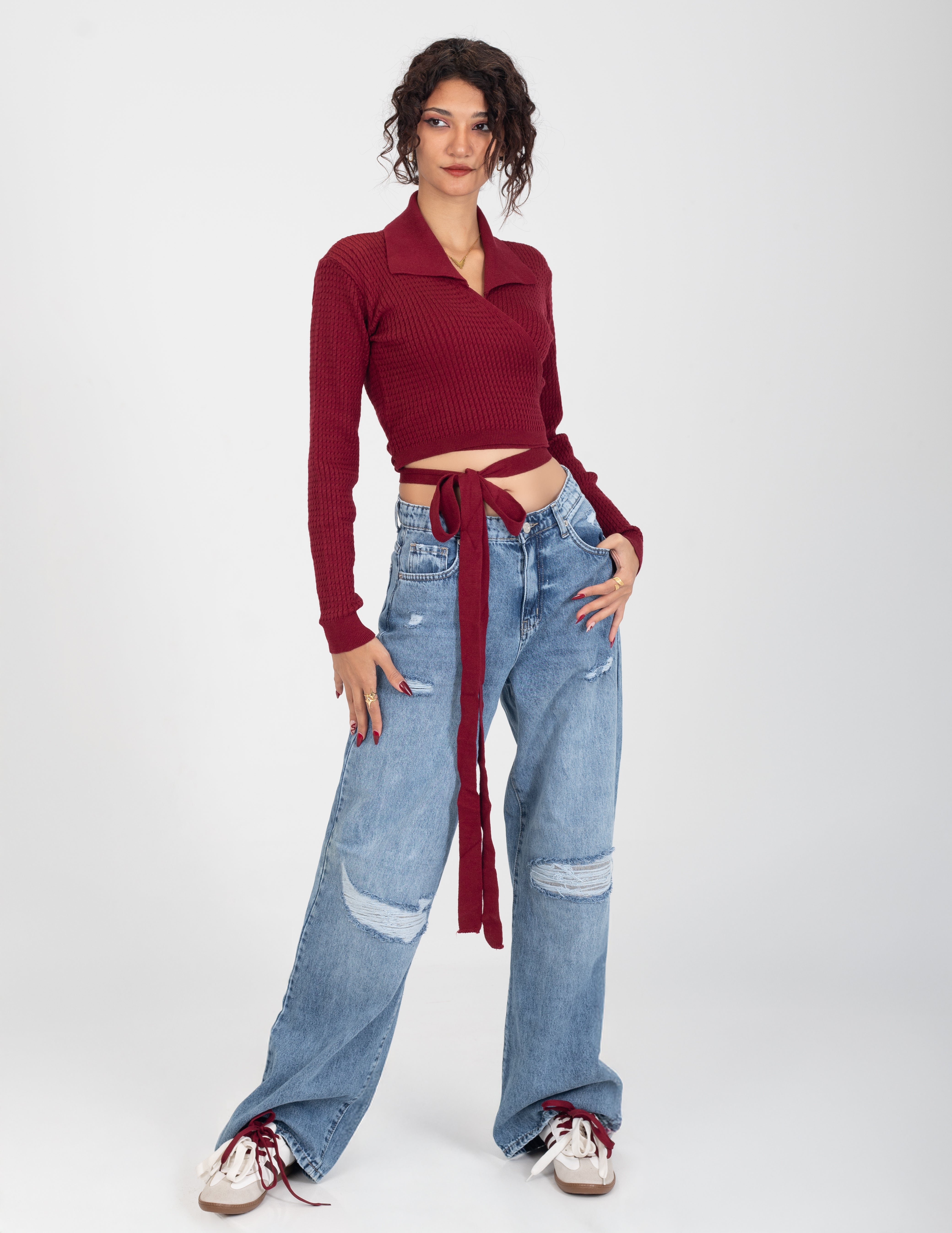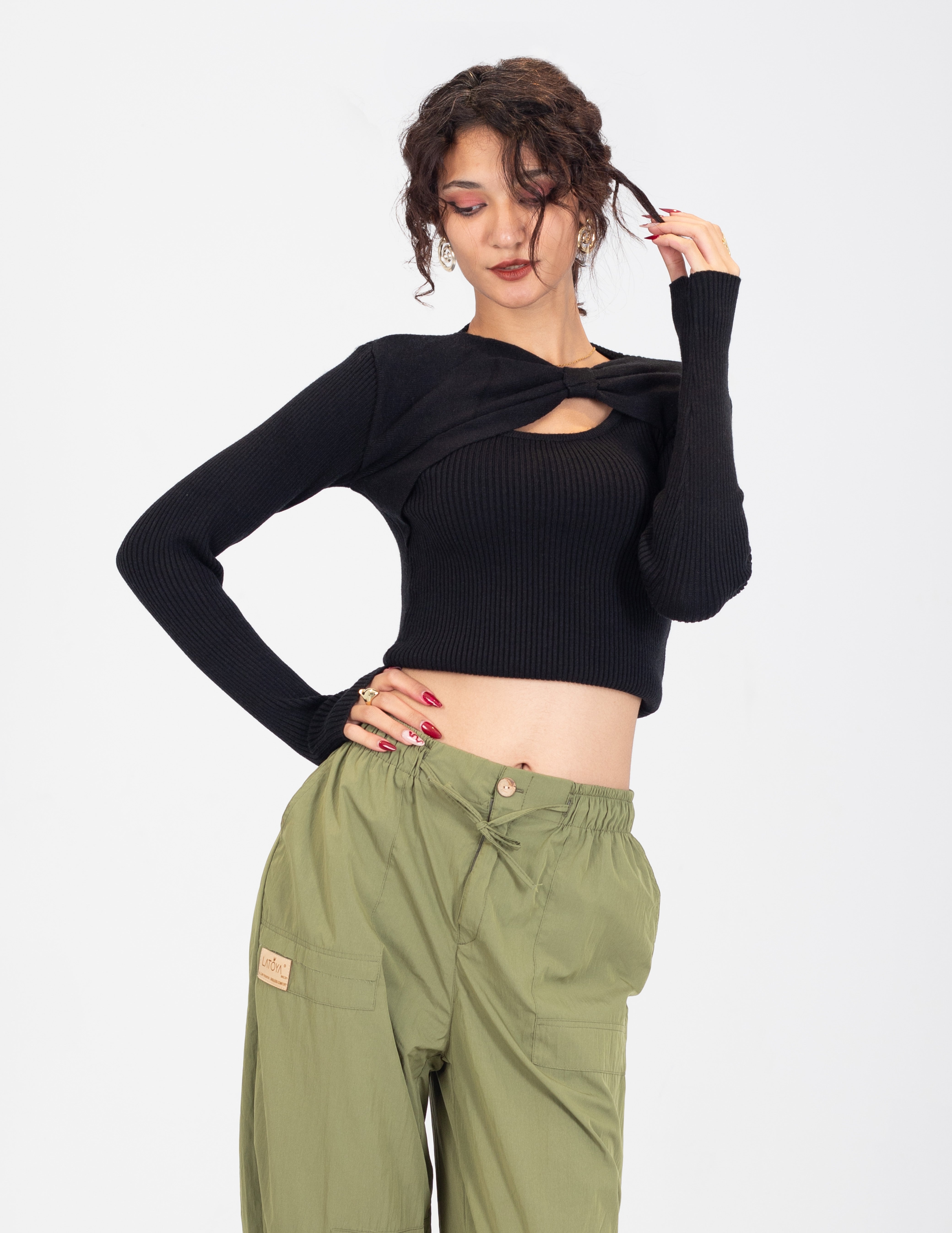 Asymmetrical Ribbed Knit Turtleneck Crop Top w16322
