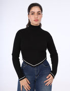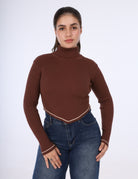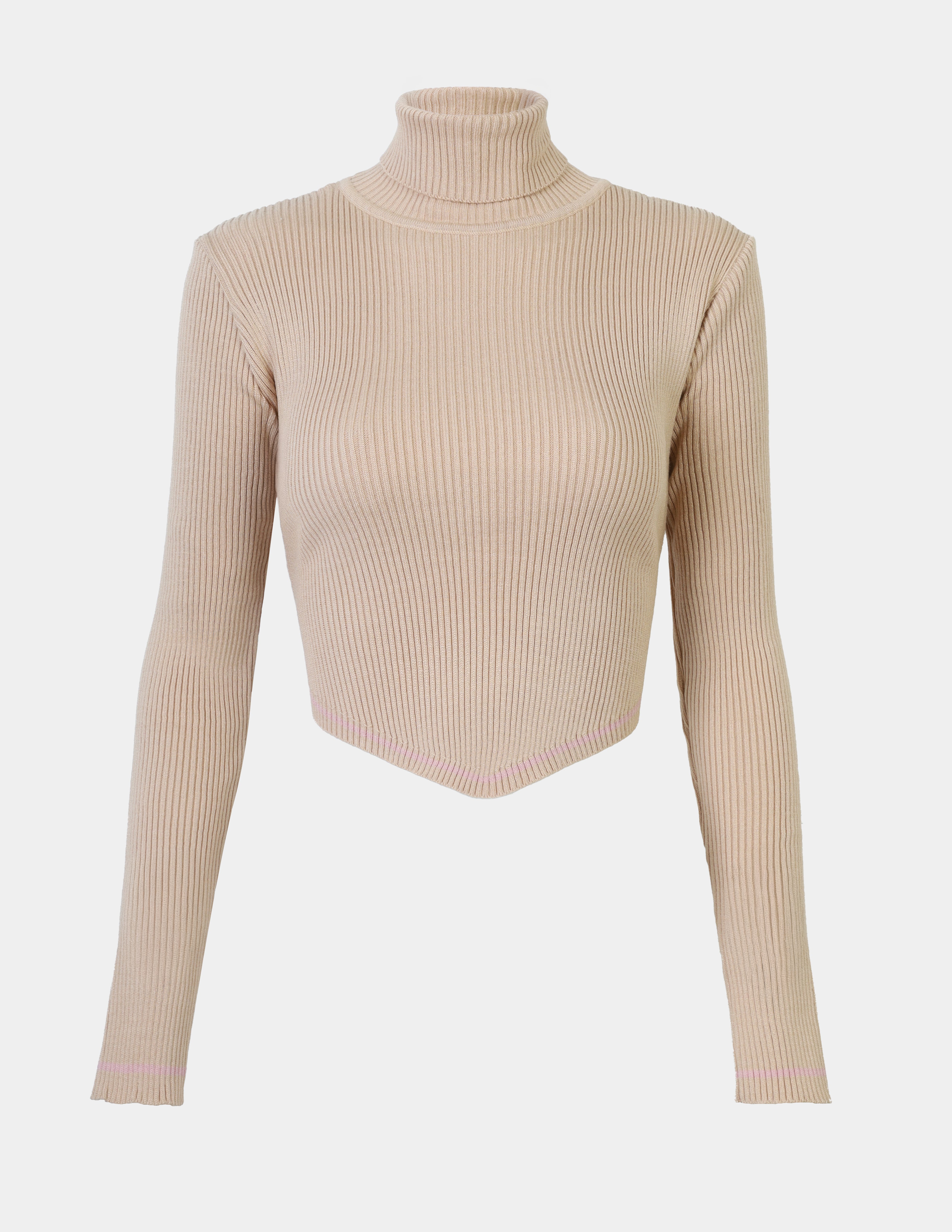 Asymmetrical Ribbed Knit Turtleneck Crop Top w16322