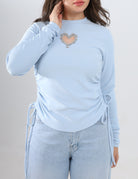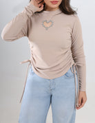 Stylish ribbed top featuring a cute heart cutout detail, Perfect for a trendy casual look