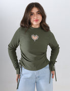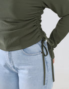 Ruched Ribbed Top with Heart Cutout w16482/1
