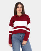 Half-zip pullover crafted from soft knit fabric, designed with a high neckline.