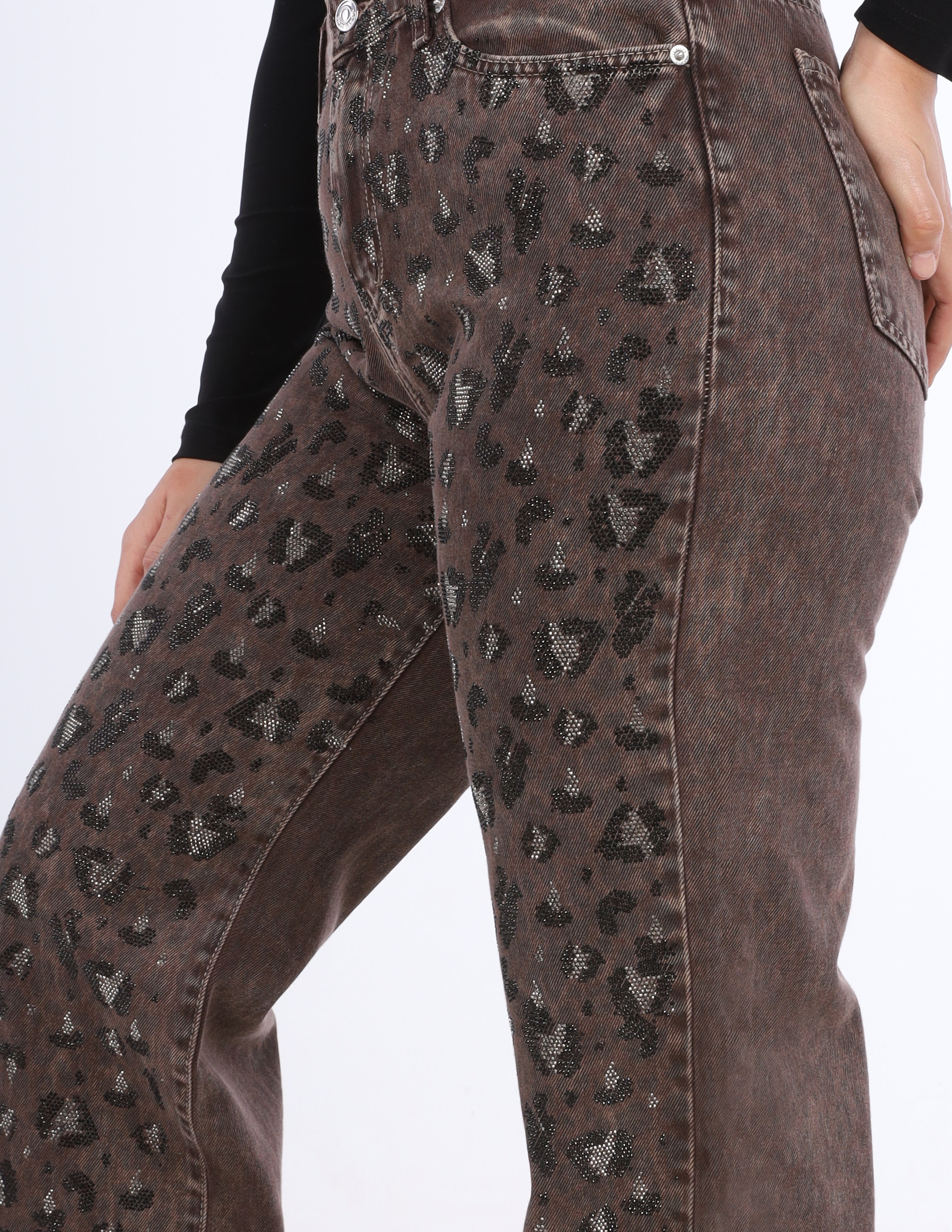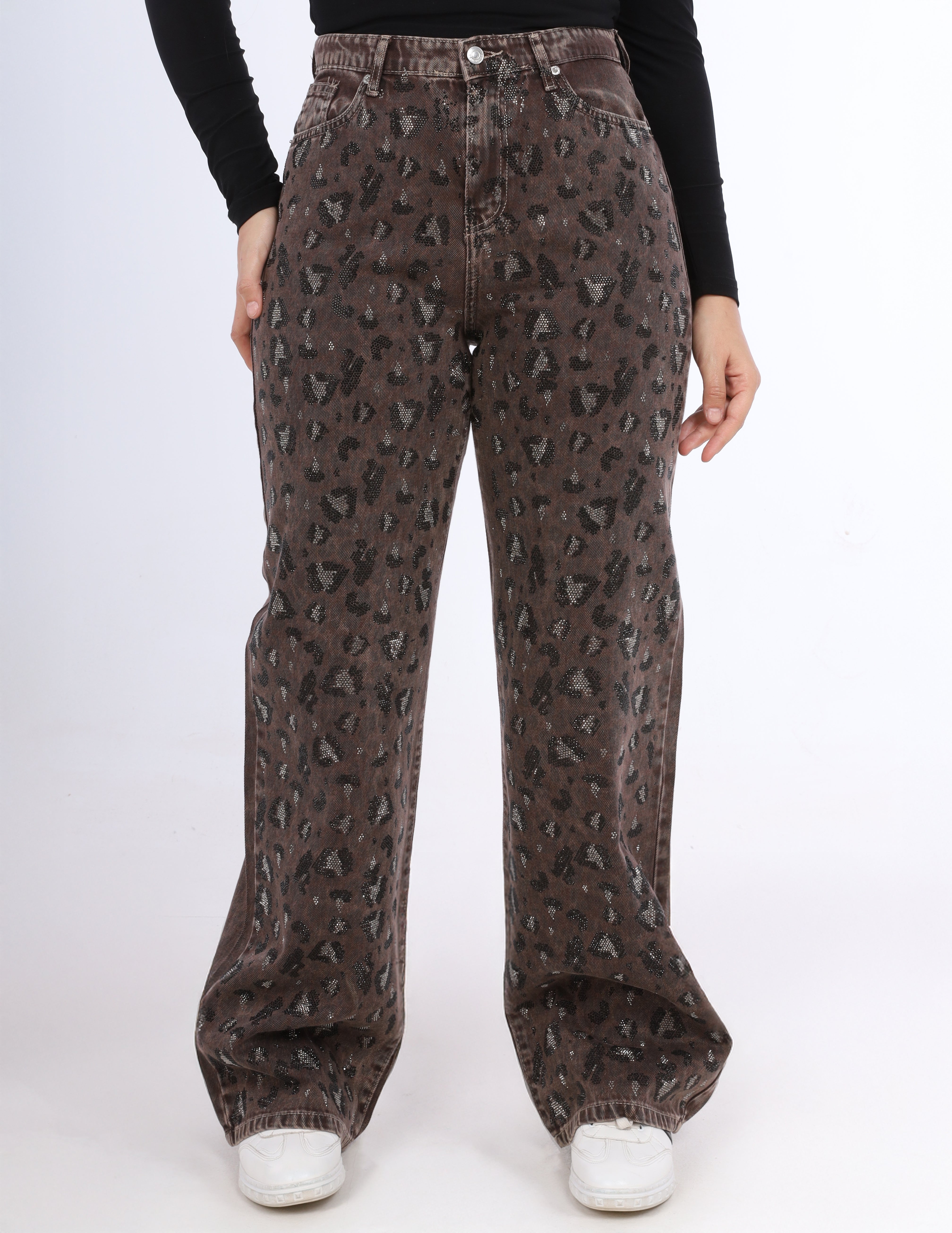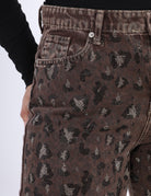 Wide-leg jeans featuring a bold leopard print for a trendy and statement-making look.