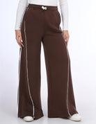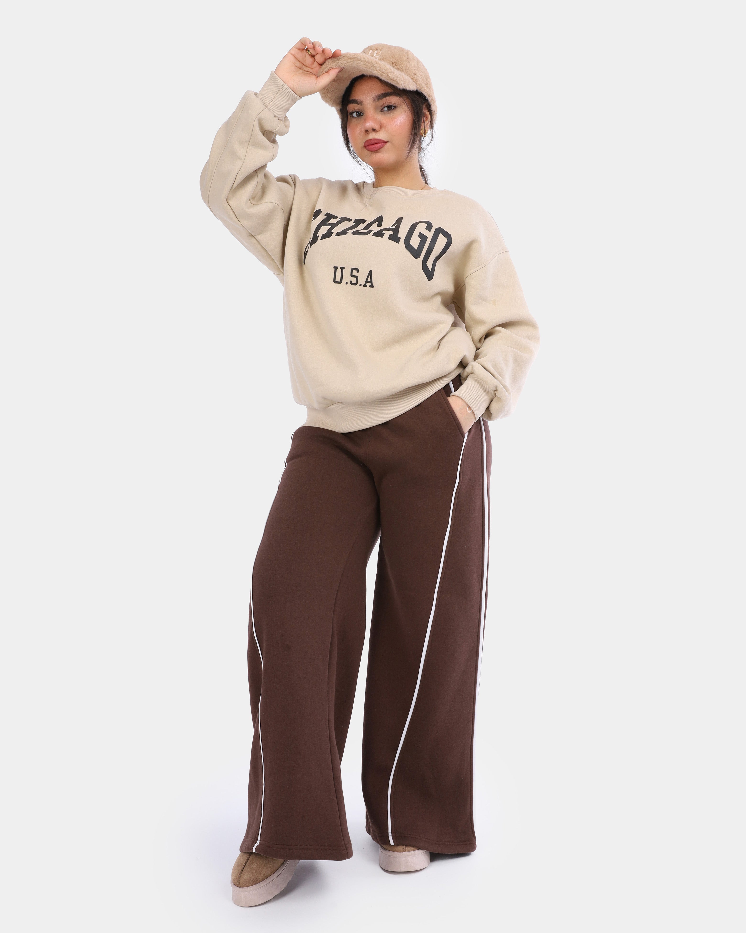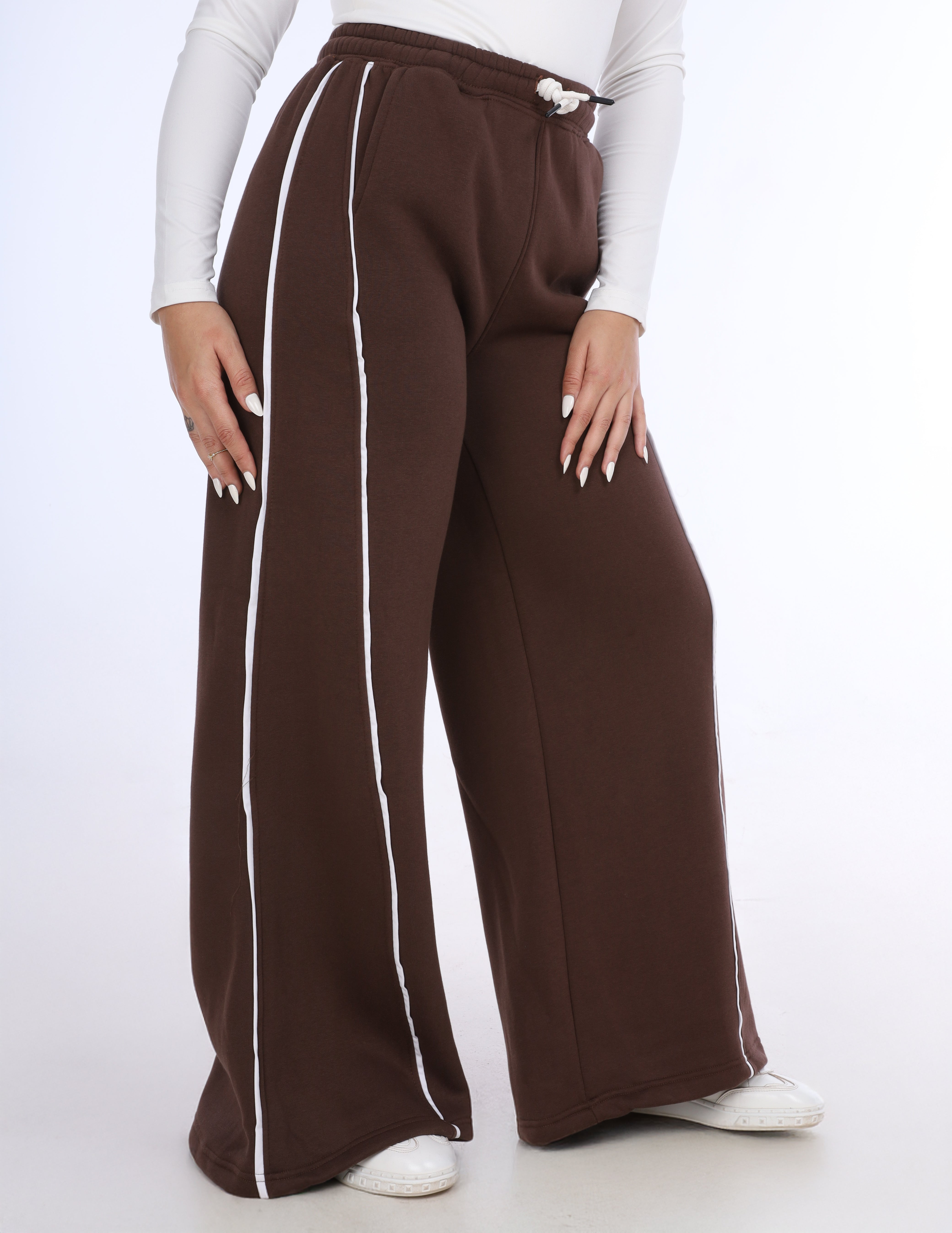 Melton pants with white side stripe and elastic waist for a comfy fit.