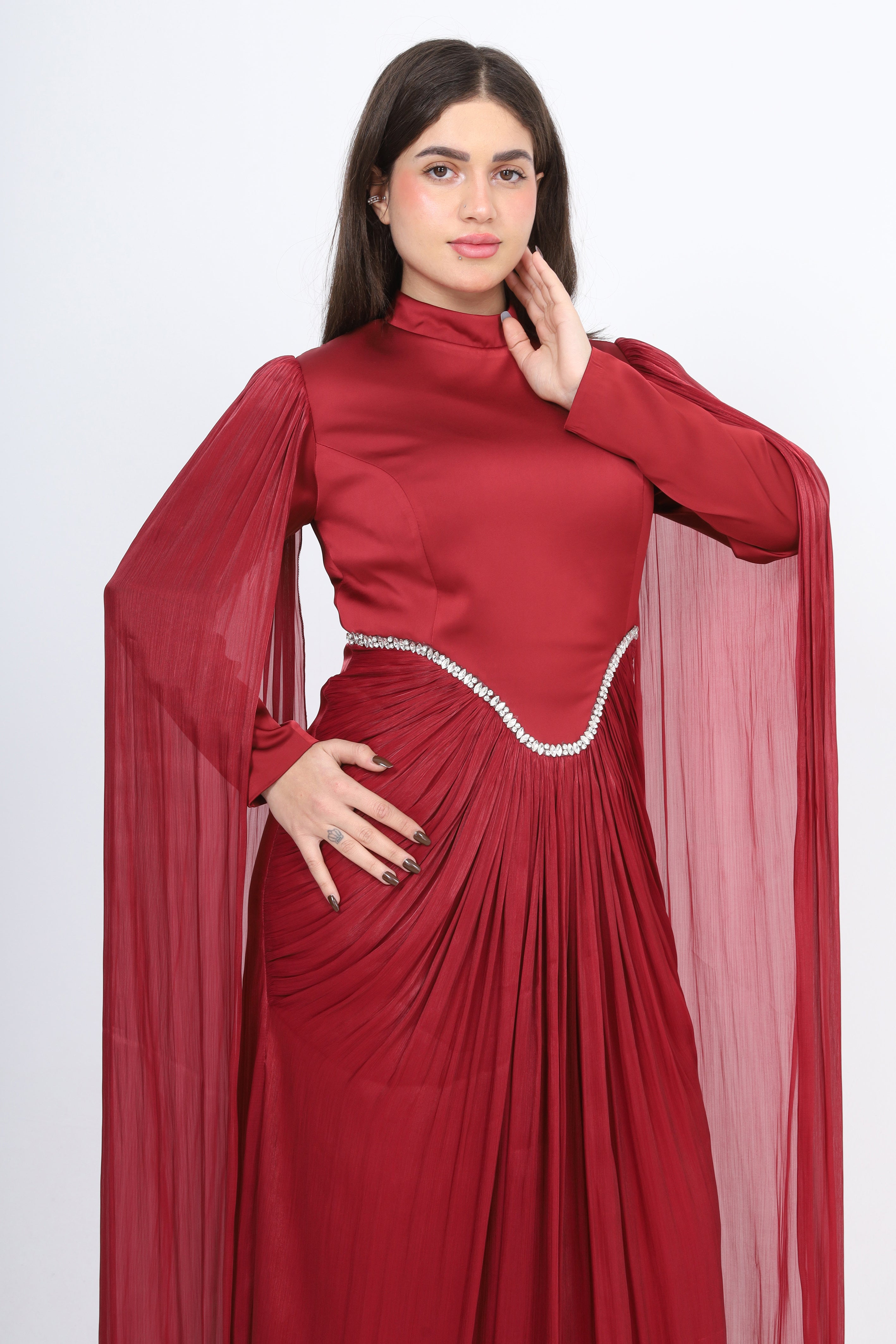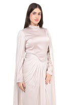 Elegant evening gown designed for timeless sophistication. Crafted in a rich satin-finish fabric.