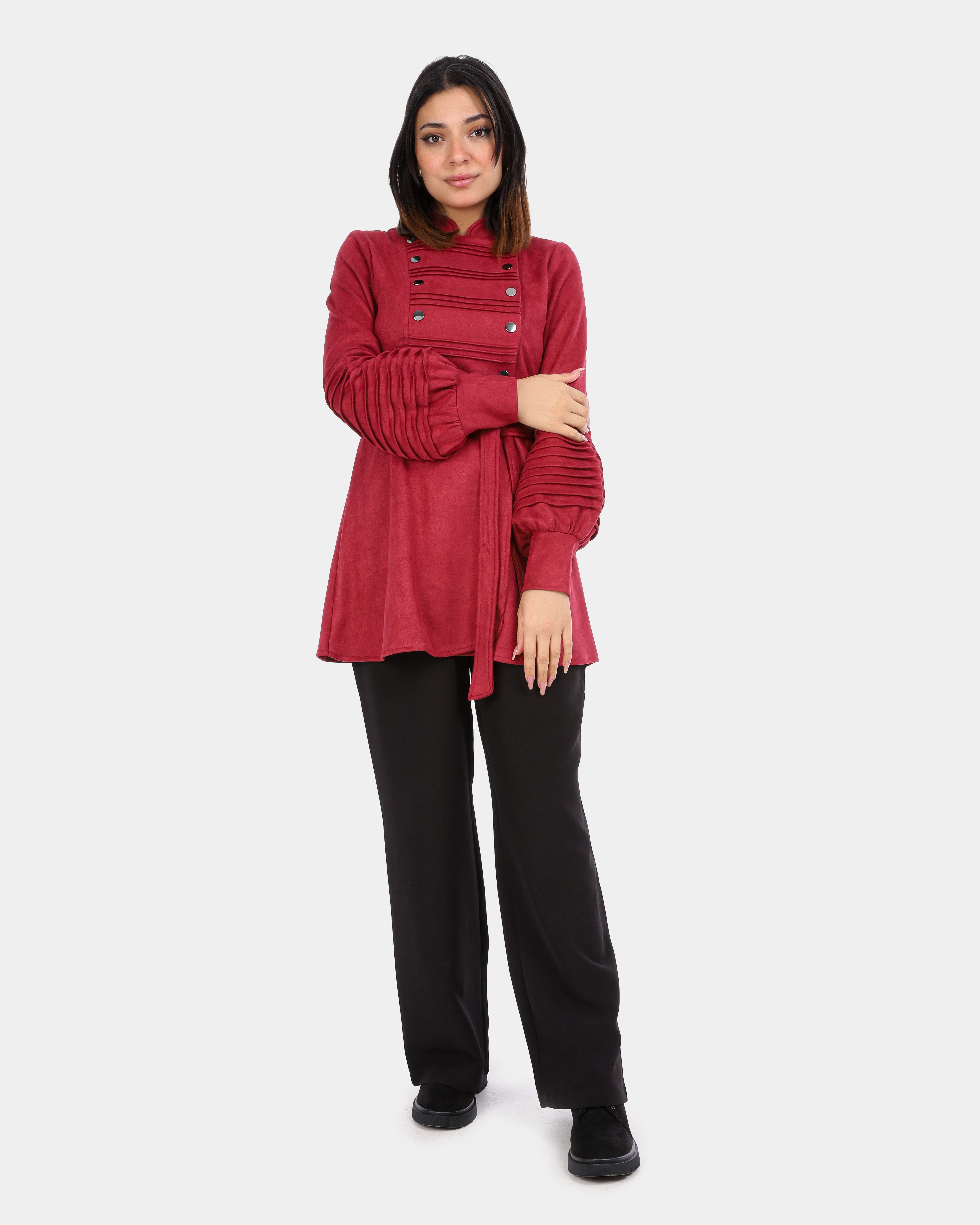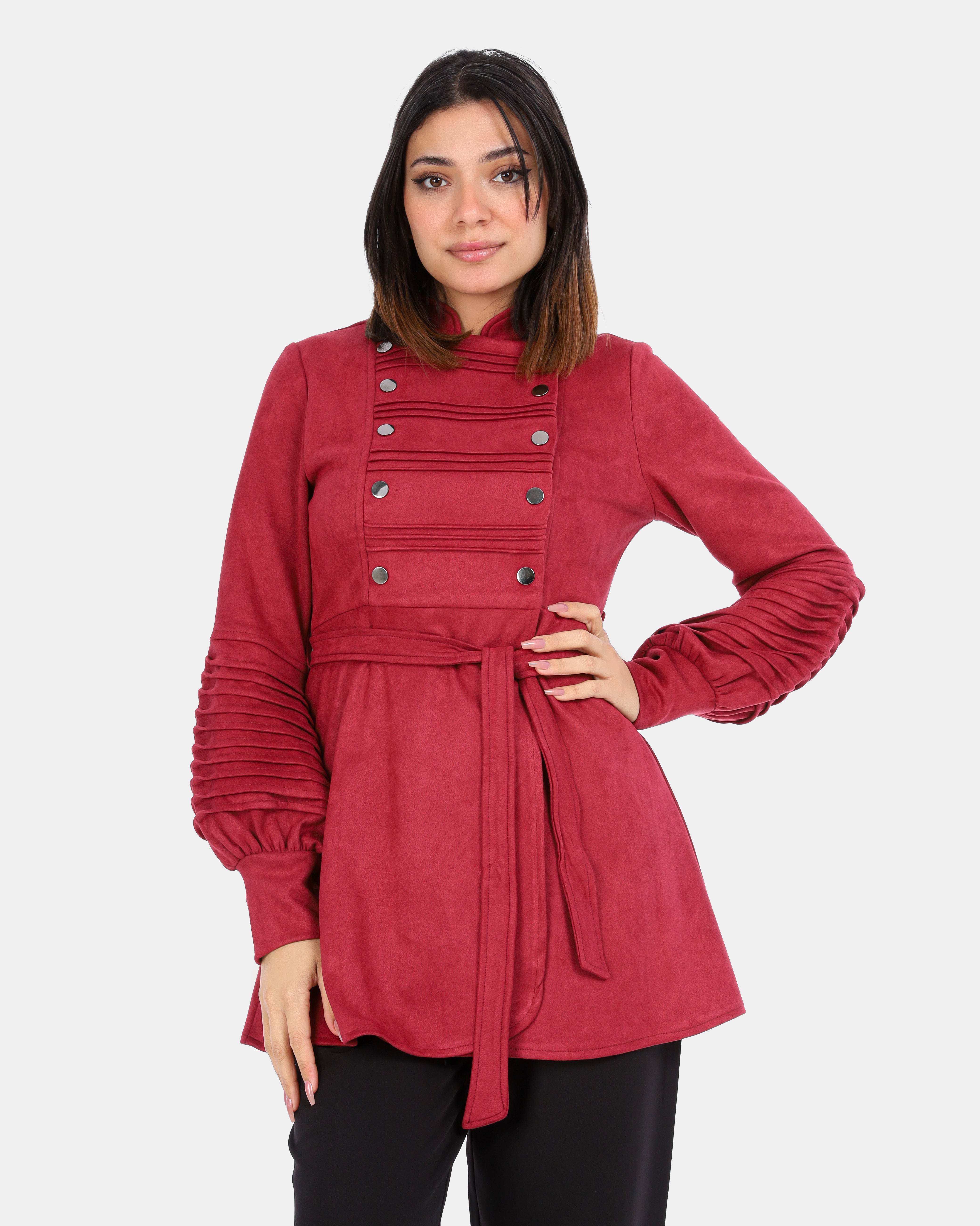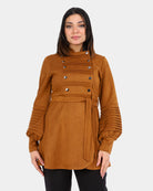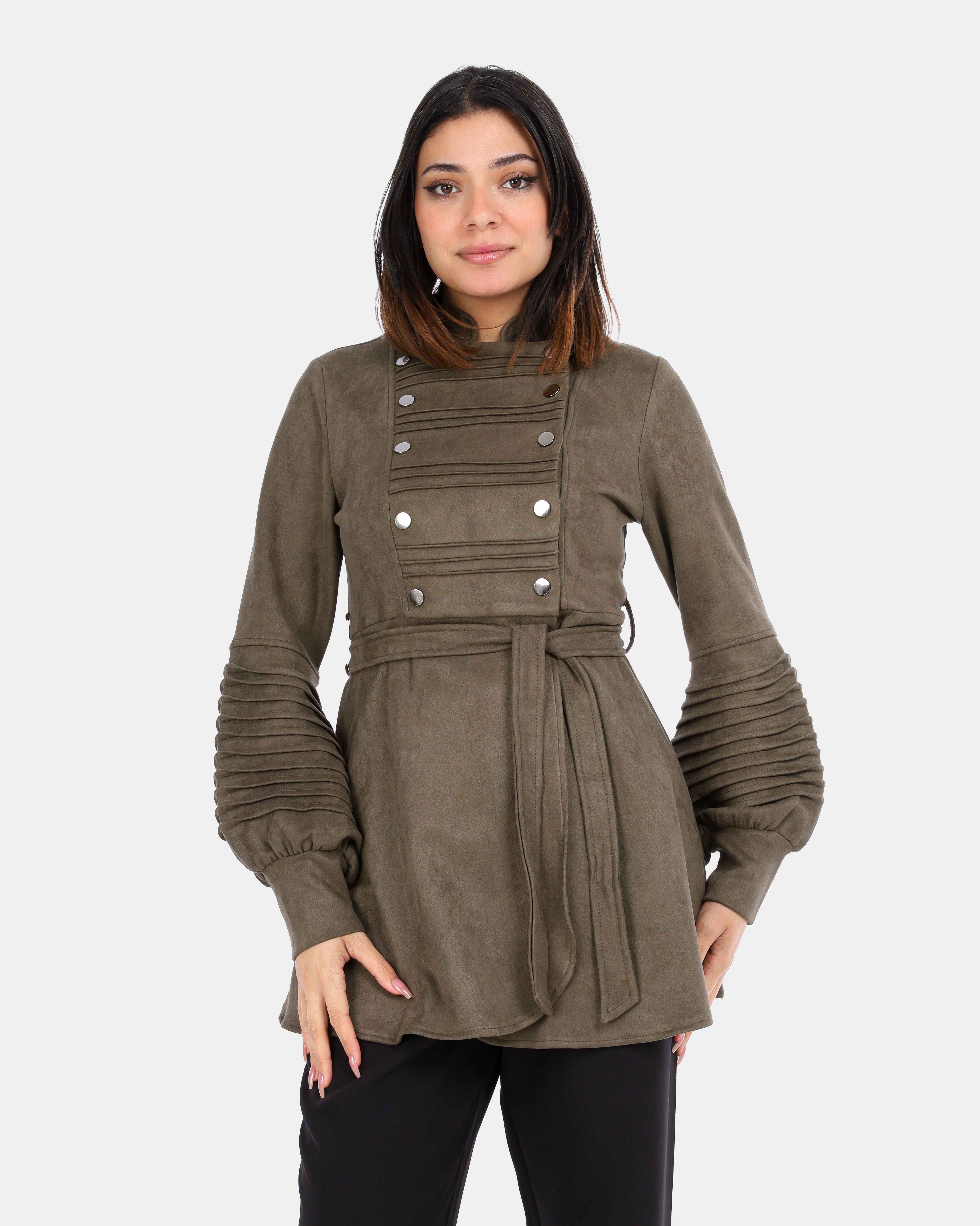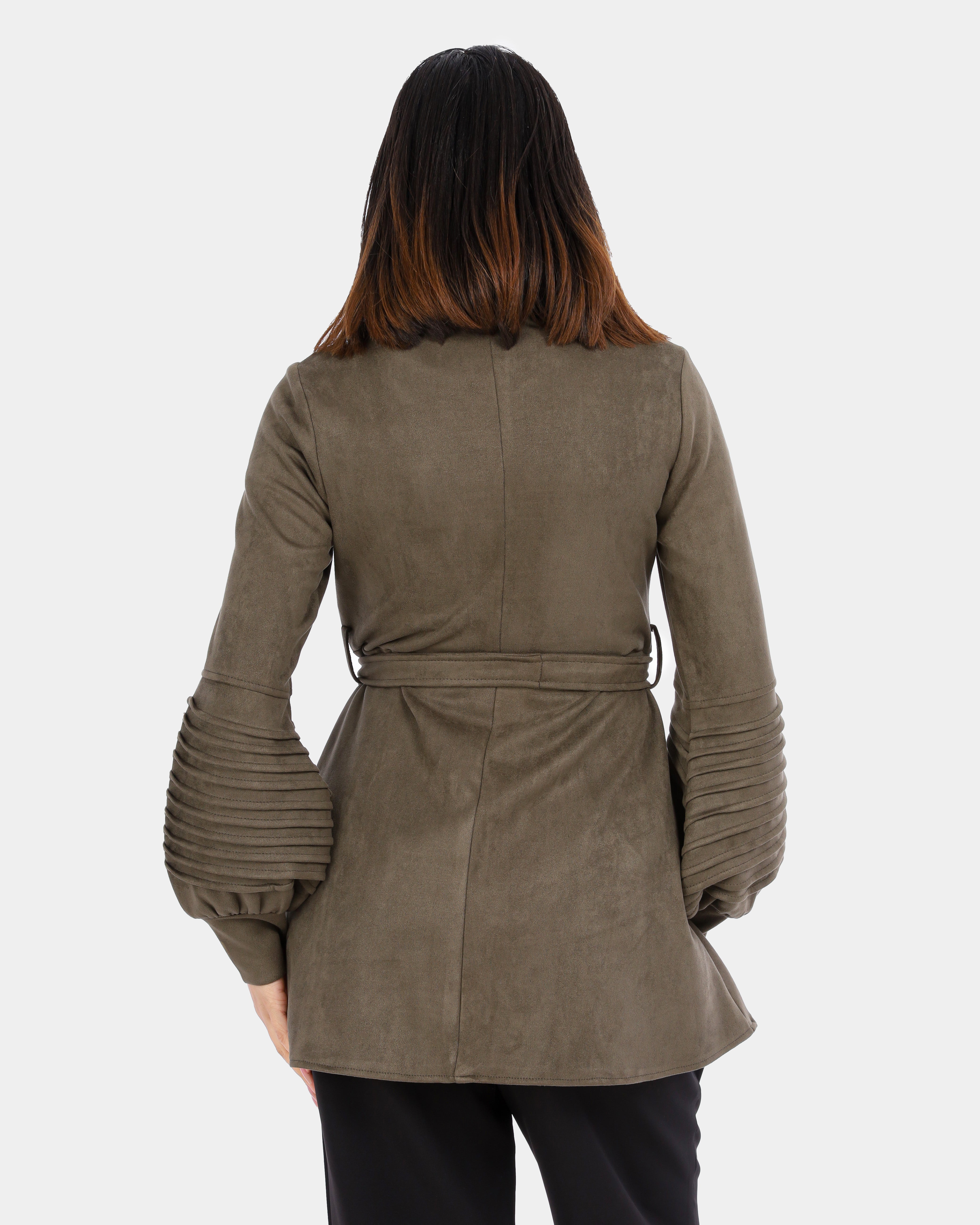 Suede Blouse with Puff Sleeves & Waist Belt w1630/126