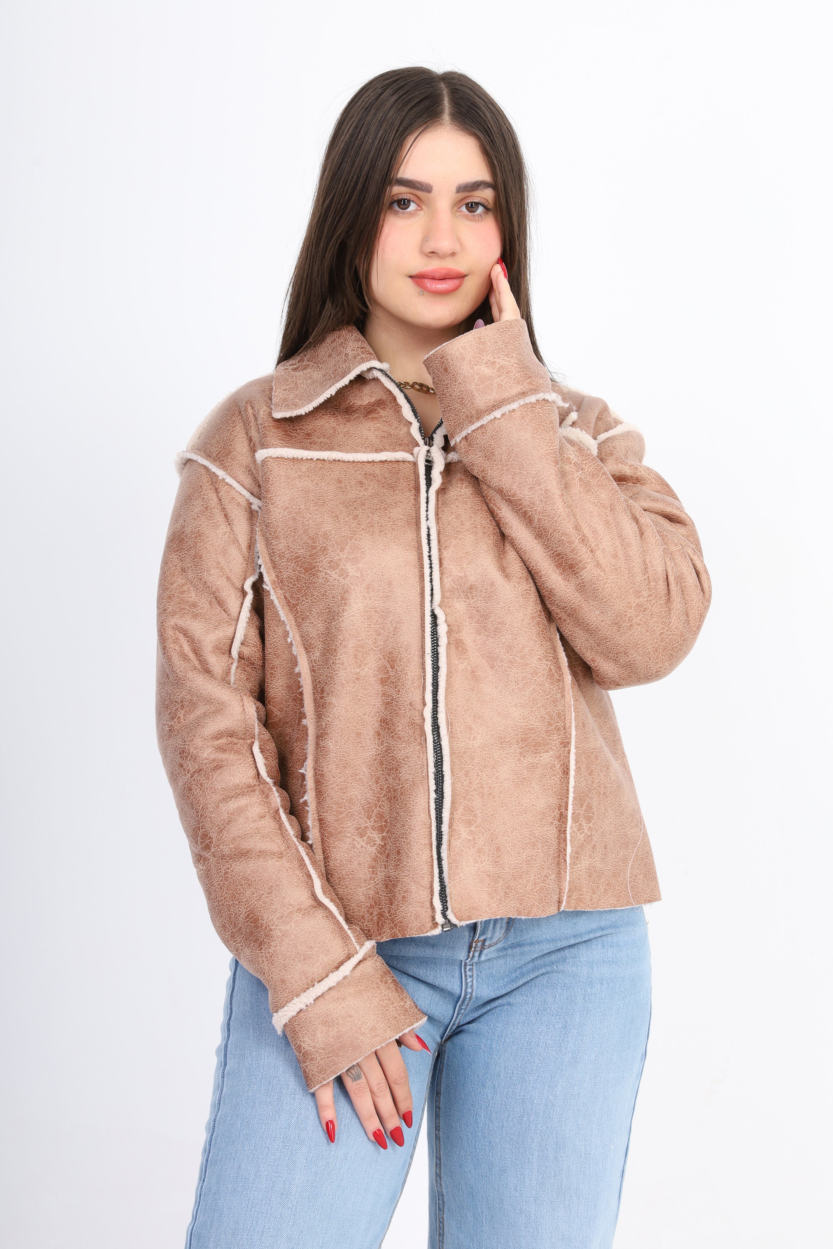 Faux Fur Shearling Jacket With Zipper w1630/284