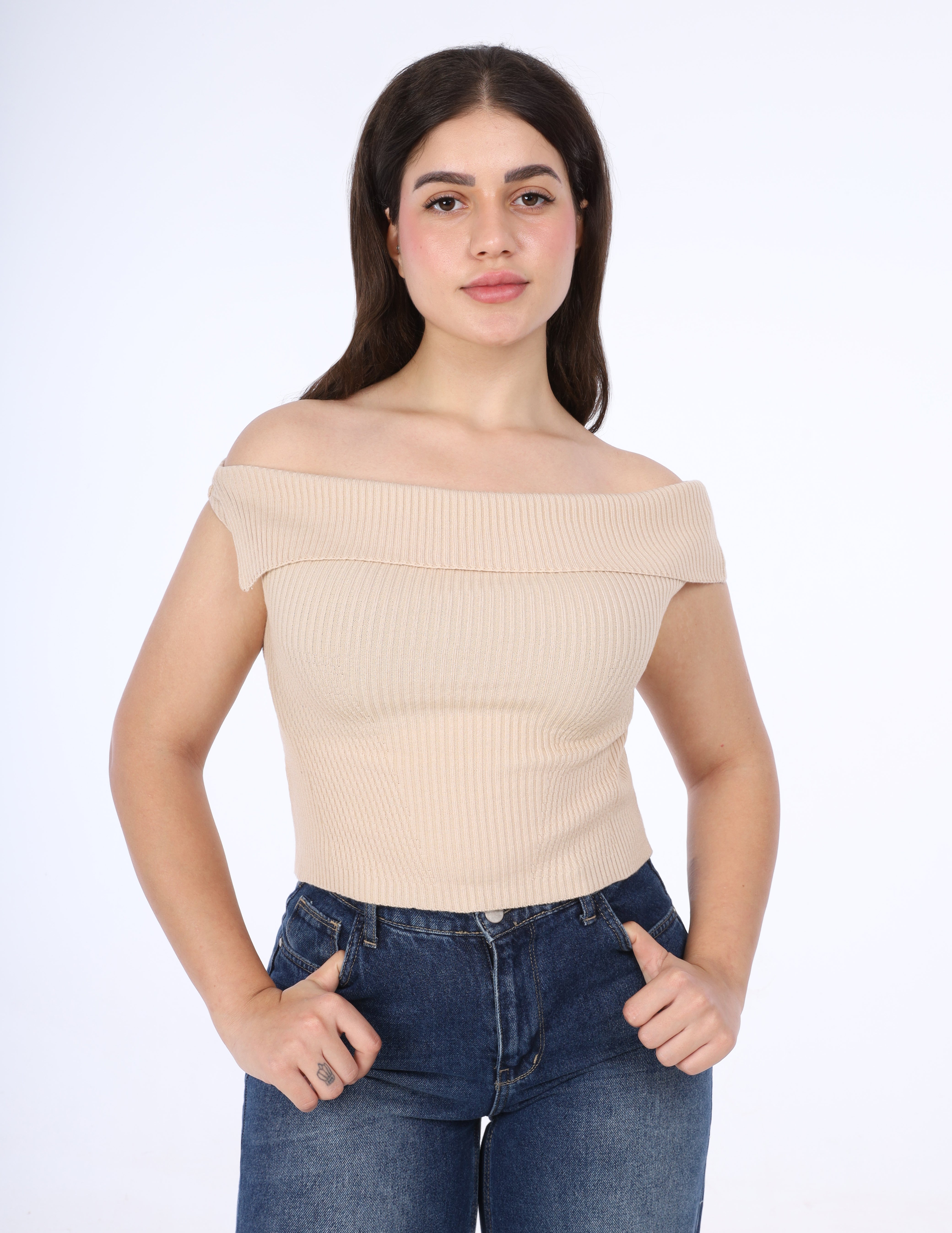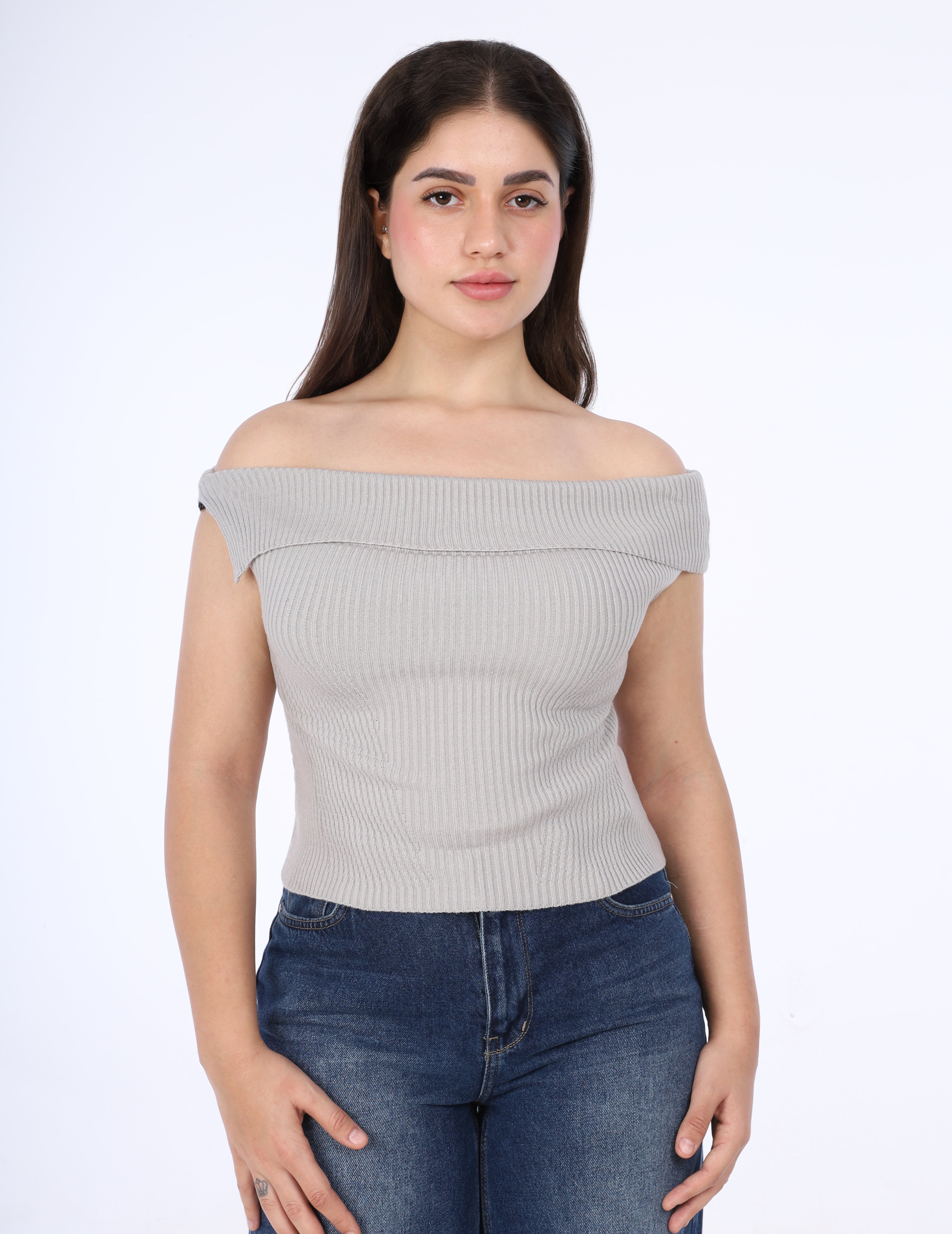 Ribbed Off-Shoulder Knit Top w163220