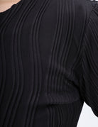 Classic black ribbed dress with a comfortable stretch fit and simple silhouette