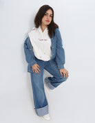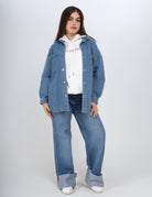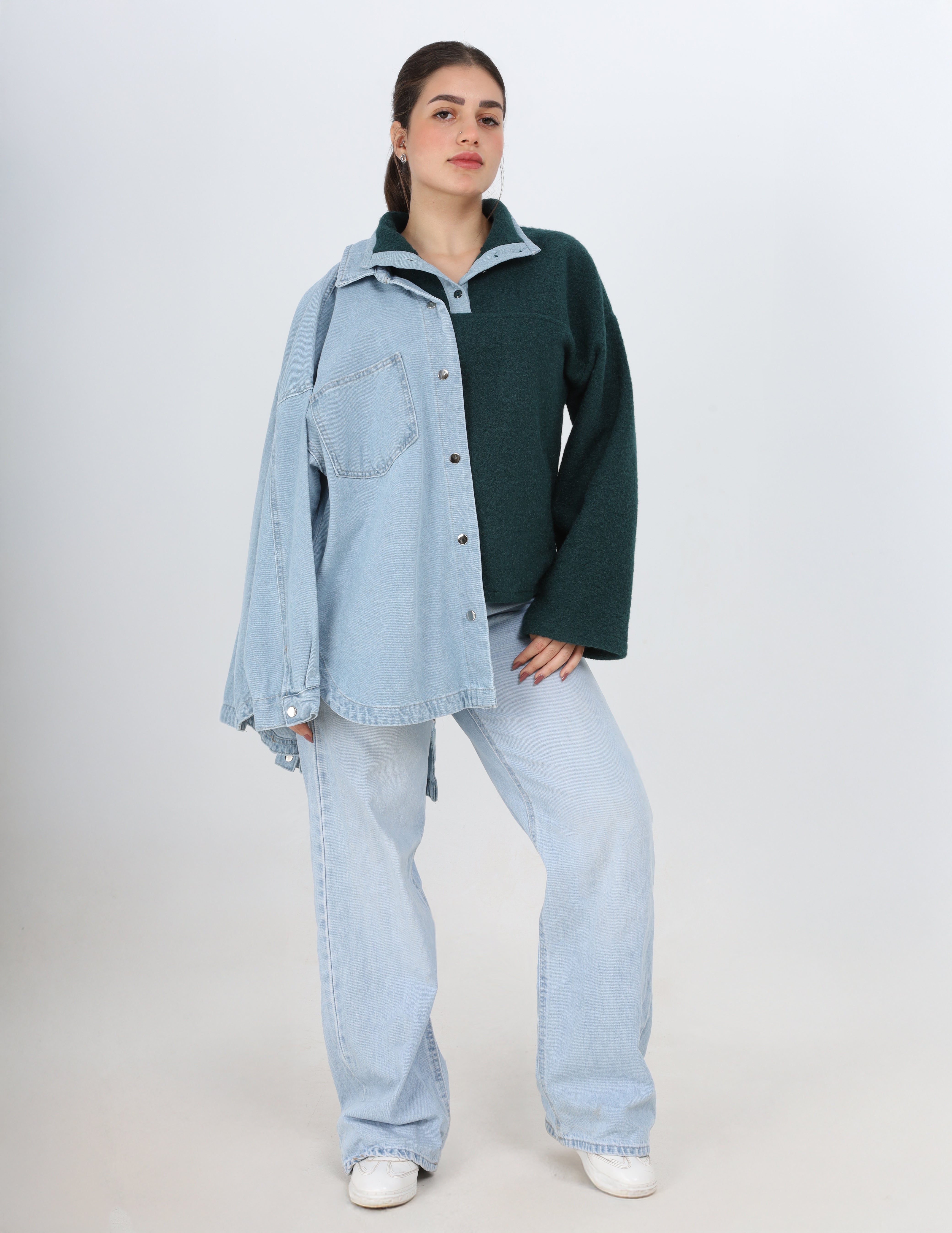 A versatile denim jacket with a classic button details, ideal for layering in any season.