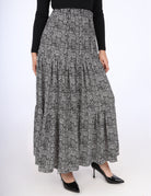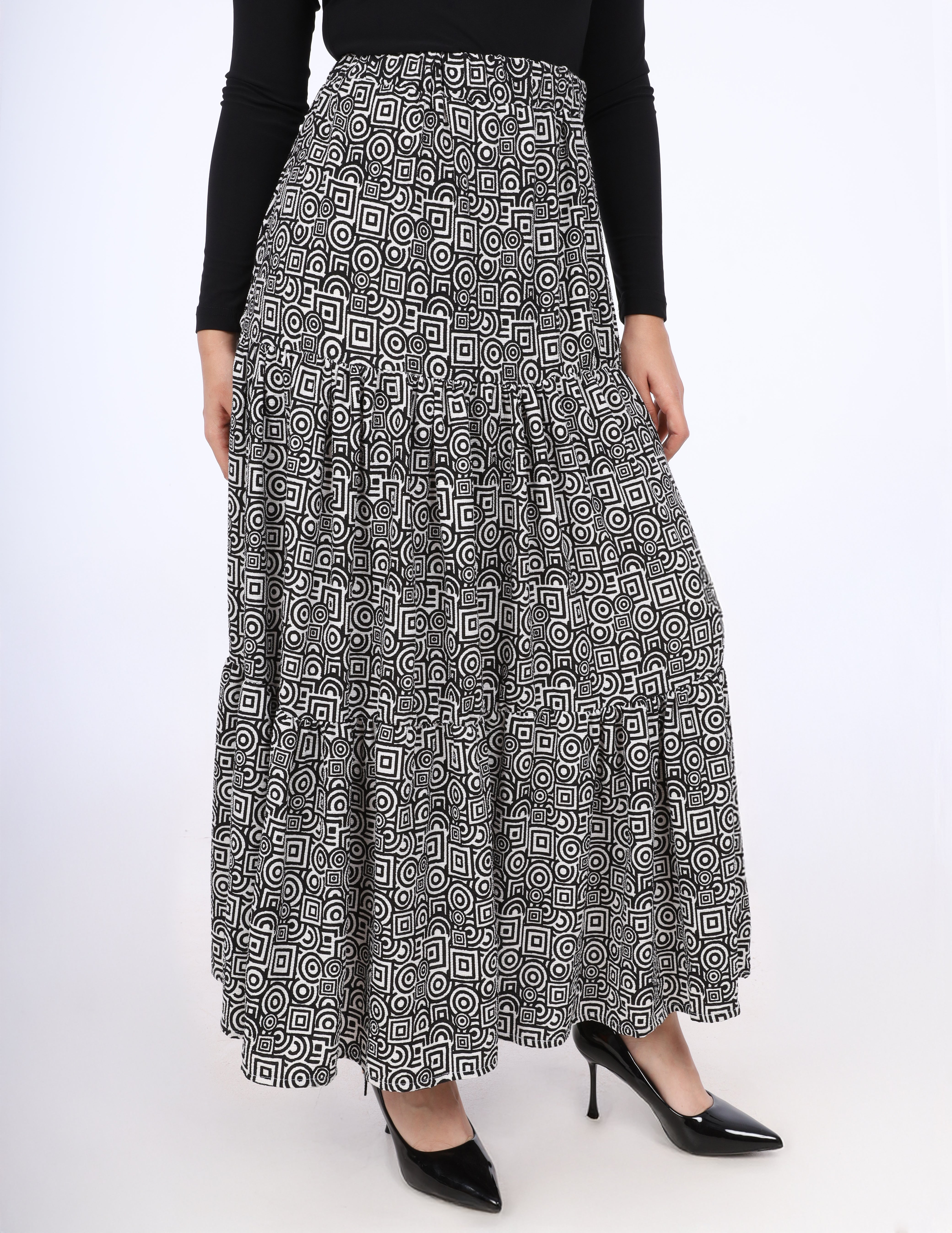 Elegant printed skirt designed with a flattering midi length and flowy silhouette.