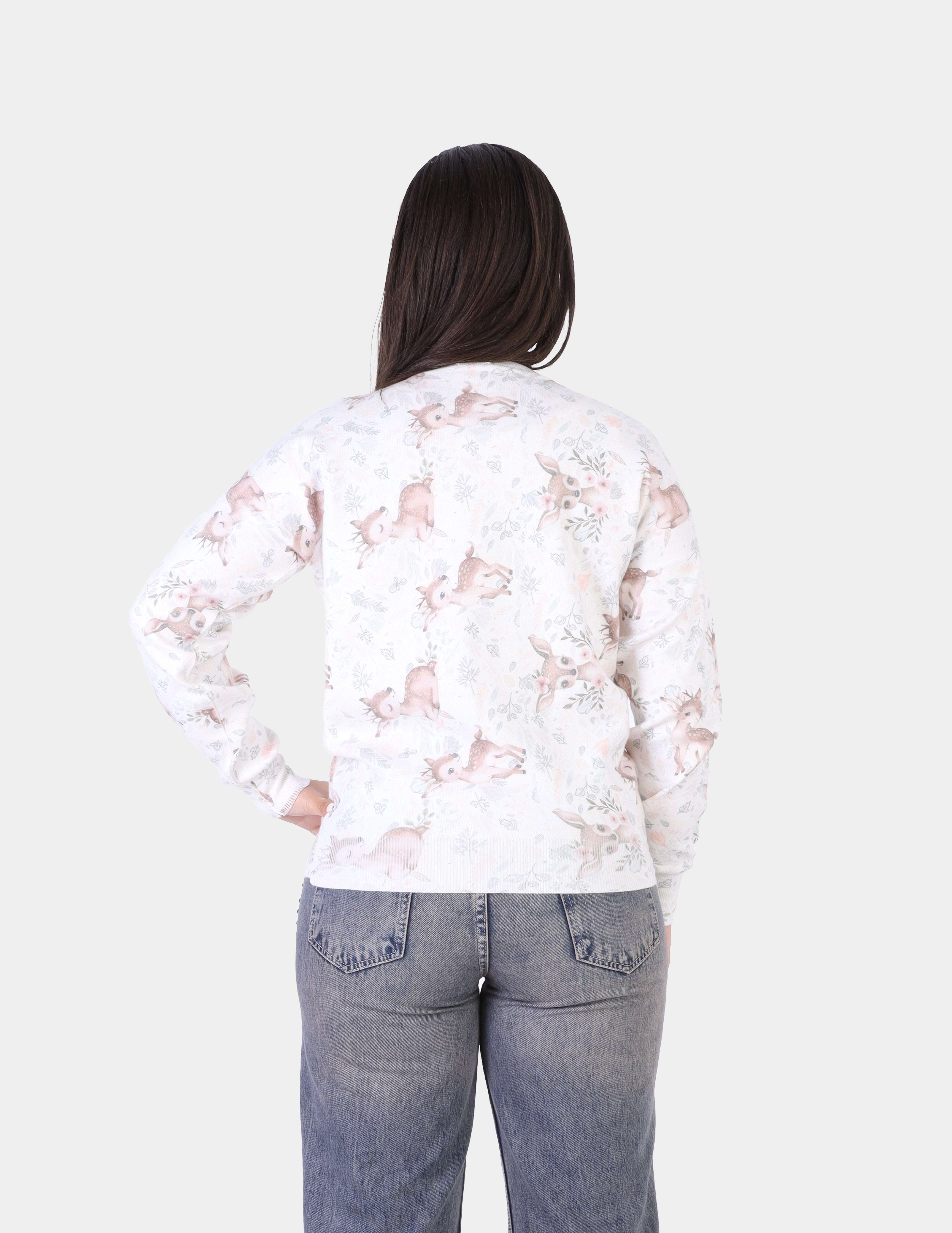 Baby Deer Print Cozy Knit Pullover w1001493