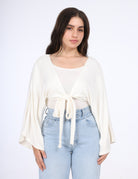 Chic cropped cardigan with flared sleeves and front tie detail