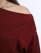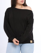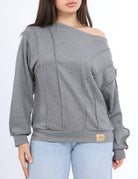 Stylish off-shoulder sweatshirt for women featuring an asymmetrical neckline and relaxed fit. Perfect for casual outfits and everyday comfort.