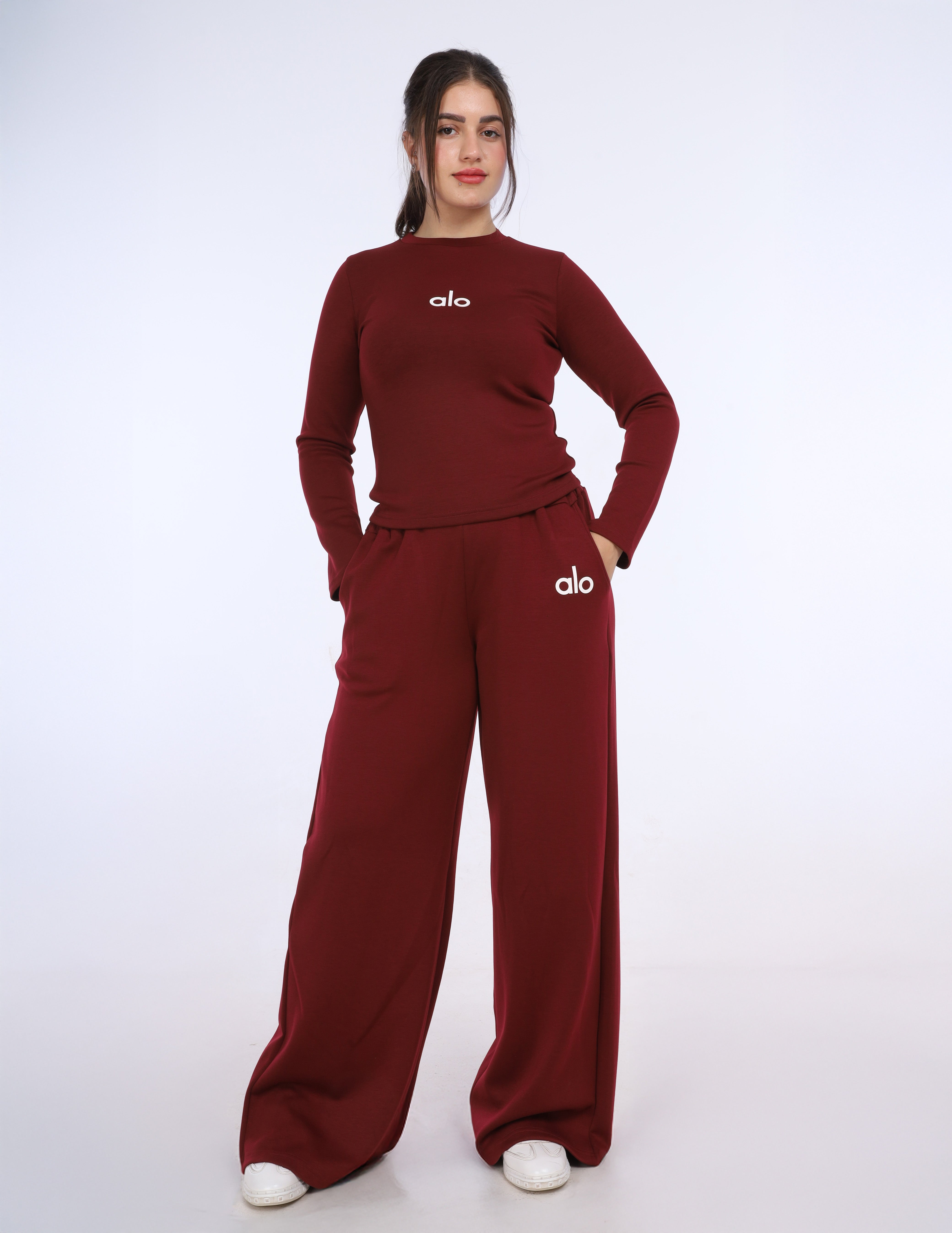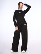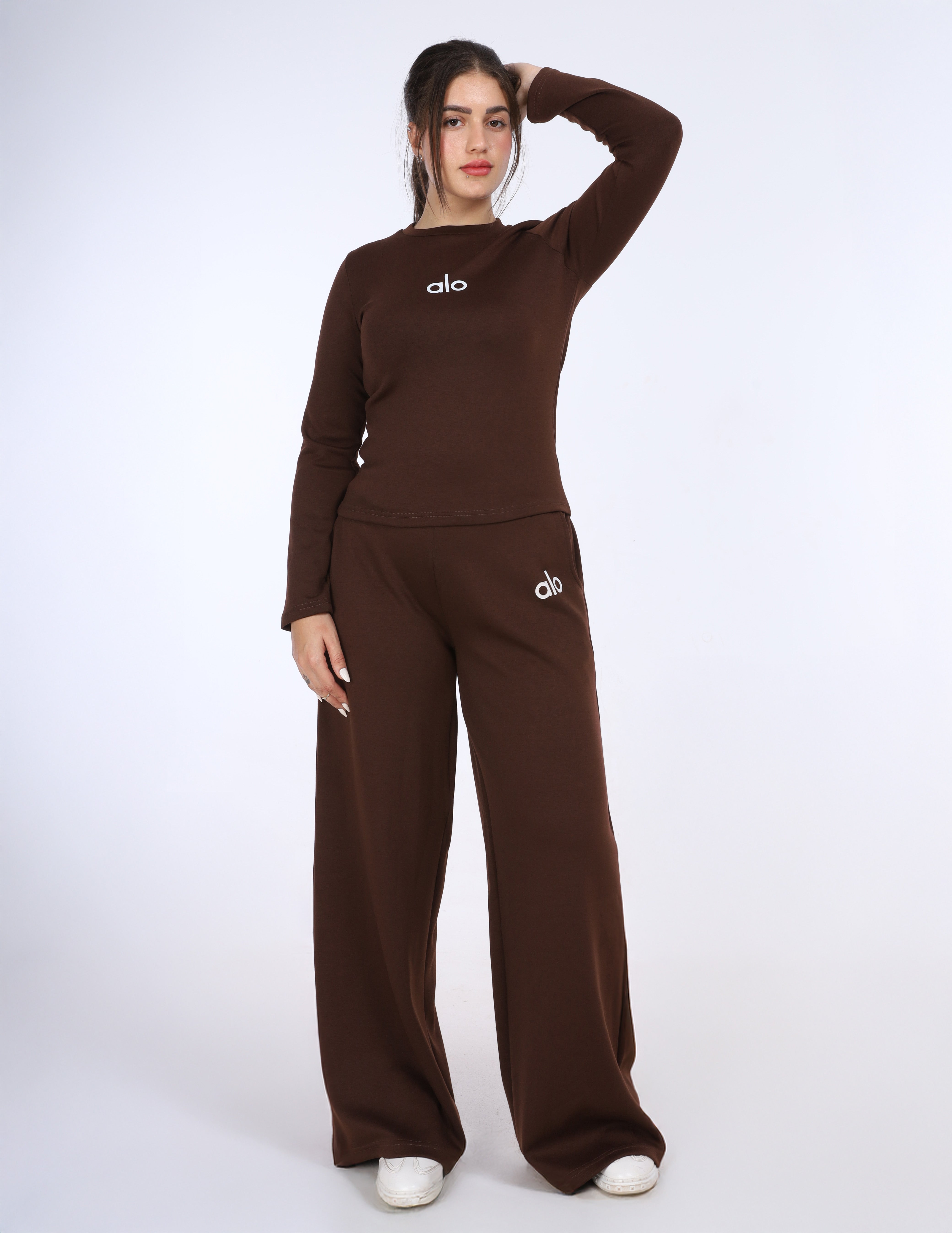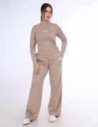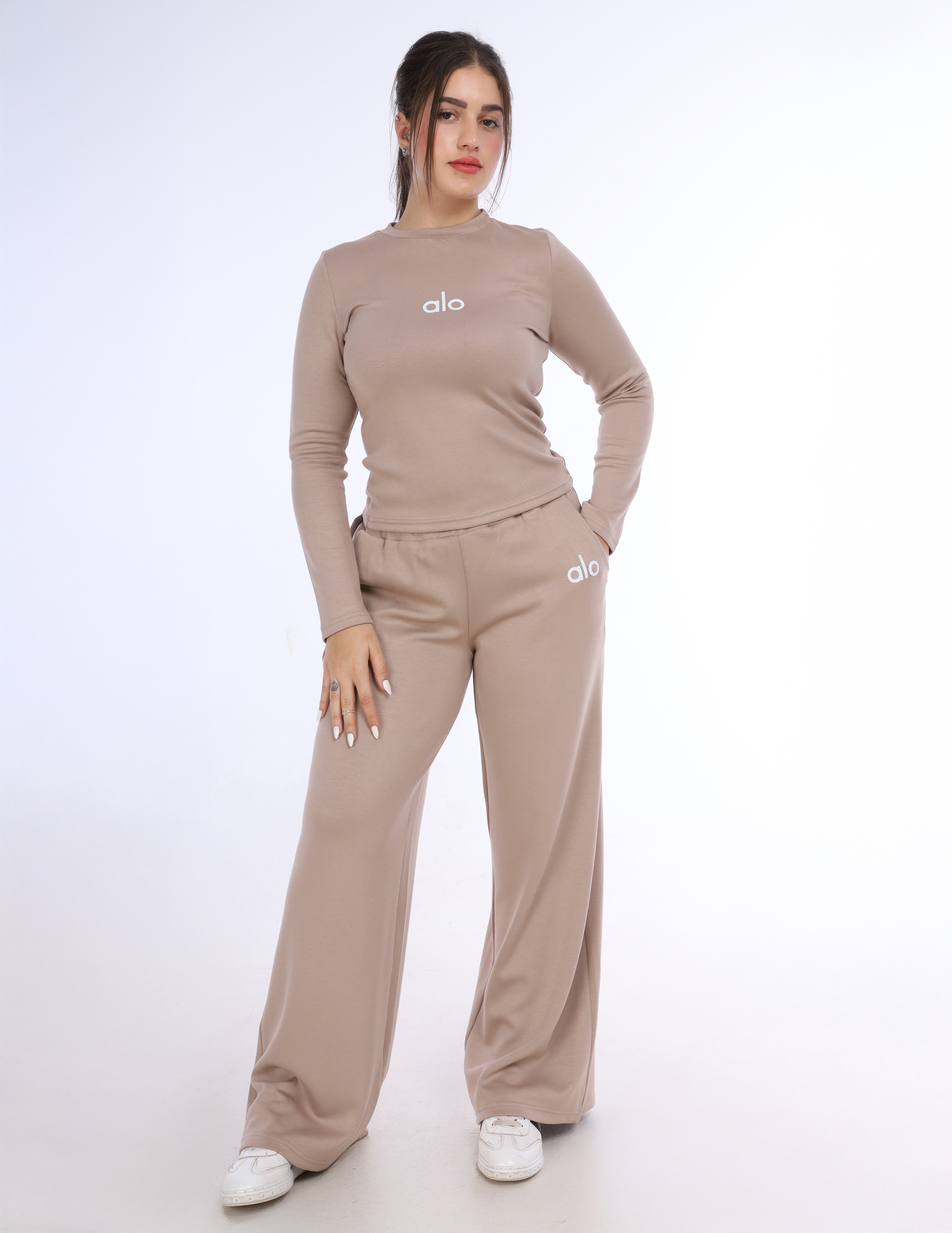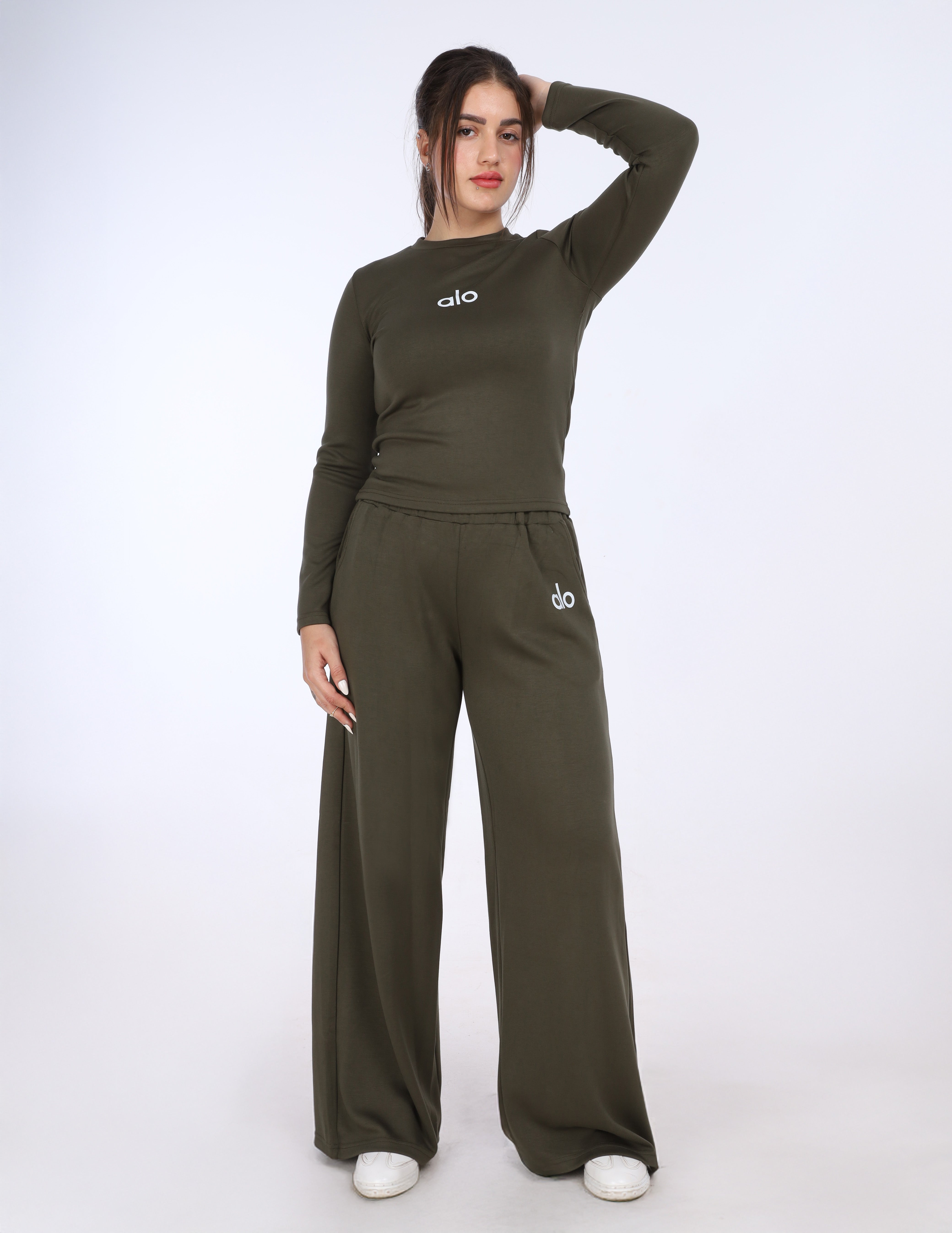A comfortable 3-piece set including a sleeve top, wide-leg pants, and a half-sleeve zip-up hooded jacket, perfect for casual and athleisure wear.